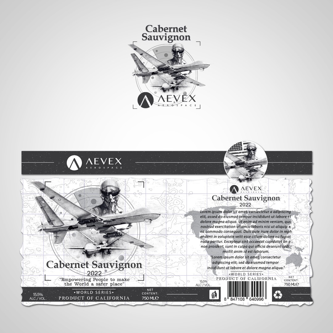 AEVEX Aerospace required a unique wine label that reflects the company’s mission “Empowering People to Make the World a Safer Place.”