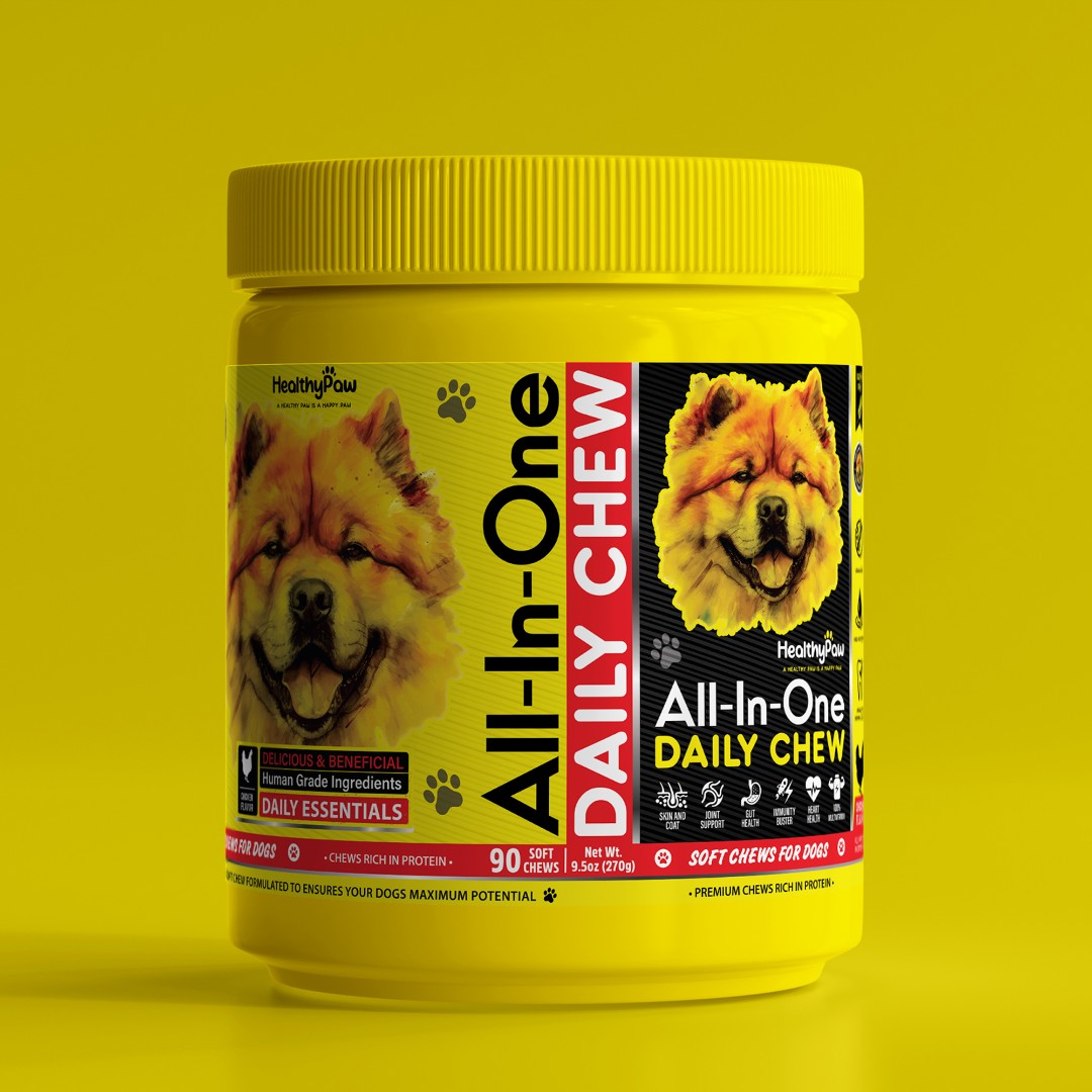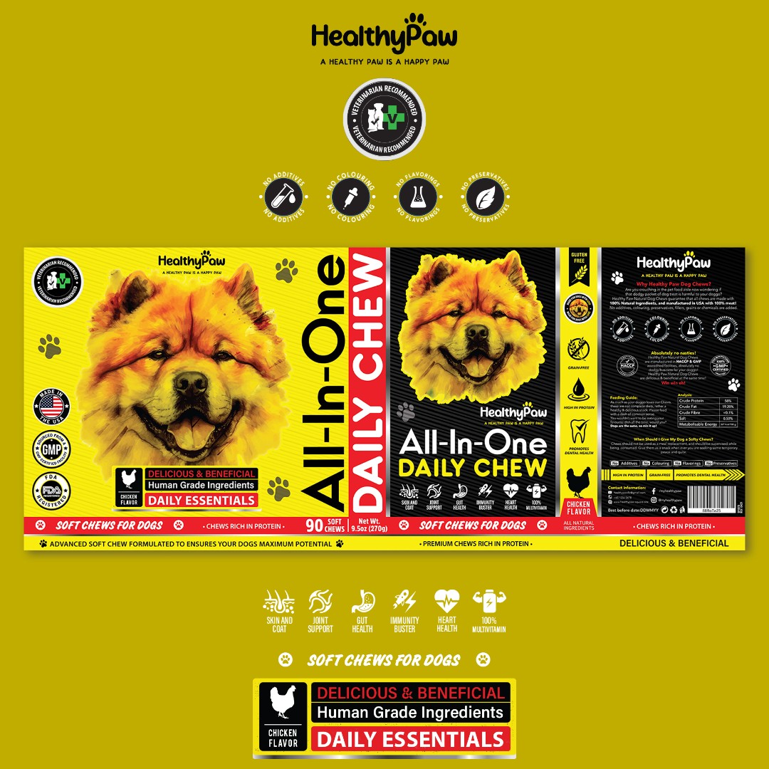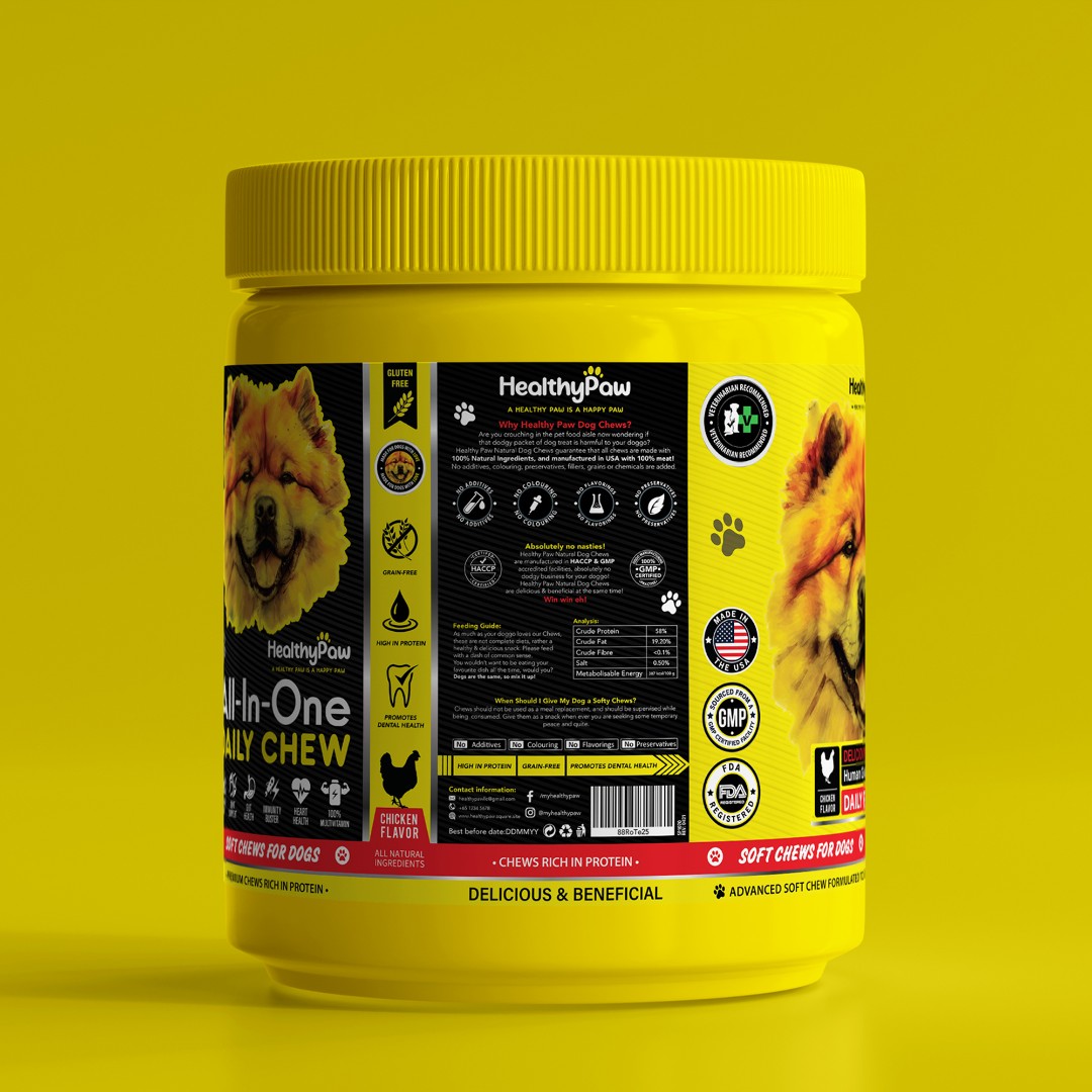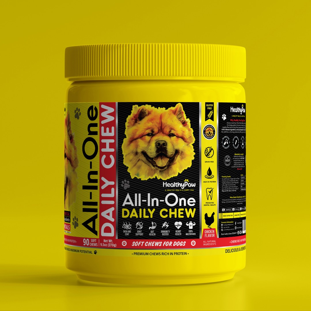 Healthy Paw needed to create eye-catching and functional packaging for their All-In-One Daily Chew premium soft supplement that clearly communicates its wide range of health benefits for dogs.