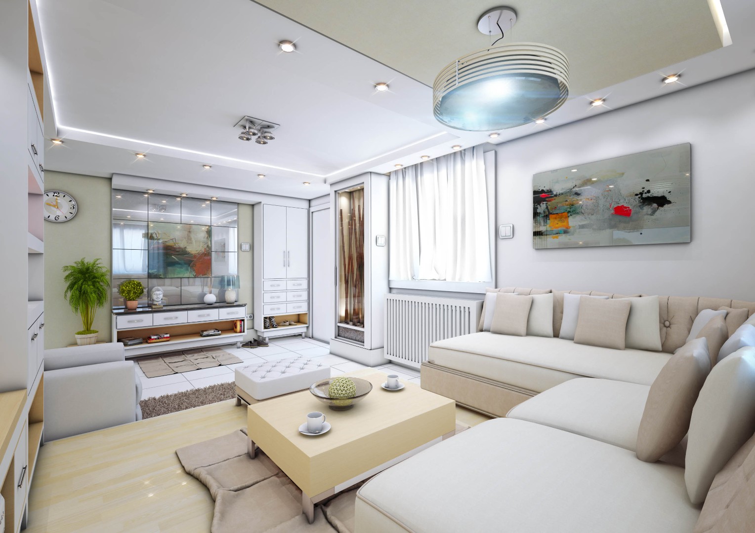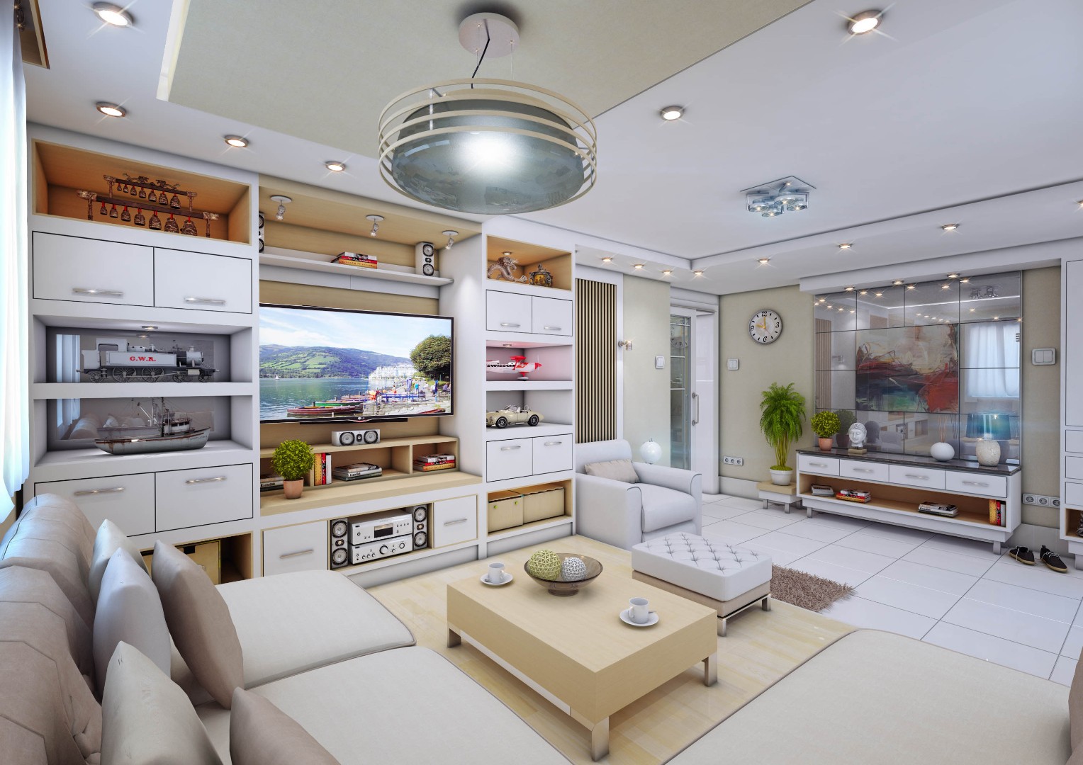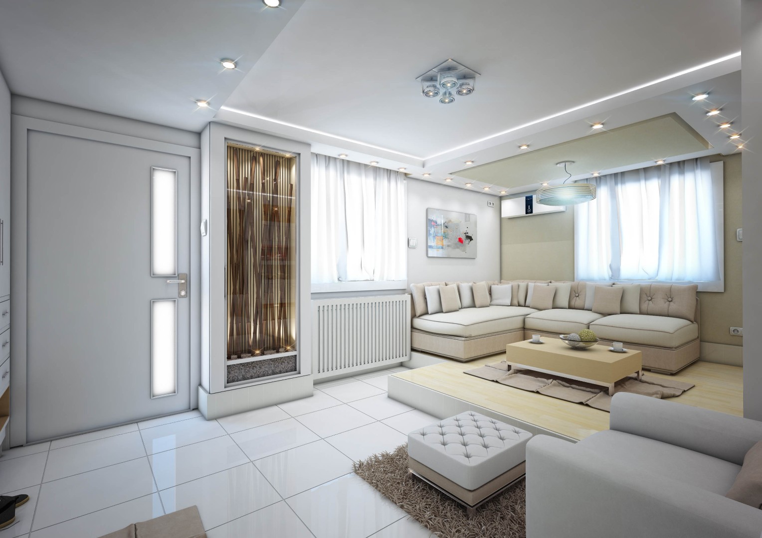 A comprehensive interior design and execution strategy was implemented to enhance space utilization and visual harmony: