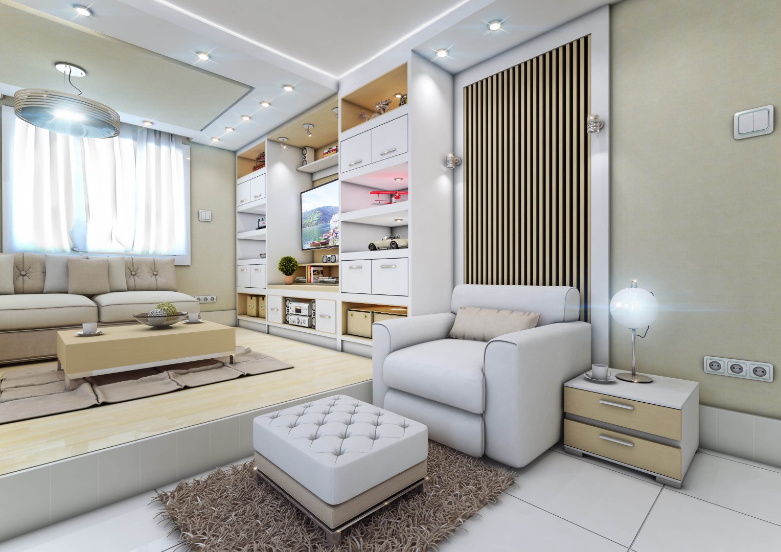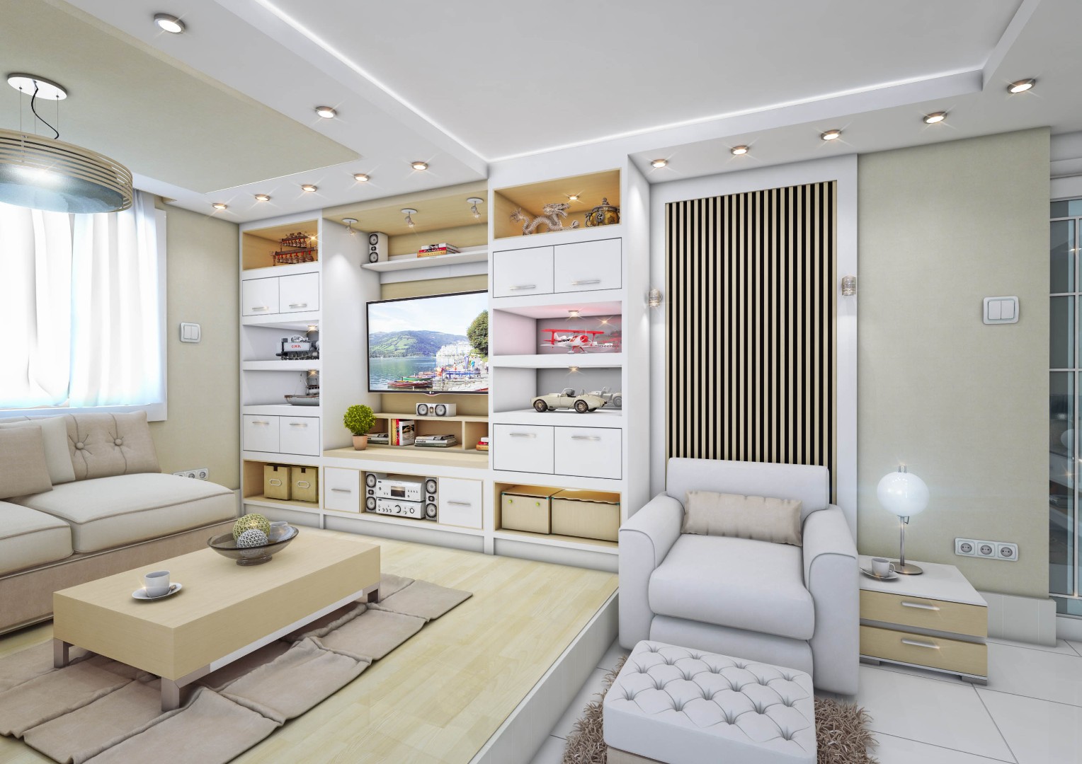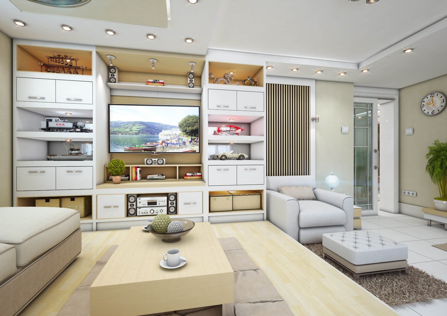 A comprehensive interior design and execution strategy was implemented to enhance space utilization and visual harmony: