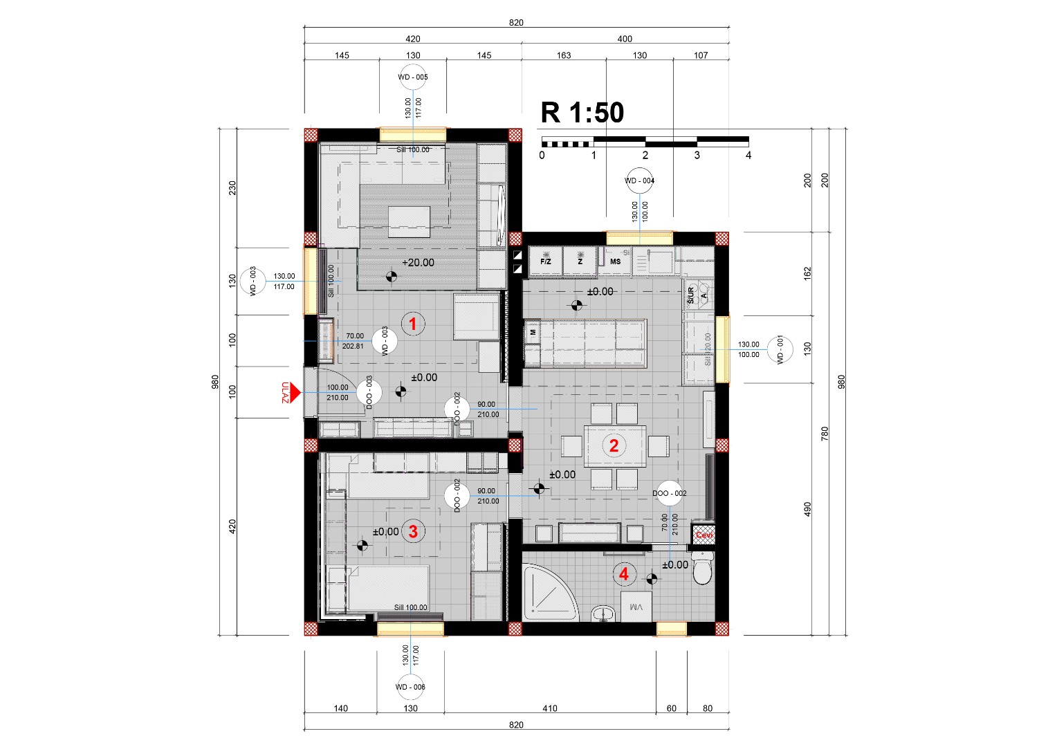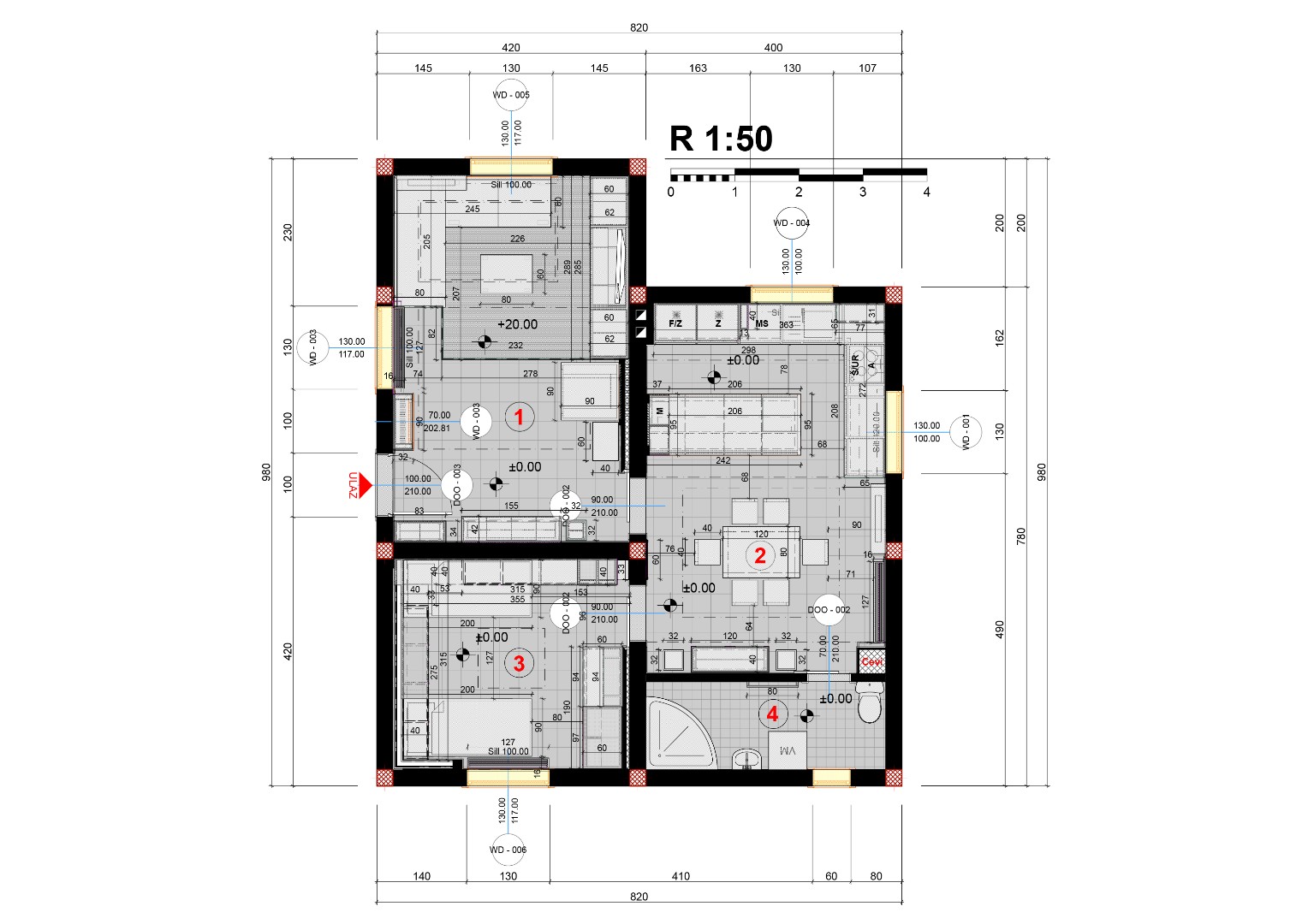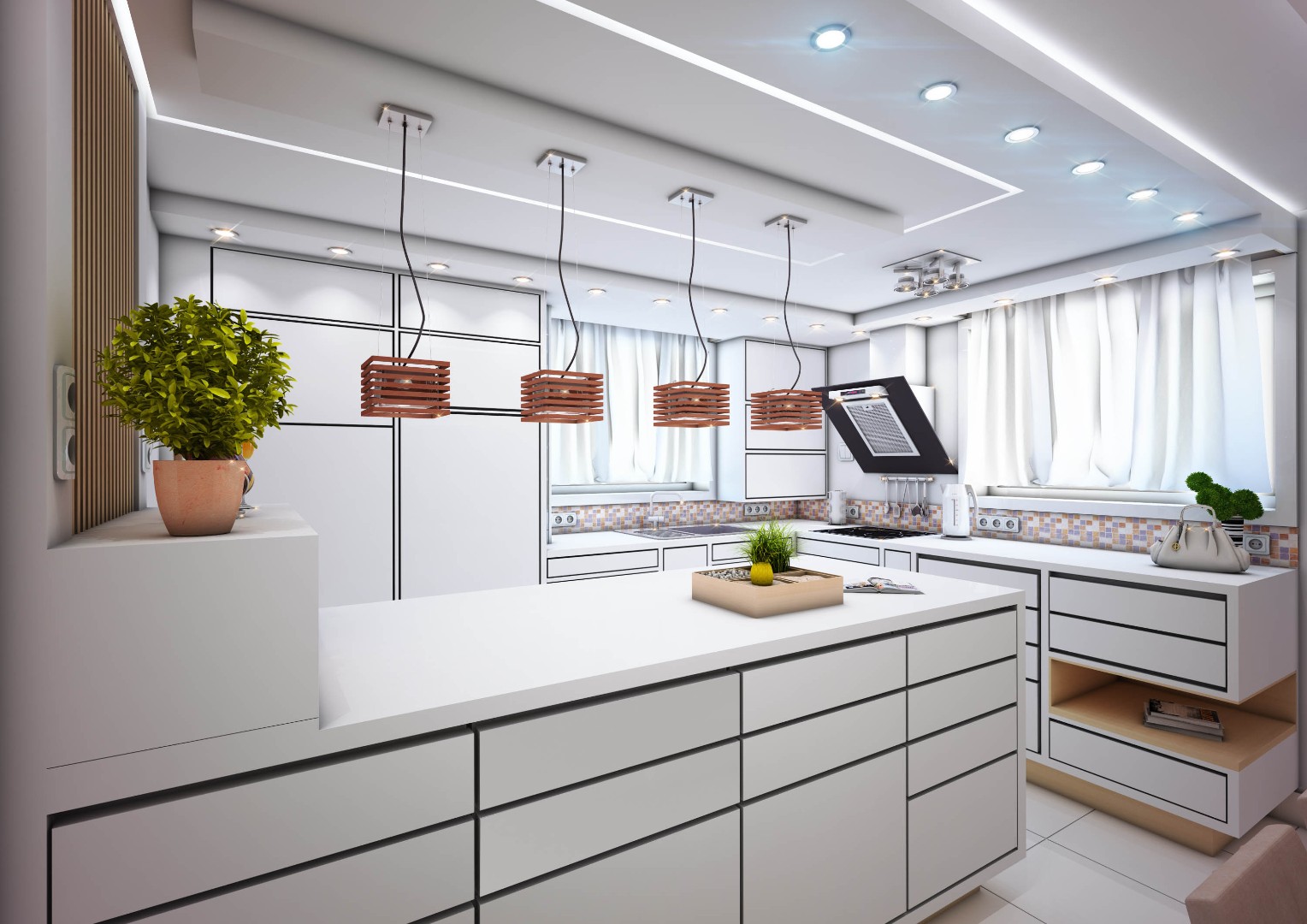 Prepared all required technical documentation including furniture layouts, floor plans, electrical schemes, socket positioning, custom-made furniture details, and heating and ventilation plans