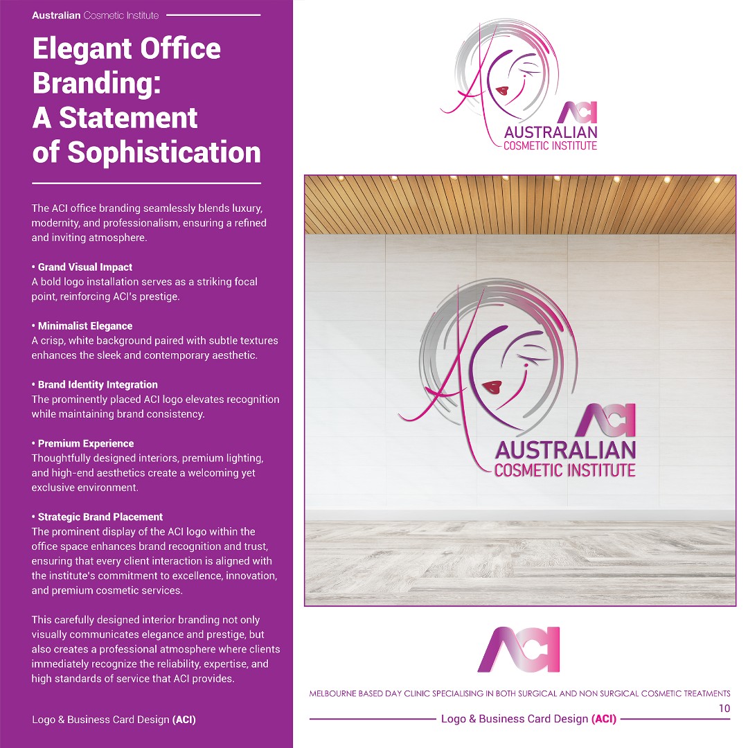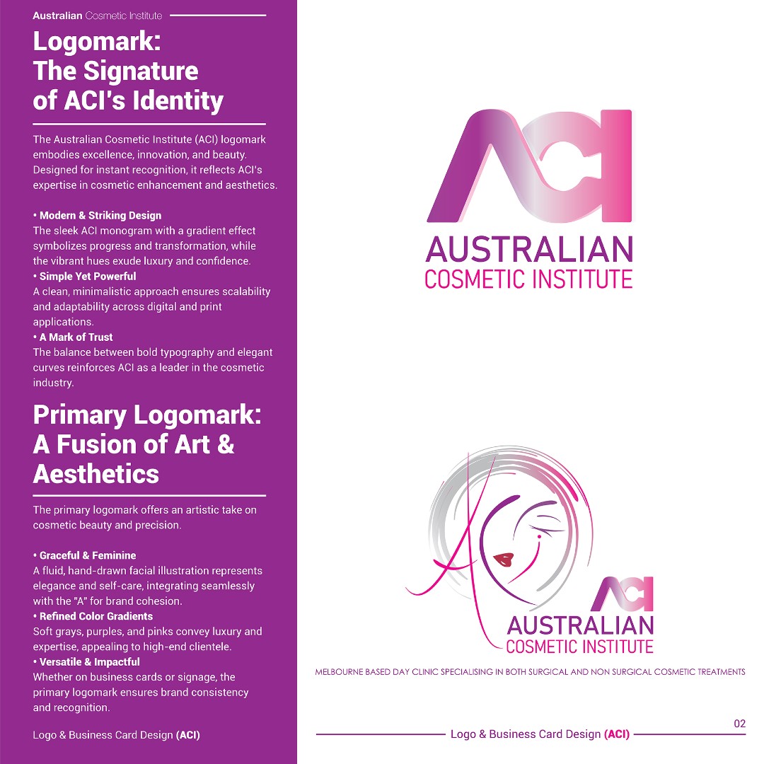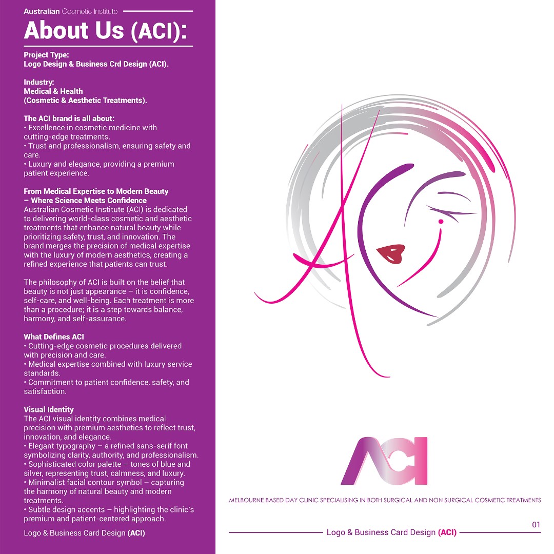 The completed branding positions ACI as a sophisticated, trustworthy, and high-end cosmetic clinic within the aesthetic medicine sector.