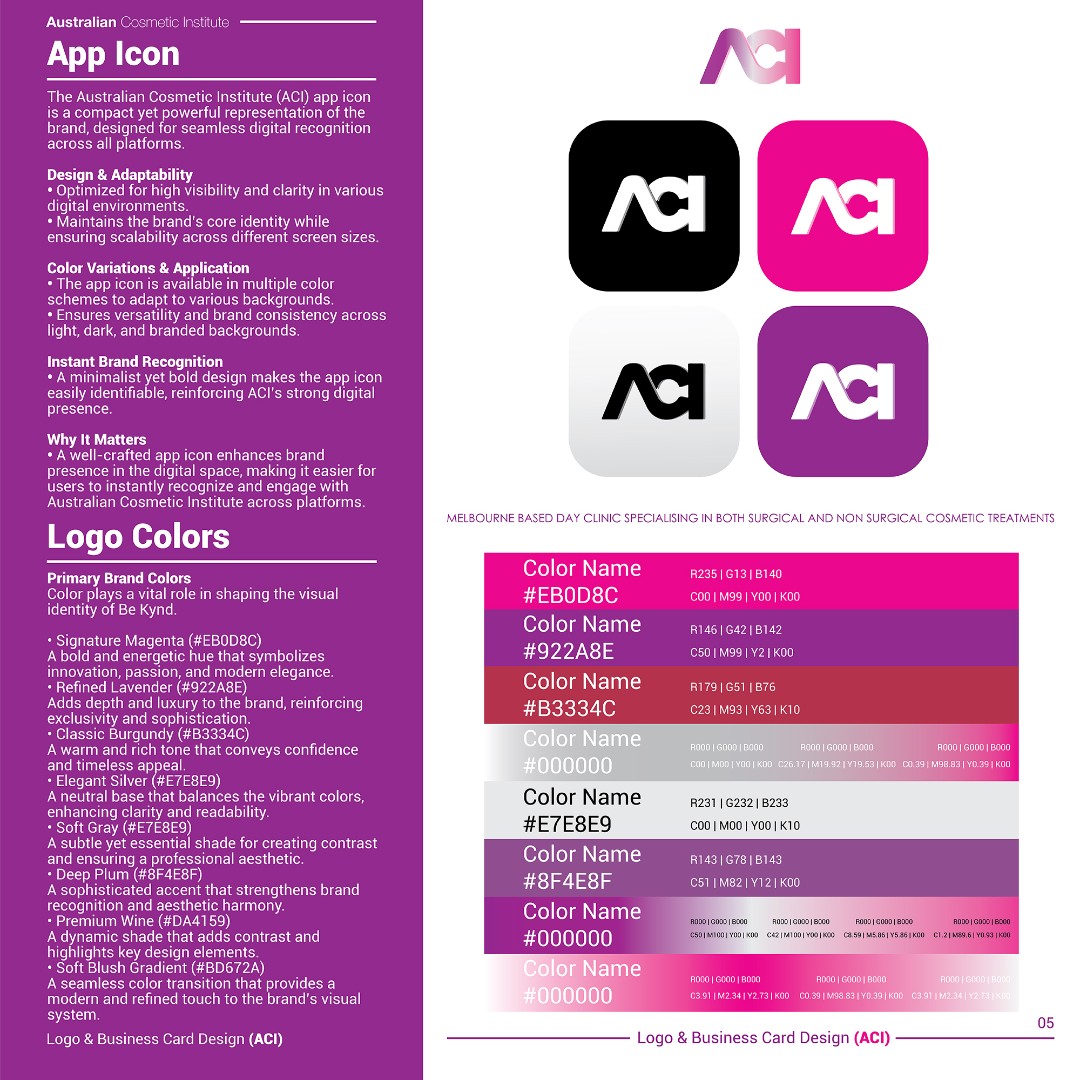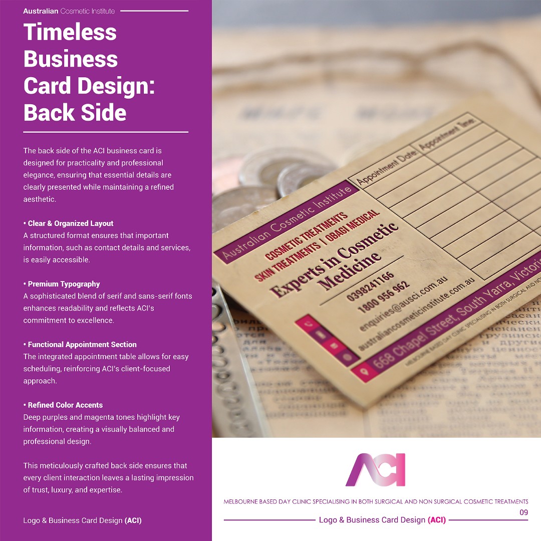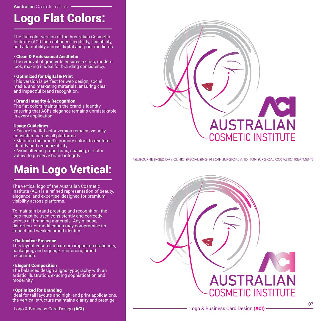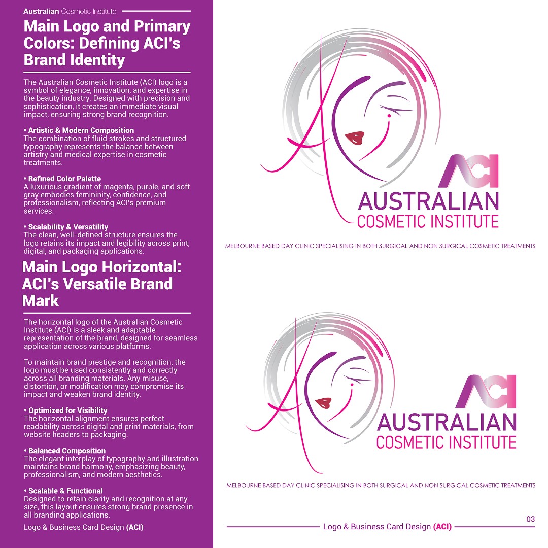 The completed branding positions ACI as a sophisticated, trustworthy, and high-end cosmetic clinic within the aesthetic medicine sector.