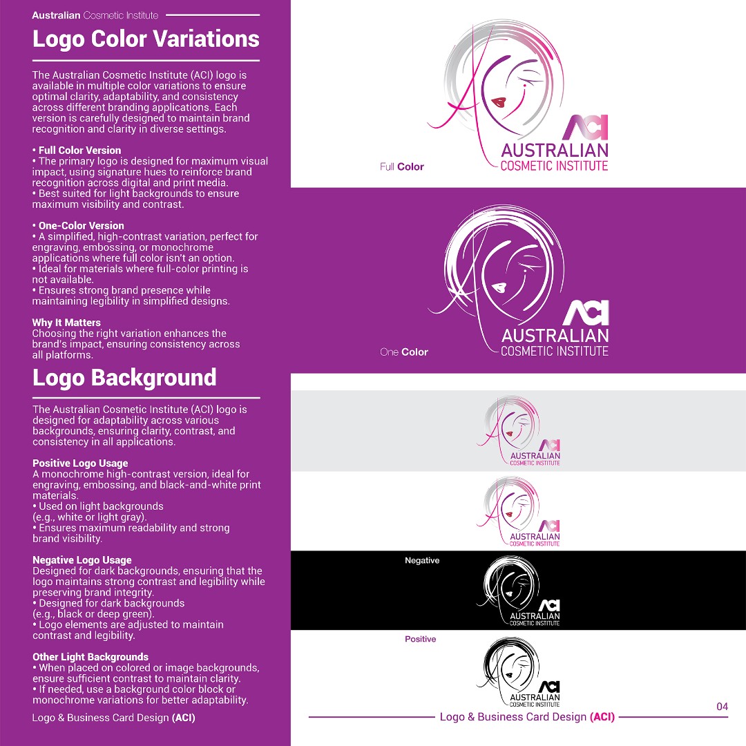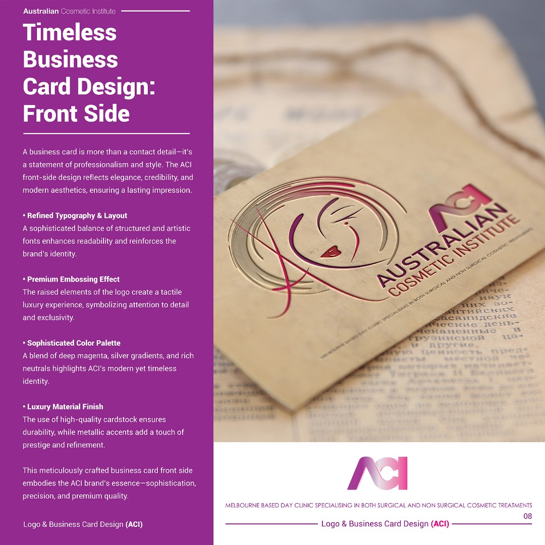 The final ACI identity system expresses beauty, confidence, and medical-grade professionalism through minimalist symbolism, refined typography, and luxury material execution.
