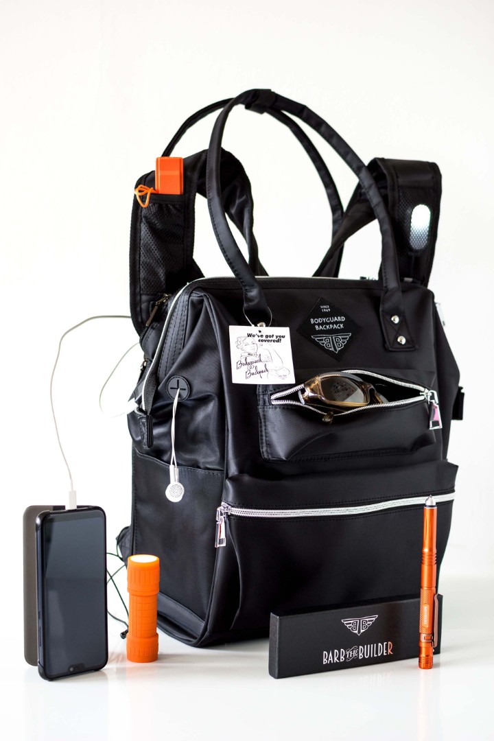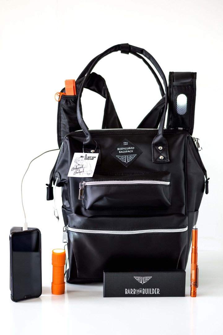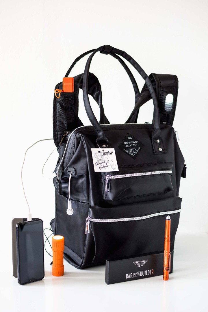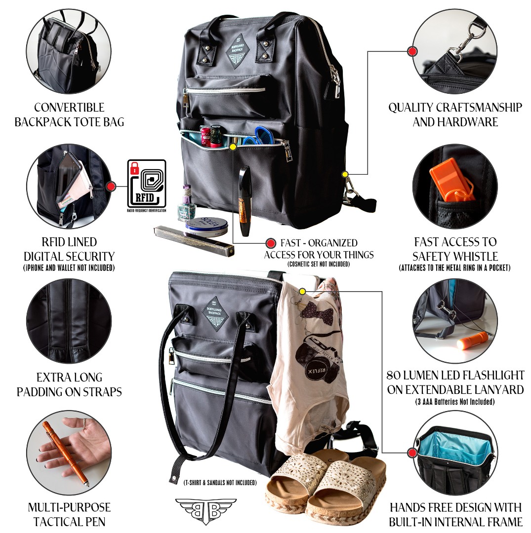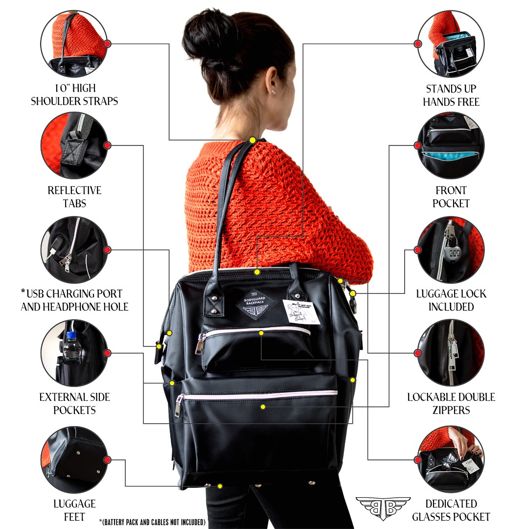 Key features of the BodyGuard Backpack were highlighted through visual product presentation: