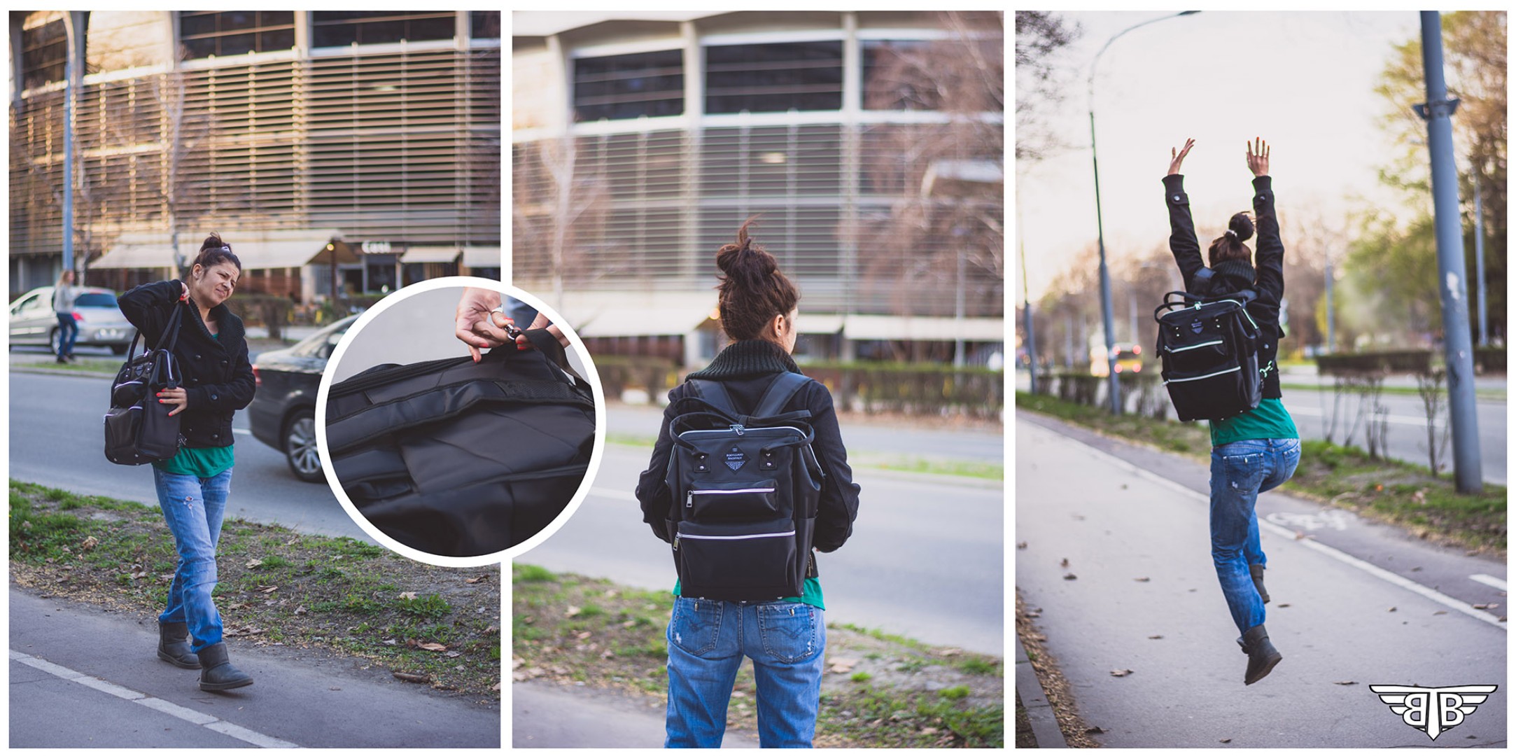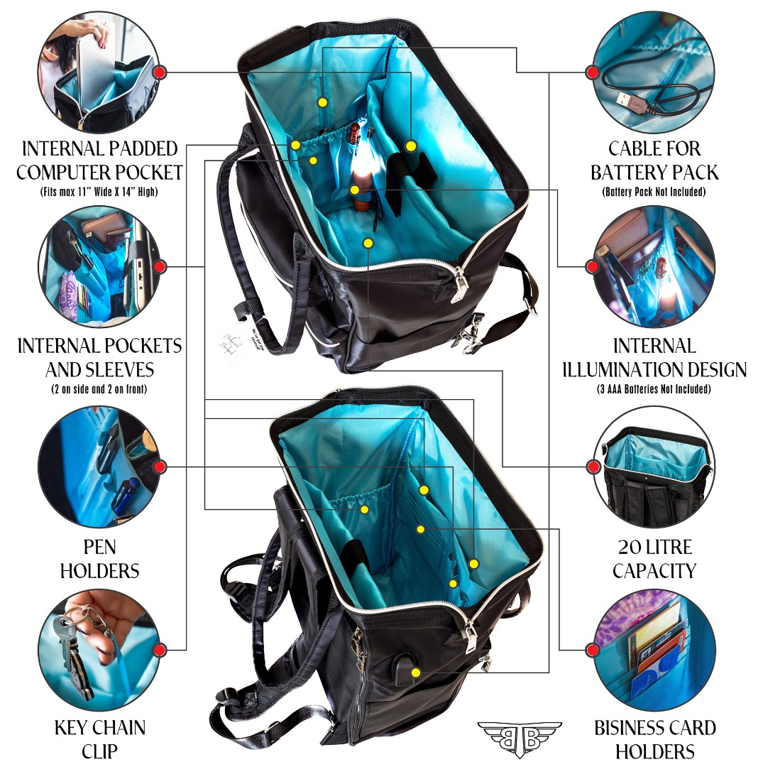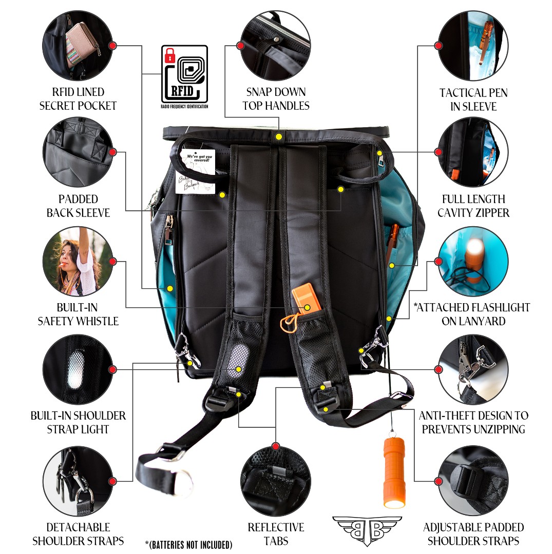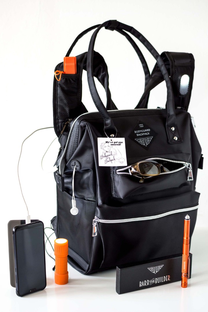 Key features of the BodyGuard Backpack were highlighted through visual product presentation: