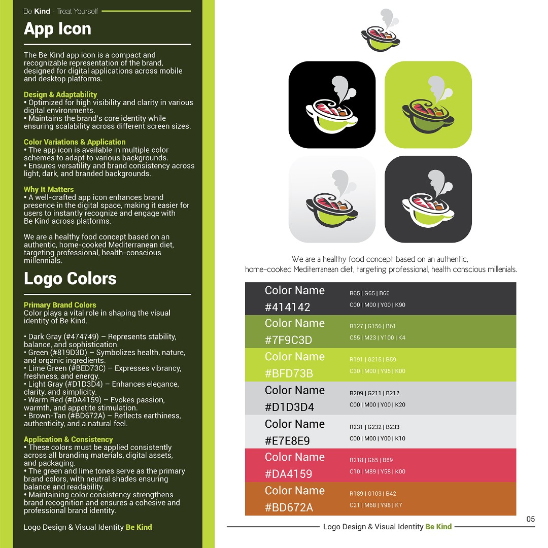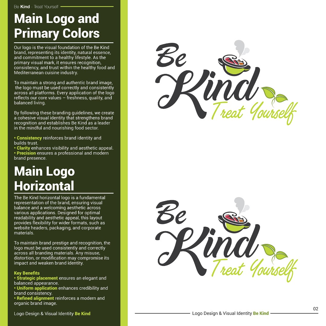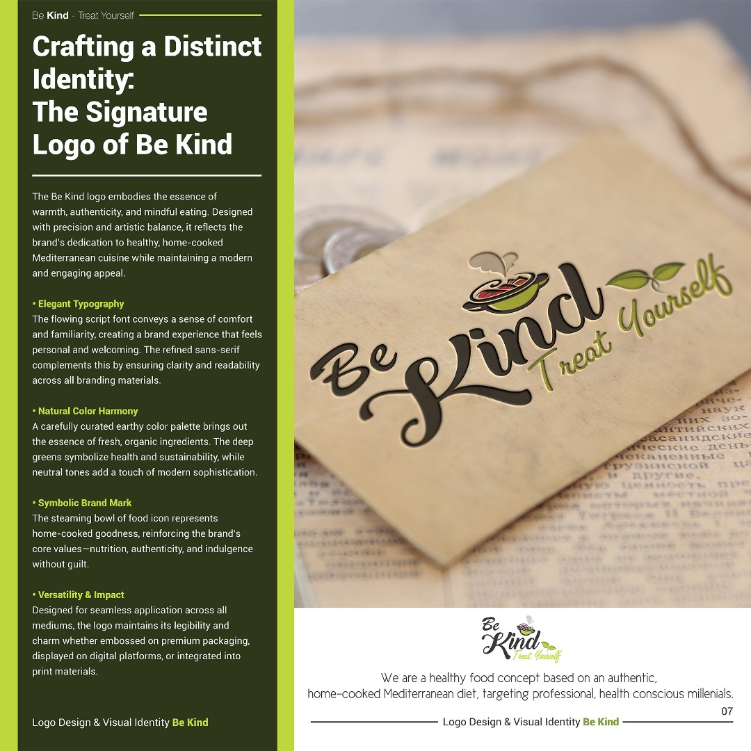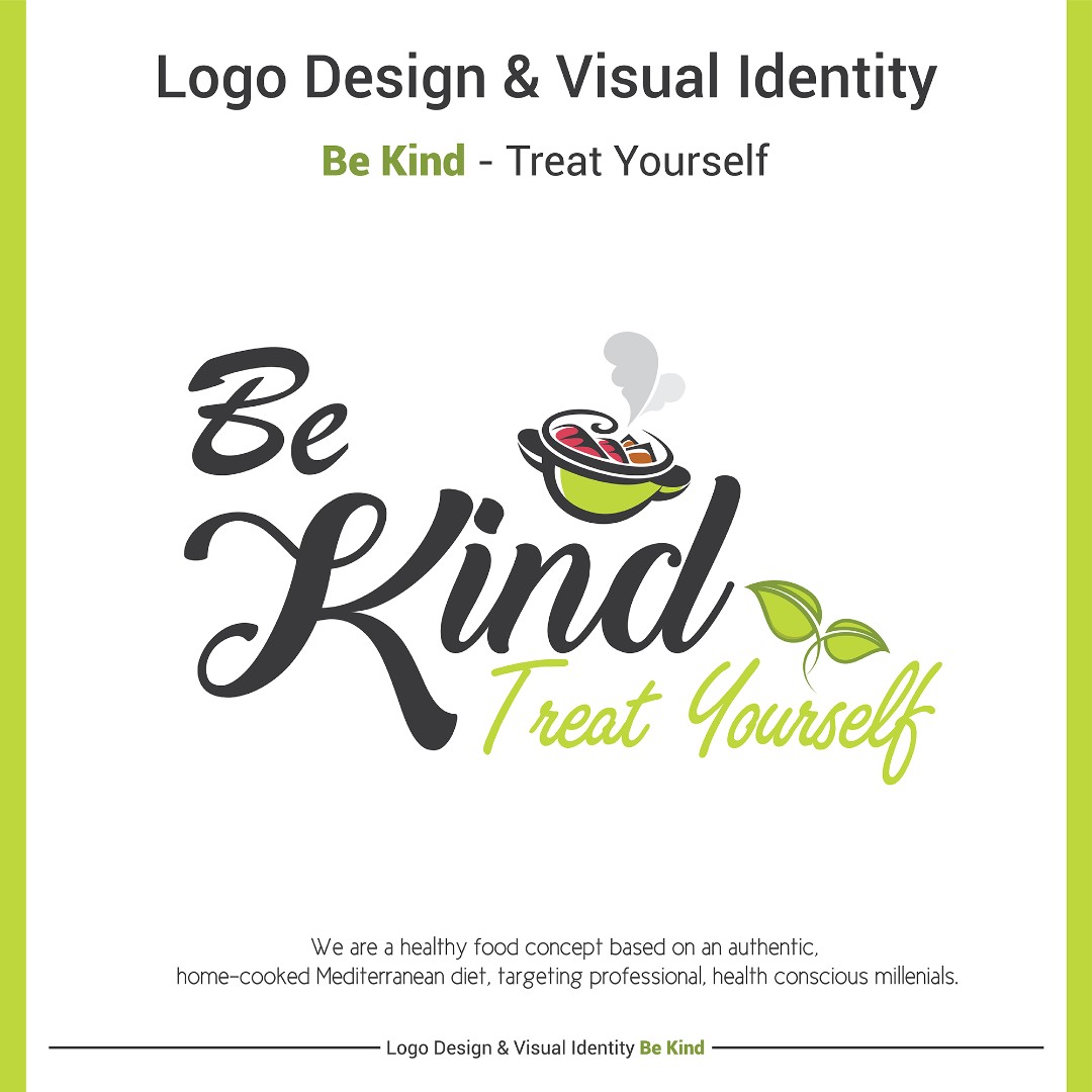 The completed brand identity positions Be Kind as a fresh, approachable, and memorable healthy food brand.