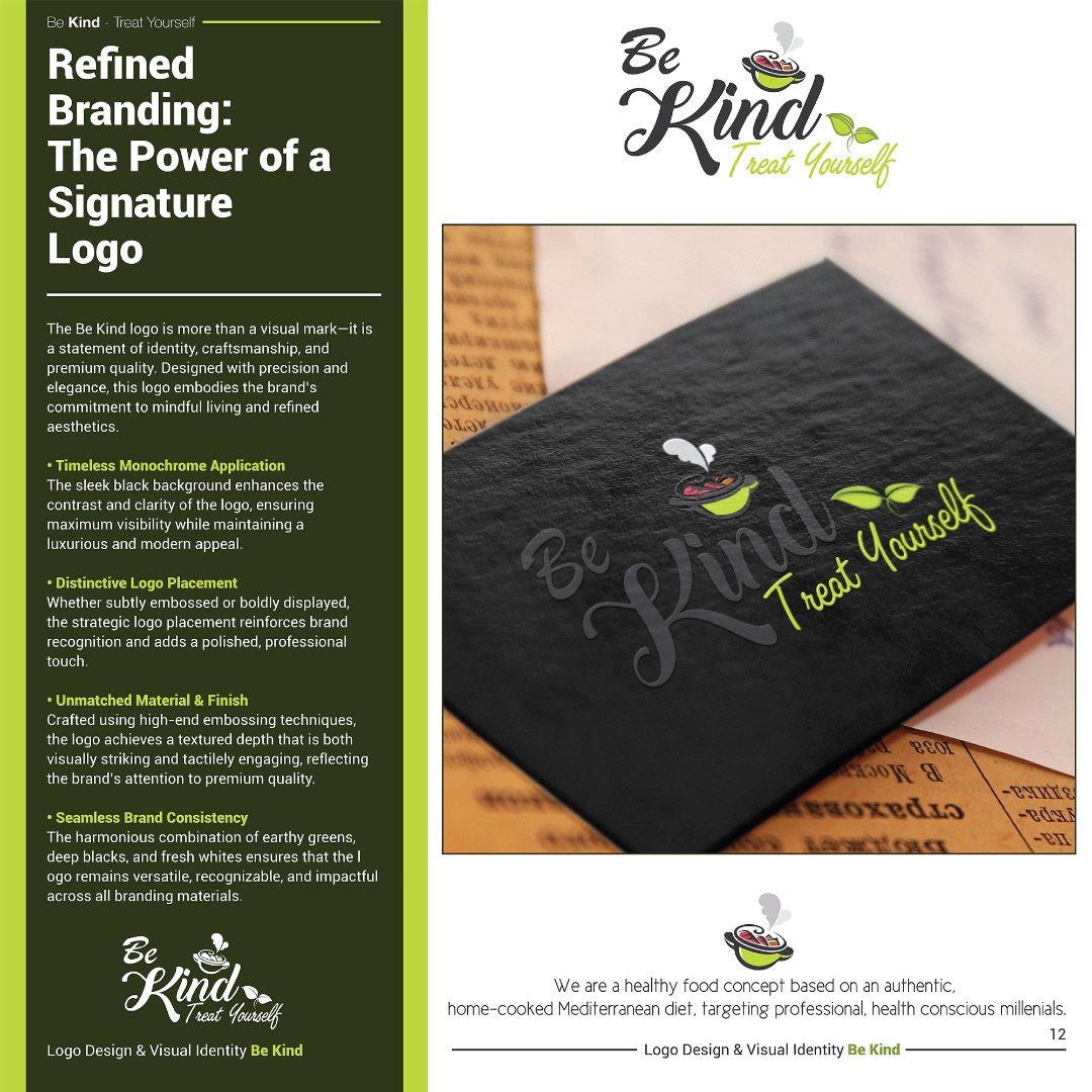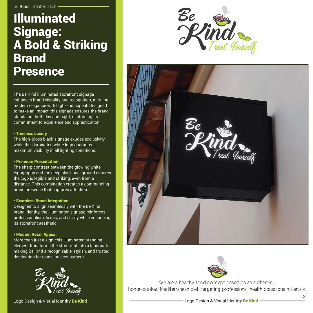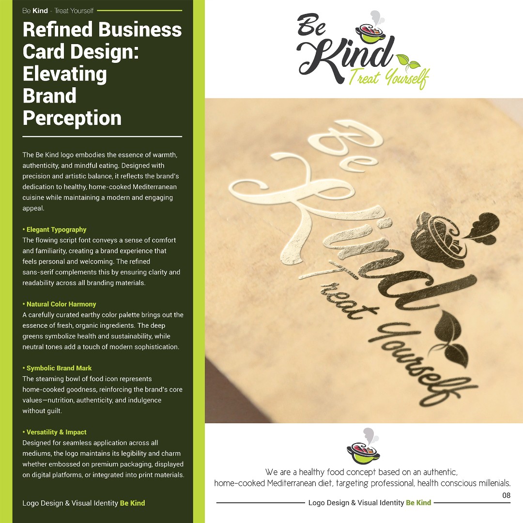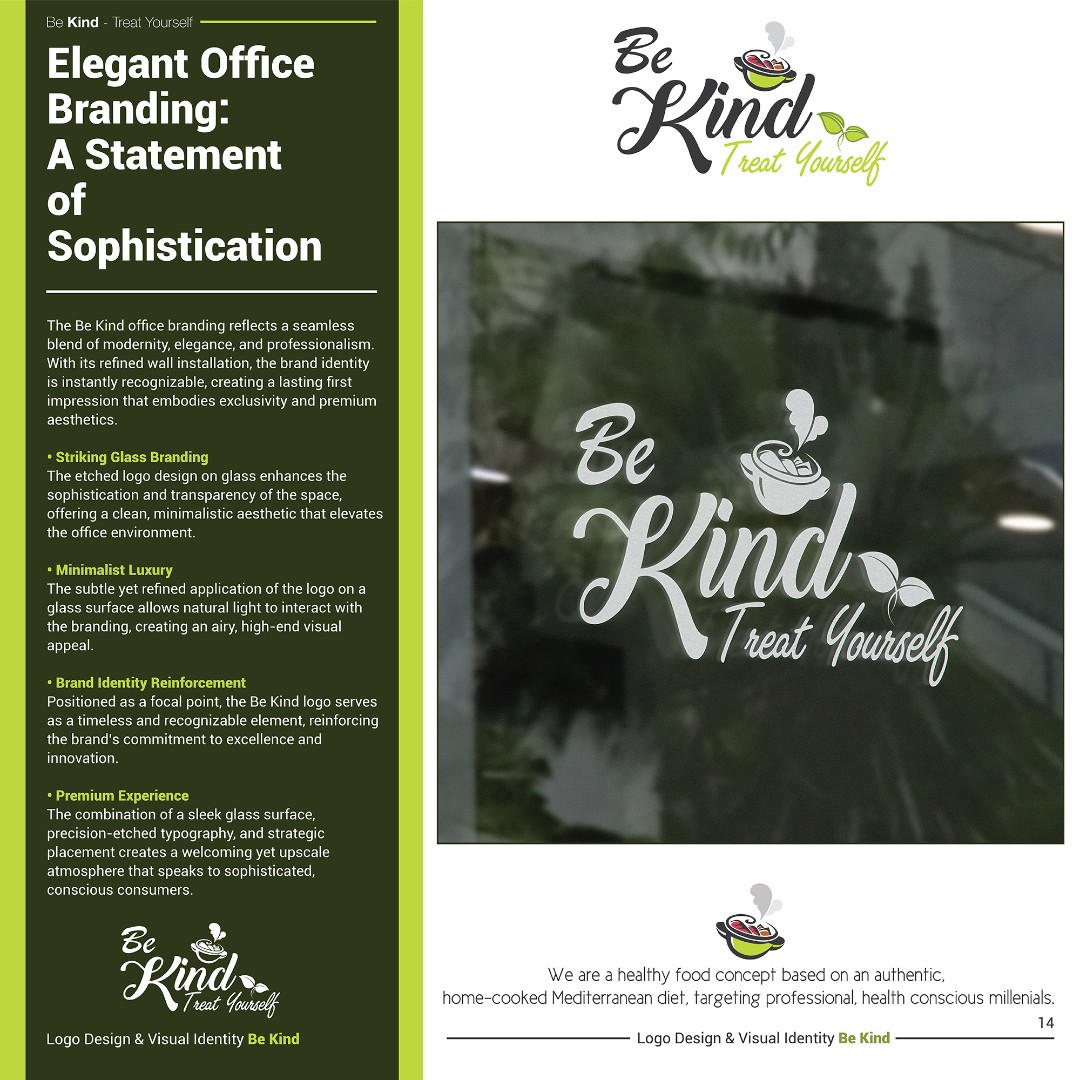 The completed brand identity positions Be Kind as a fresh, approachable, and memorable healthy food brand.