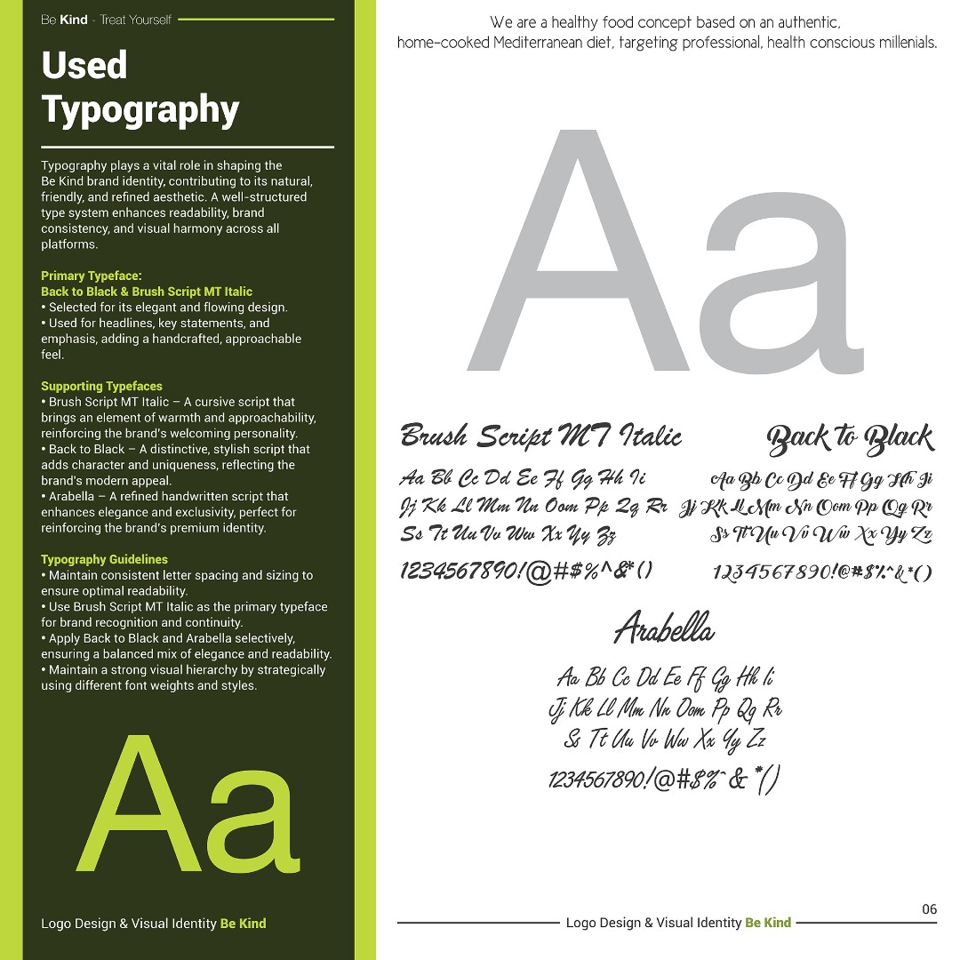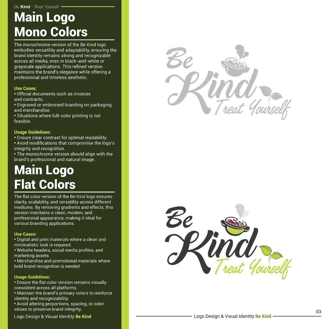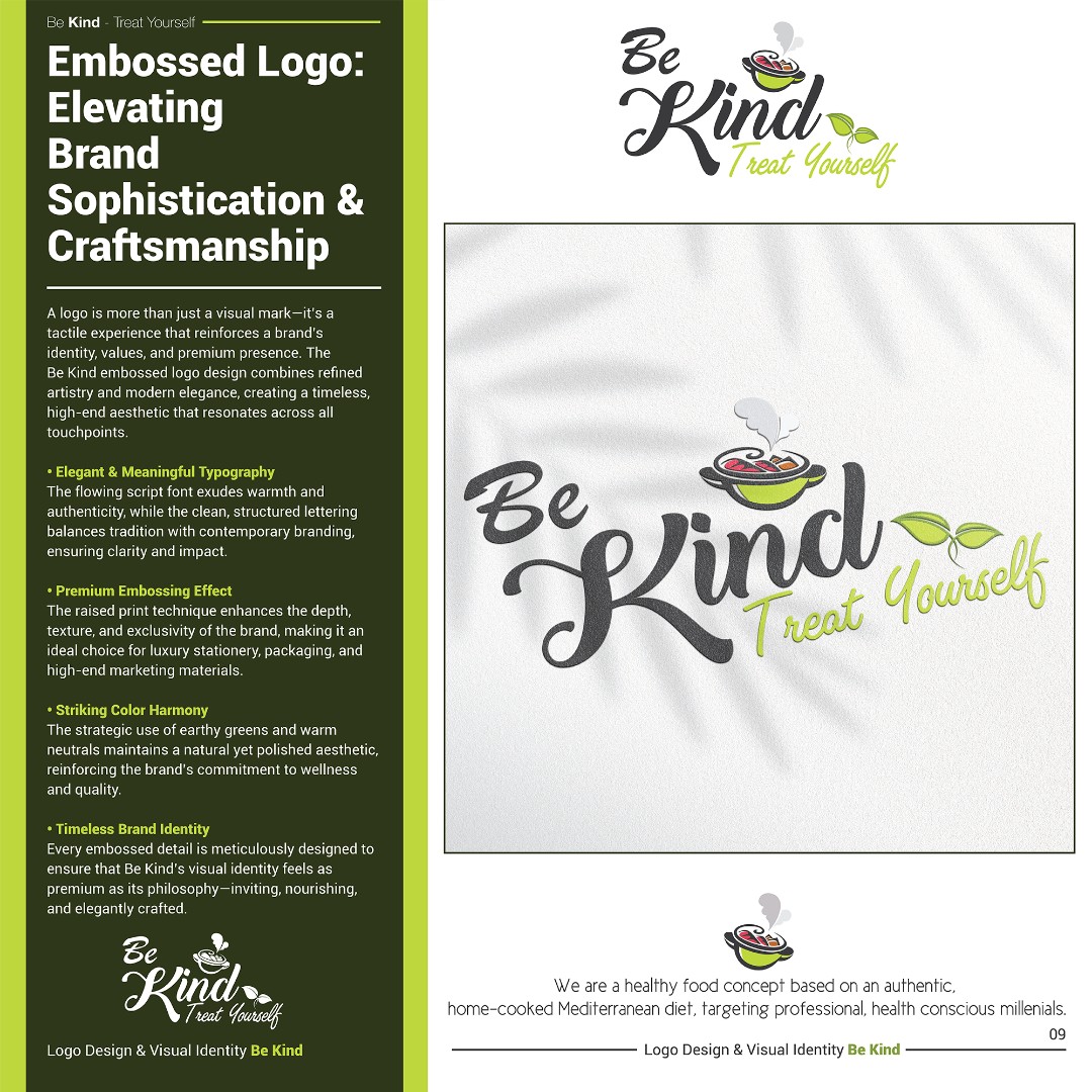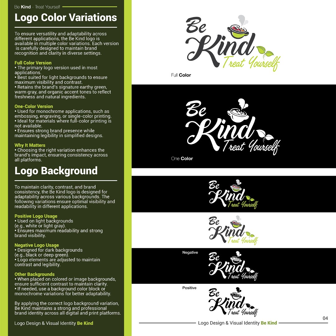 The completed brand identity positions Be Kind as a fresh, approachable, and memorable healthy food brand.