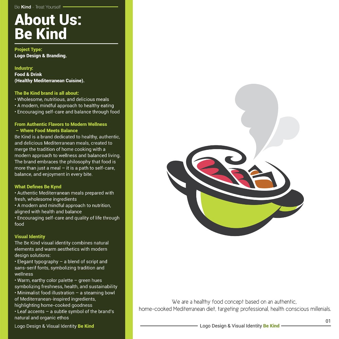The goal was to create a modern, inviting, and fresh logo that reflects authentic Mediterranean home-cooked meals while appealing to health-conscious millennials.