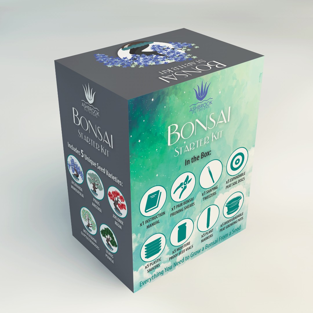 Ashbrook Outdoors required an eye-catching and gift-ready packaging design for their Bonsai Starter Kit that appeals to plant enthusiasts.
