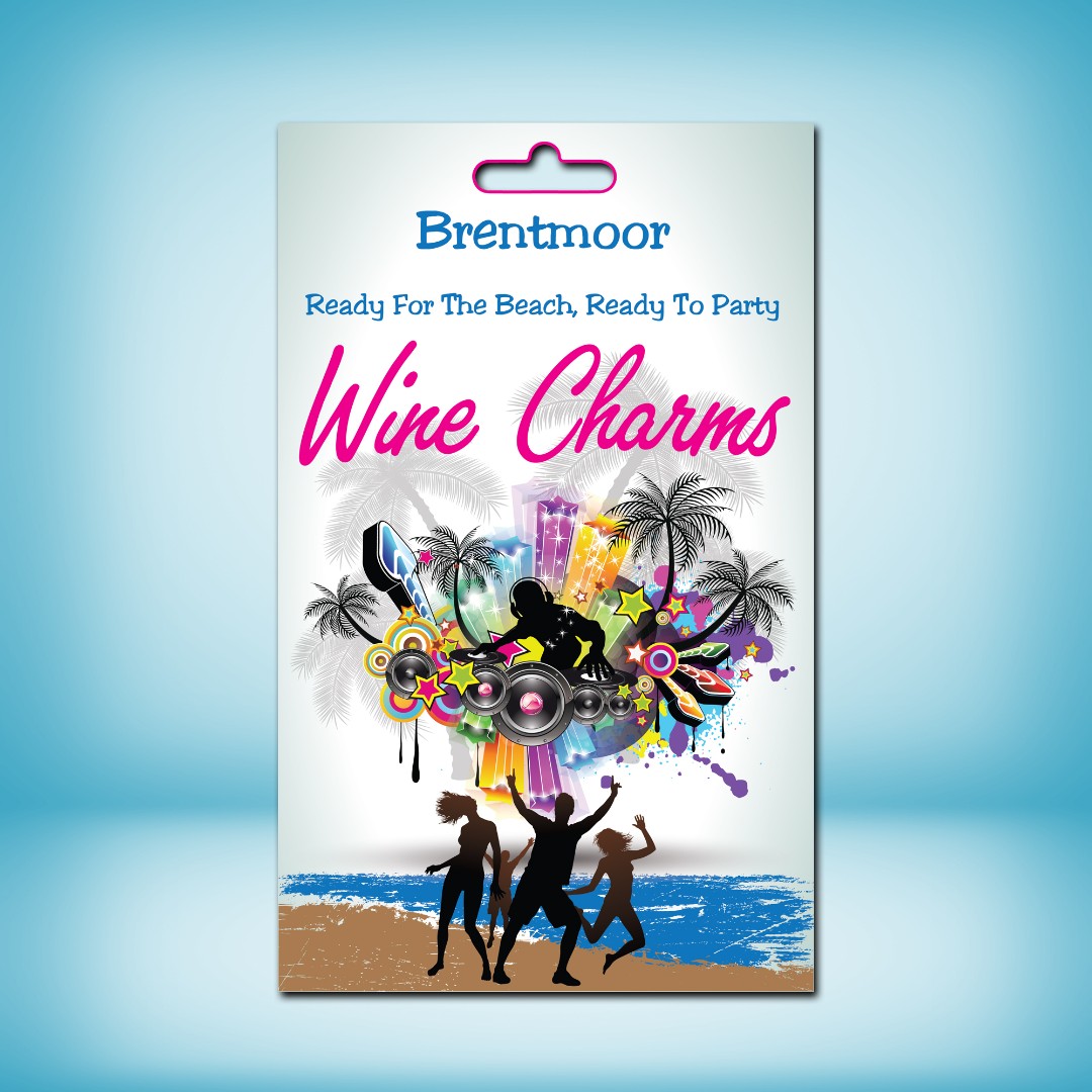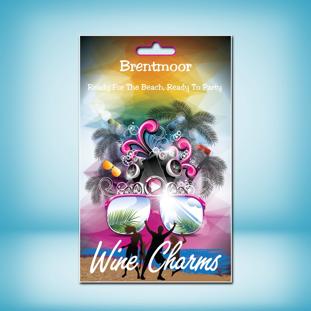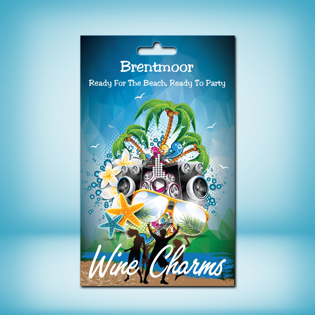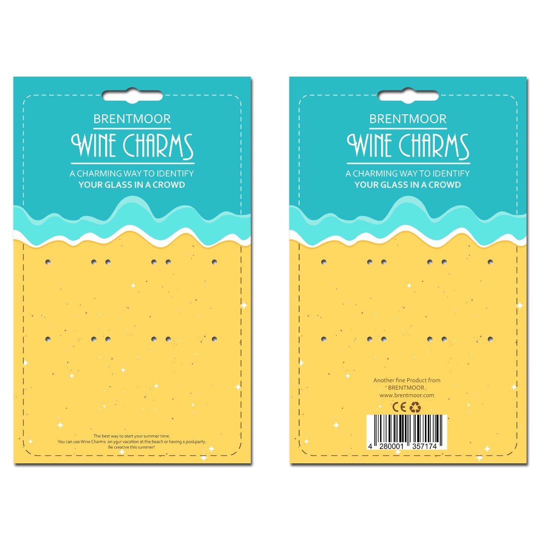 Brentmoor required an eye-catching and functional back card design for their beach-themed Wine Charms that enhances product presentation without overpowering it.
