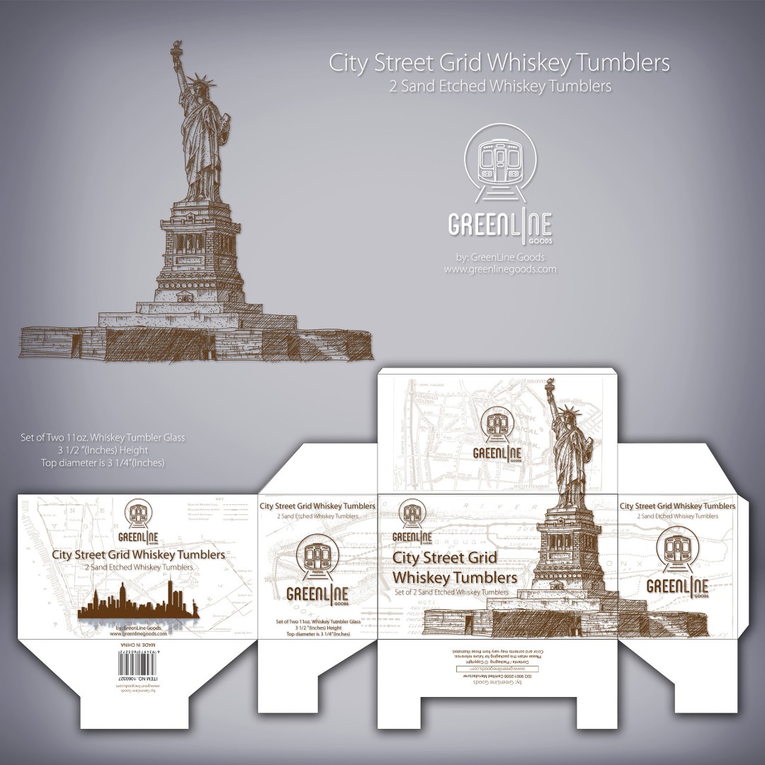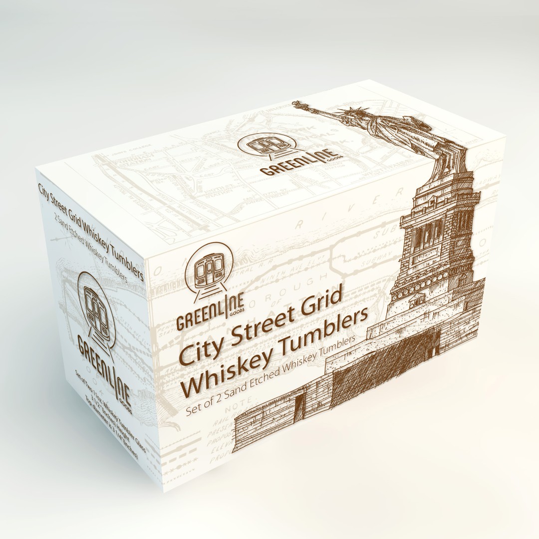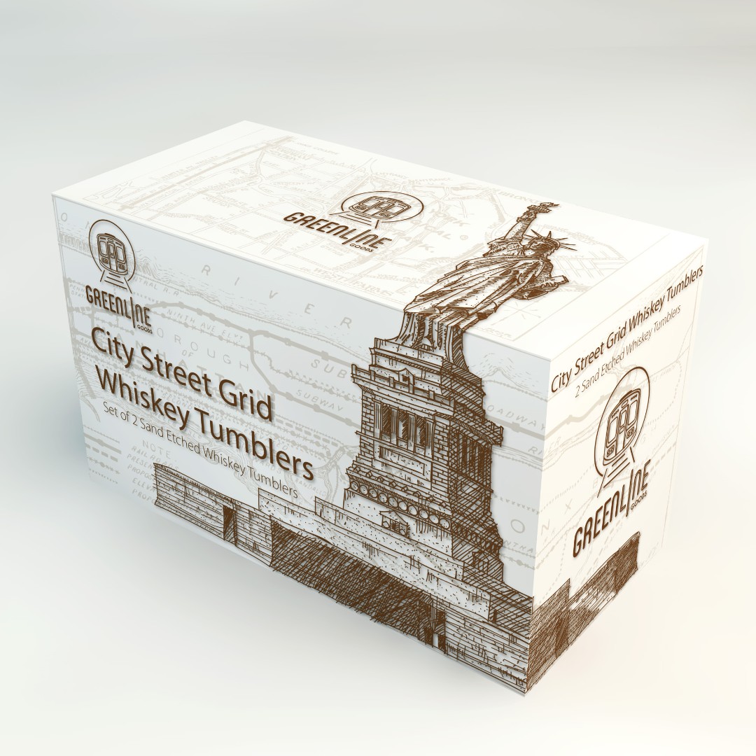 ECOMM Distribution needed a modern and sophisticated box design for their City Street Grid Whiskey Tumblers that reflects urban elegance and premium positioning.
