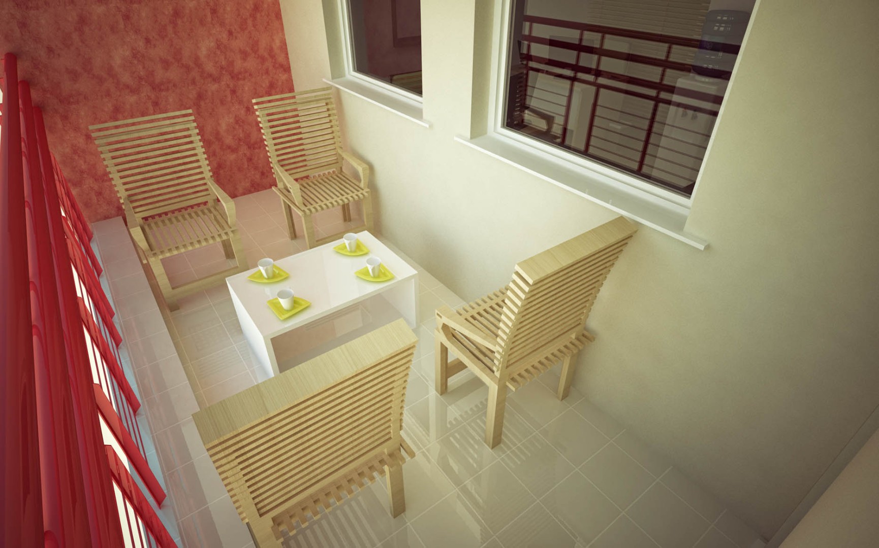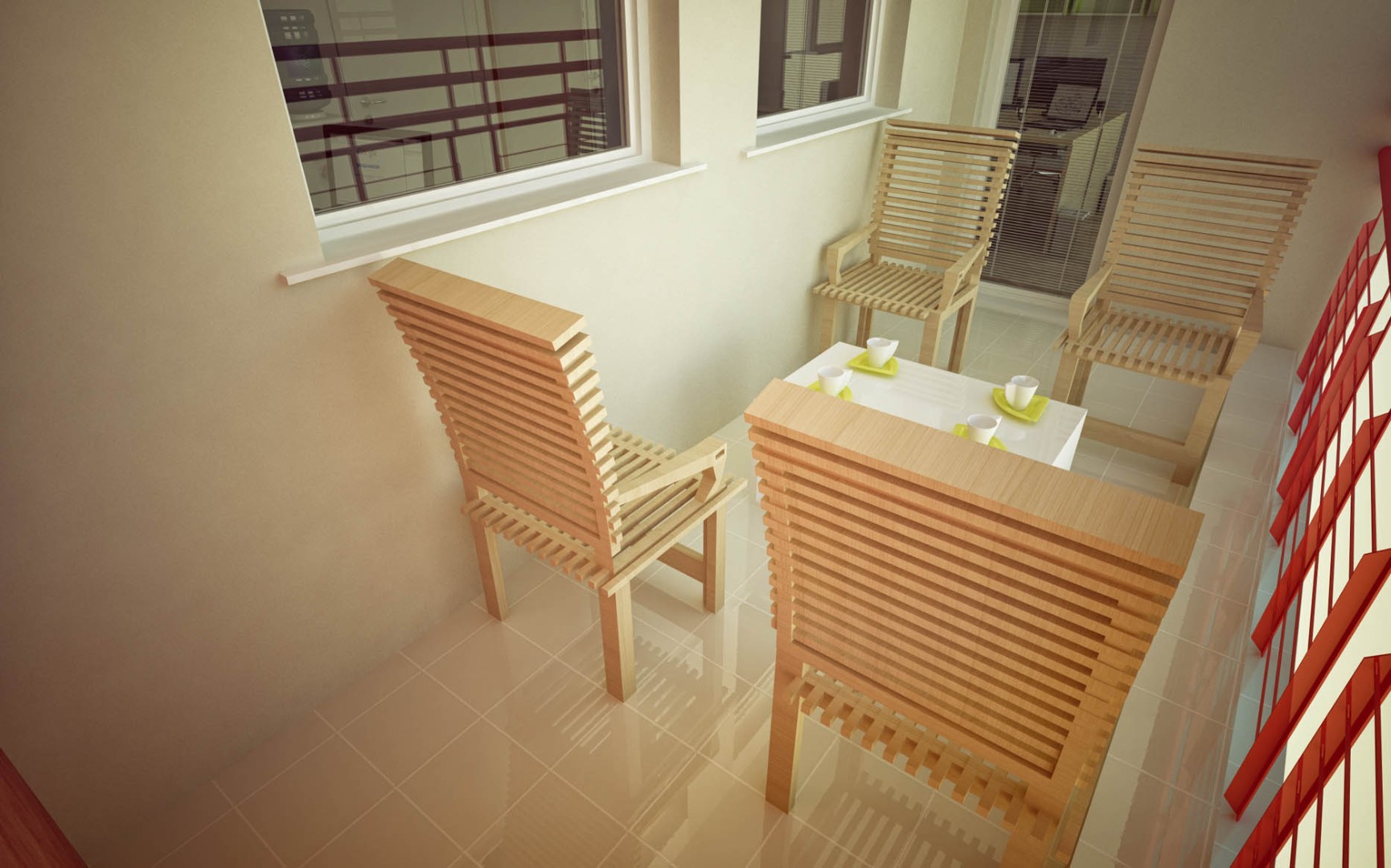 Designed an enclosed terrace with custom-made wooden lounge chairs for short breaks