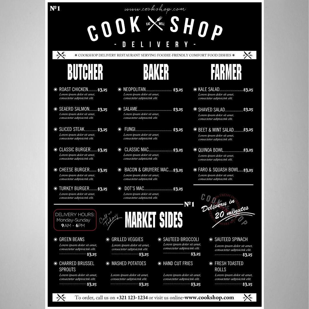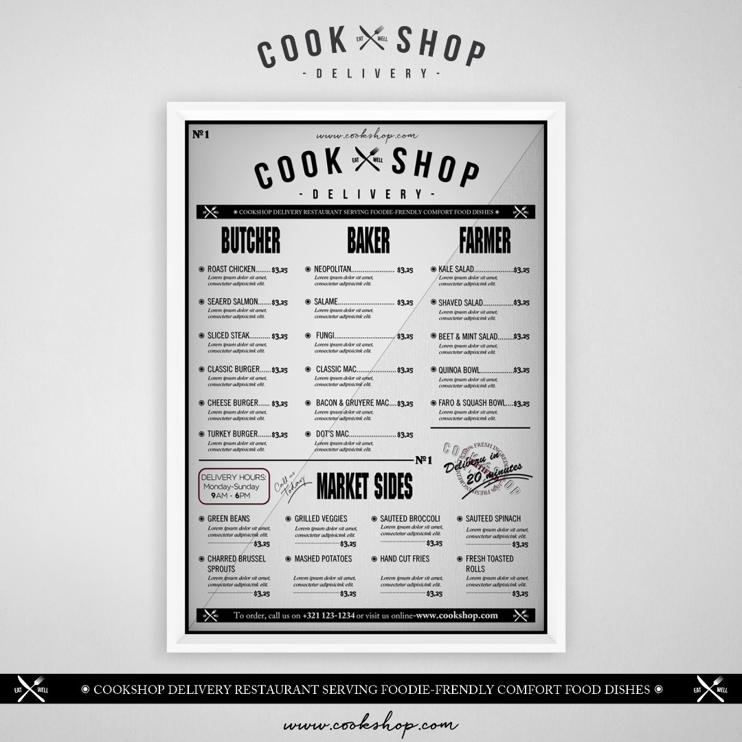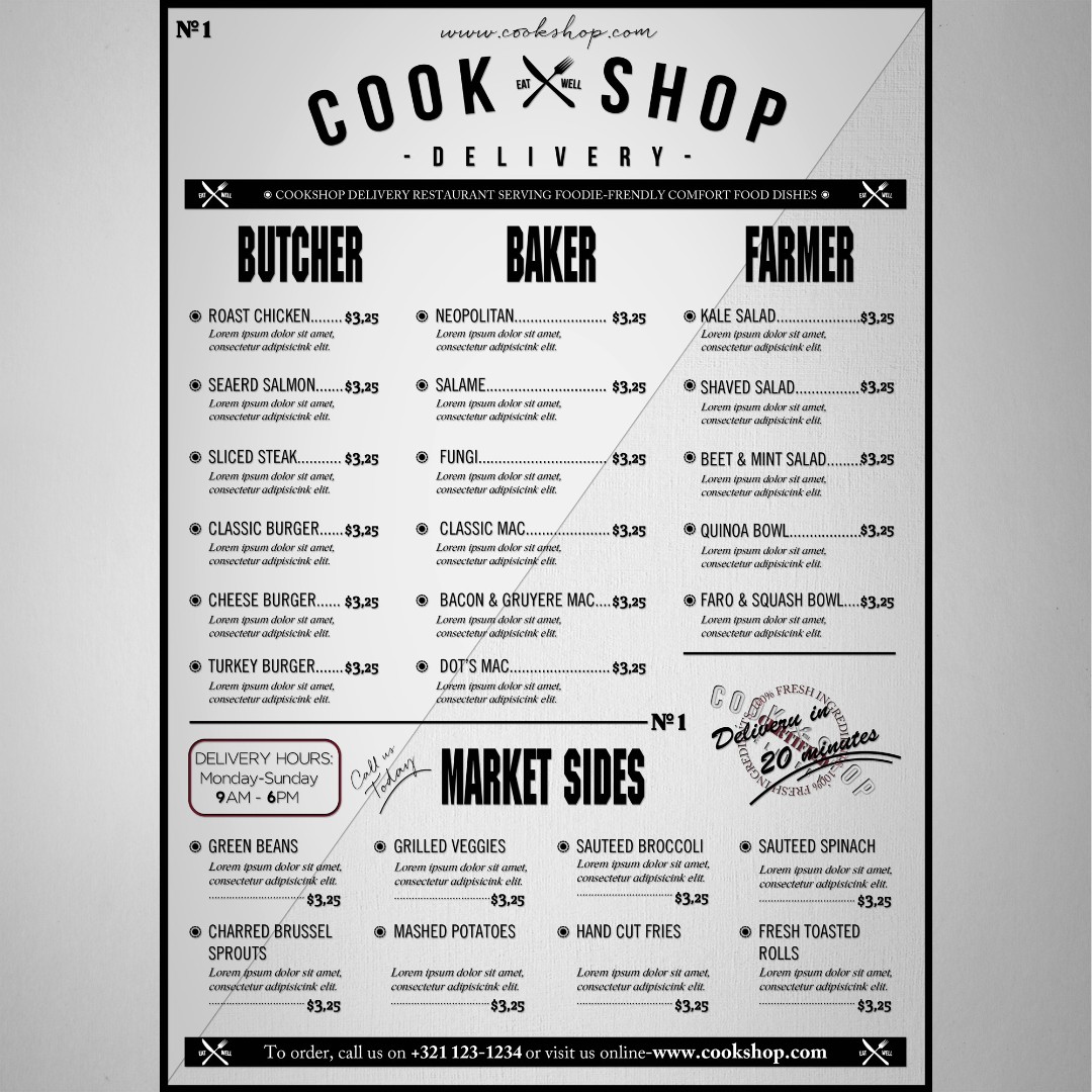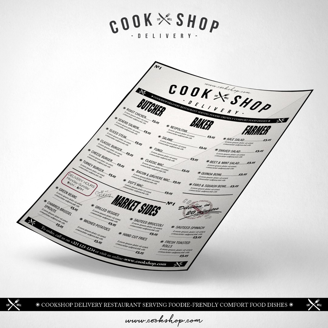 Cookshop required a clean and inviting menu design that clearly communicates the quality of its fresh, homemade ingredients to delivery customers.