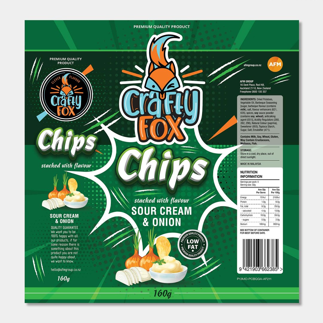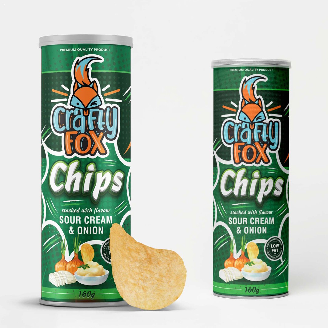 The Crafty Fox Potato Chips required a packaging design that supports the launch of a stackable chip product positioned as a direct competitor to Pringles.