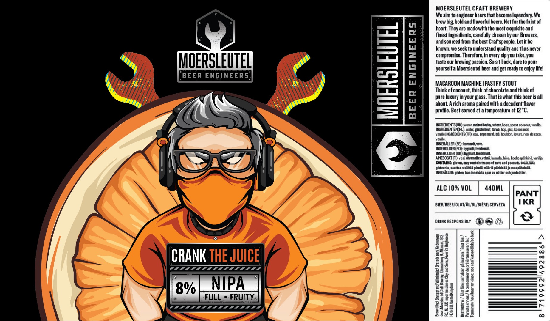 Moersleutel Craft Brewery required a dynamic and eye-catching label for their “Crank The Juice” NIPA (New England India Pale Ale) that reflects the brand’s bold personality.