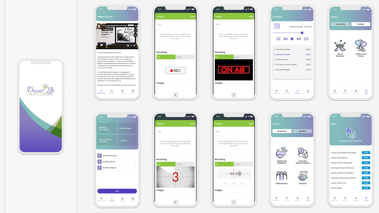Infinity Design Studio developed a comprehensive visual strategy, allowing the Power Life Script app to inspire and motivate users worldwide.