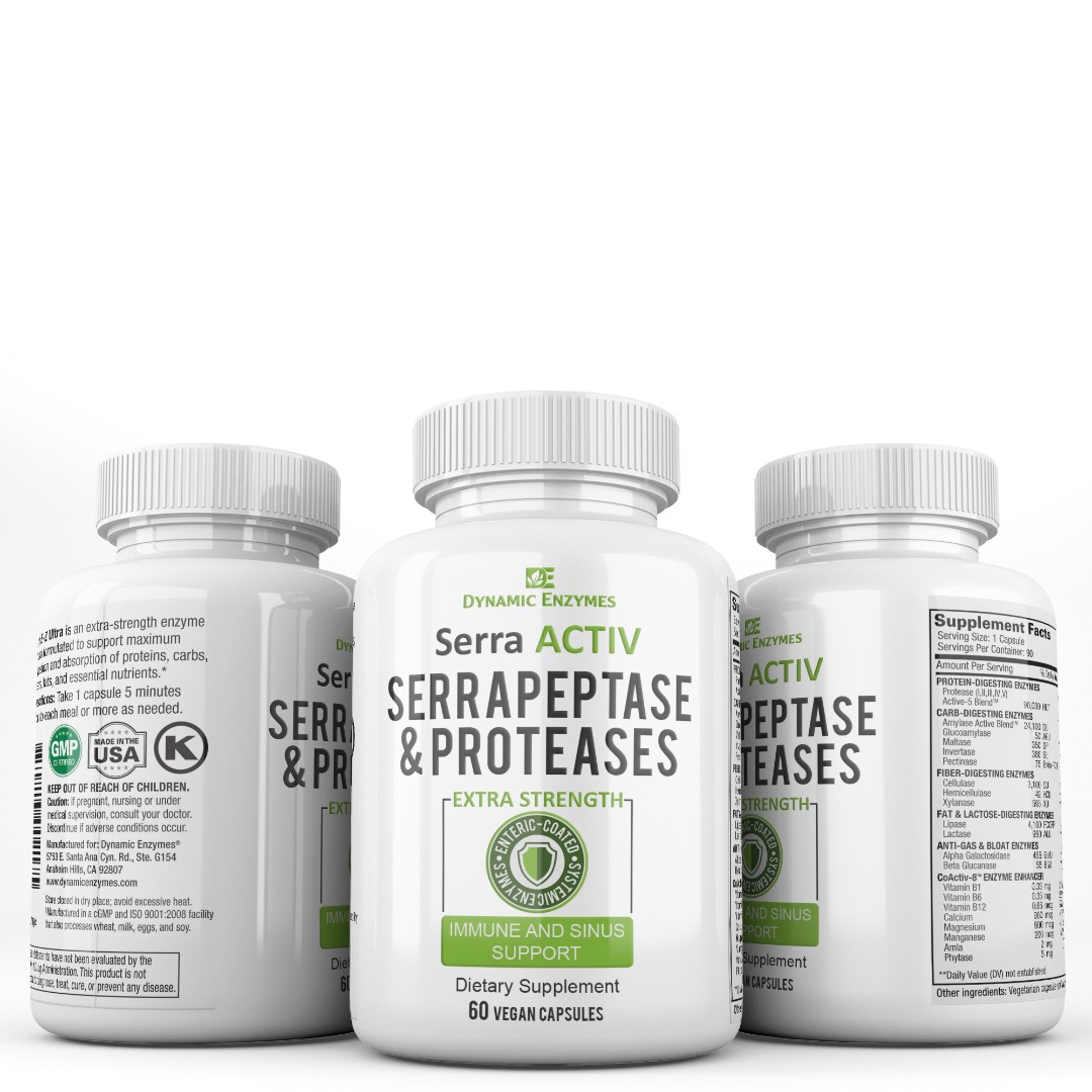 Key ingredients like “Serrapeptase & Proteases” emphasized for instant recognition