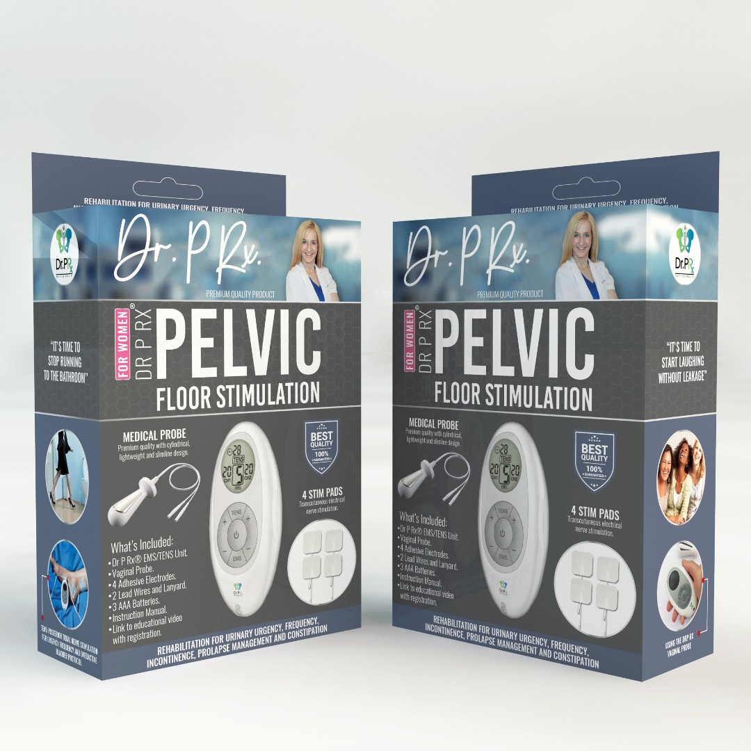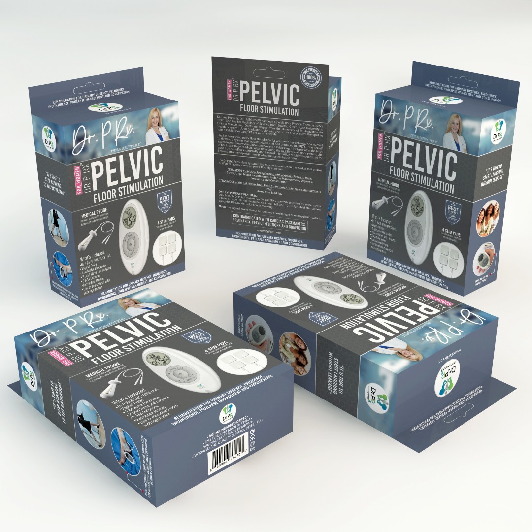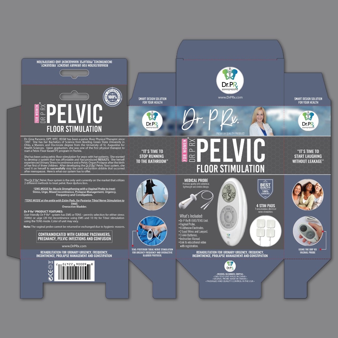 Dr. P Rx required a modern and eye-catching vertical box design for their Pelvic Floor Stimulation Unit that would clearly communicate medical benefits while maintaining a professional clinical aesthetic.
