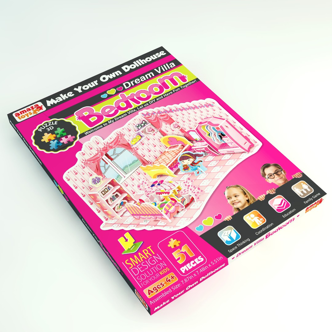 AmazaToys required a modernized packaging redesign for the Dream Villa dollhouse toy to improve retail and online visibility.