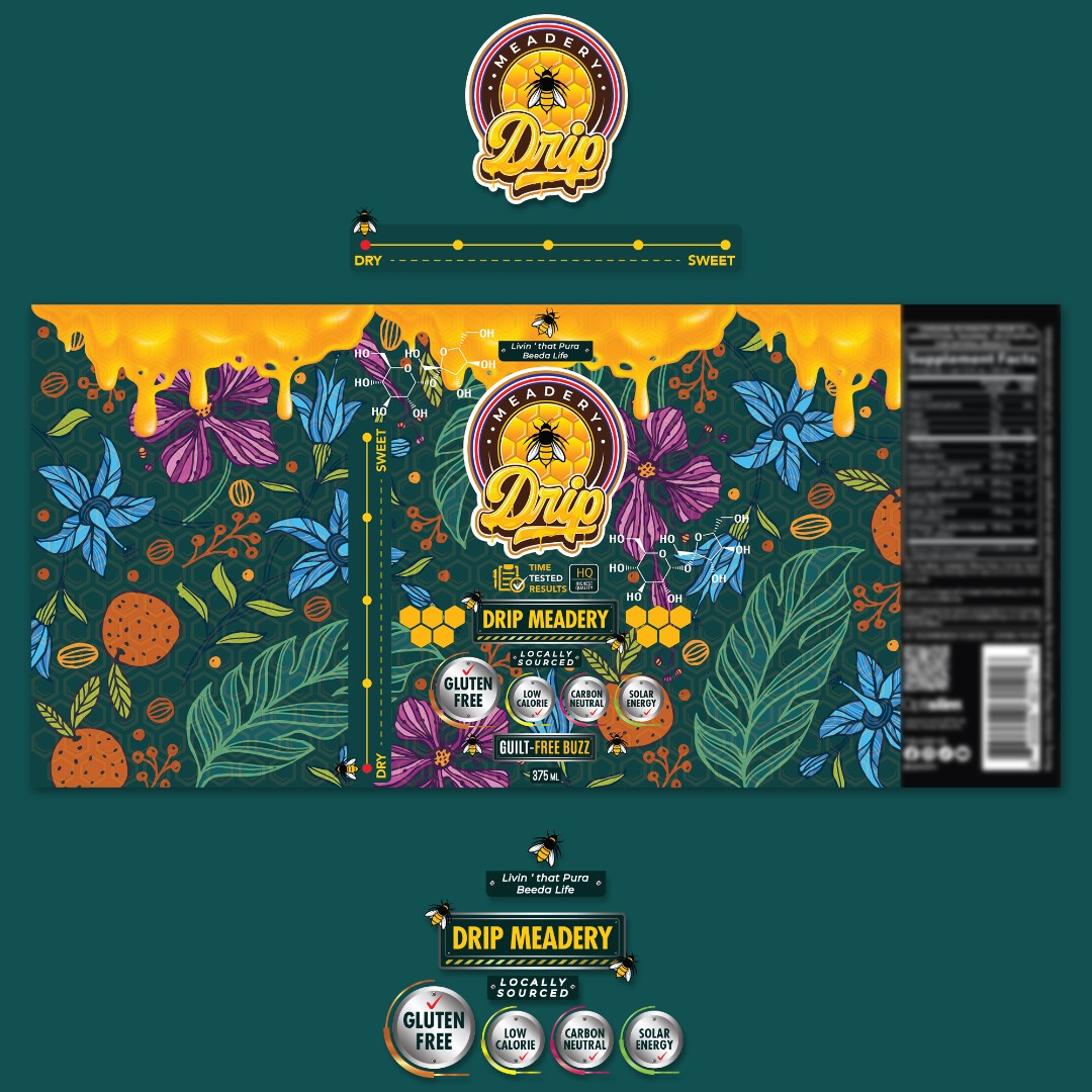 Drip Meadery needed a unique can label for their honey-based alcoholic beverage (mead) that reflects its natural essence and eco-conscious production process.
