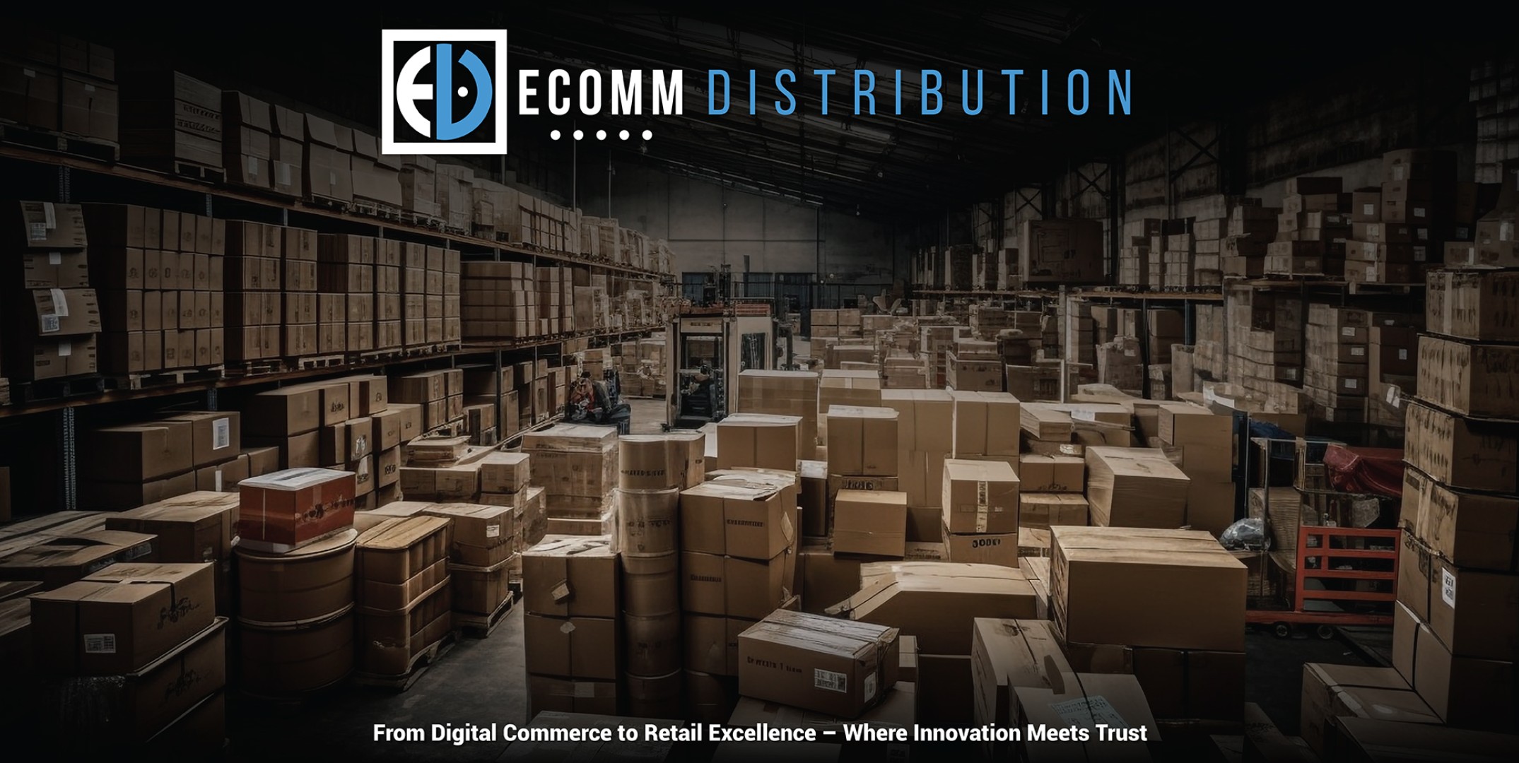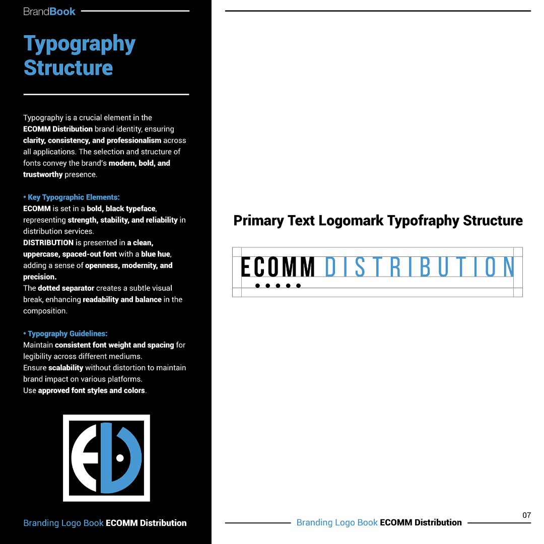 Designed modern geometric typography with contrast between “ECOMM” and “DISTRIBUTION” to balance digital innovation with established logistics authority.