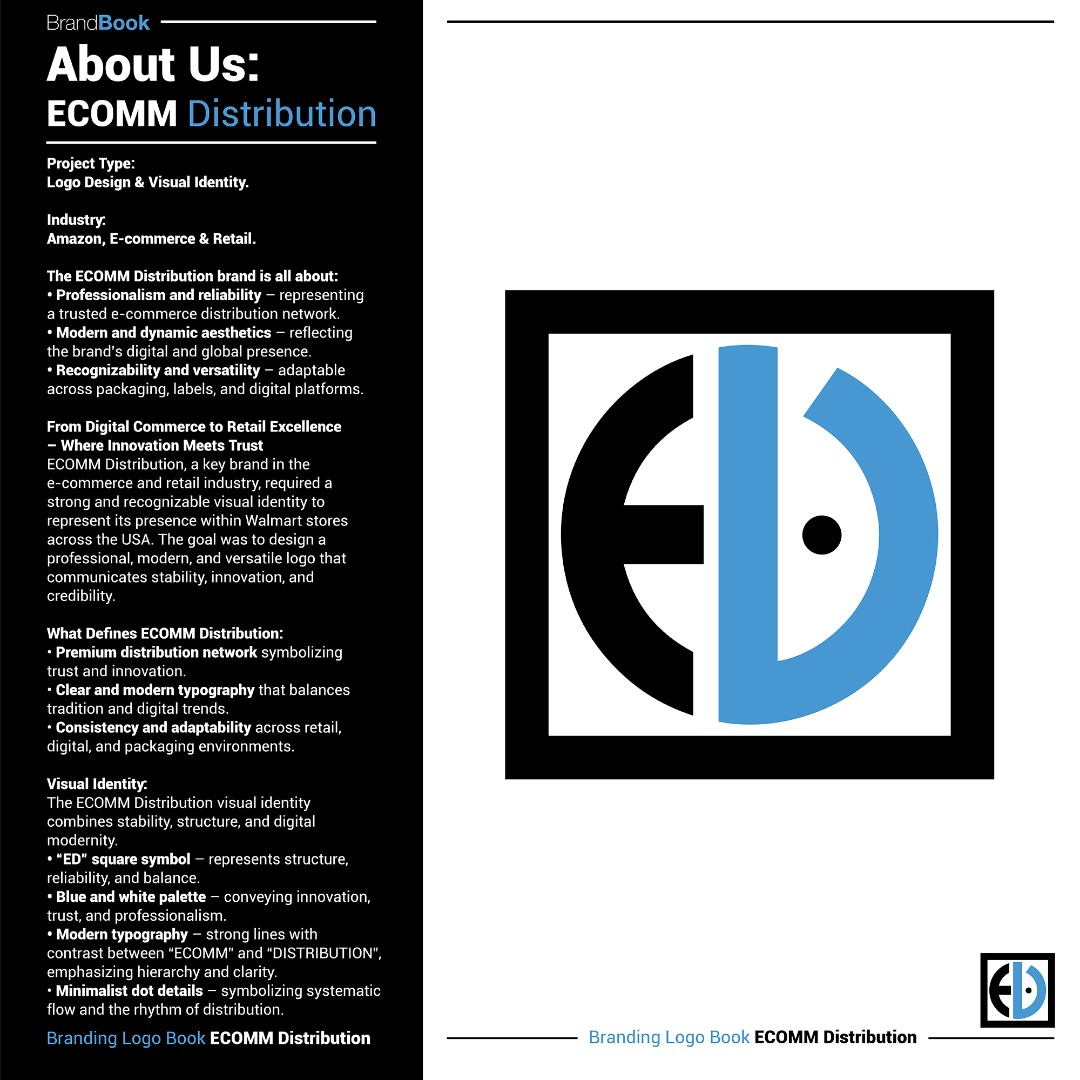The brand required a professional, modern, and highly recognizable logo to represent its exclusive ECOMM Distribution identity within Walmart retail environments across the USA.