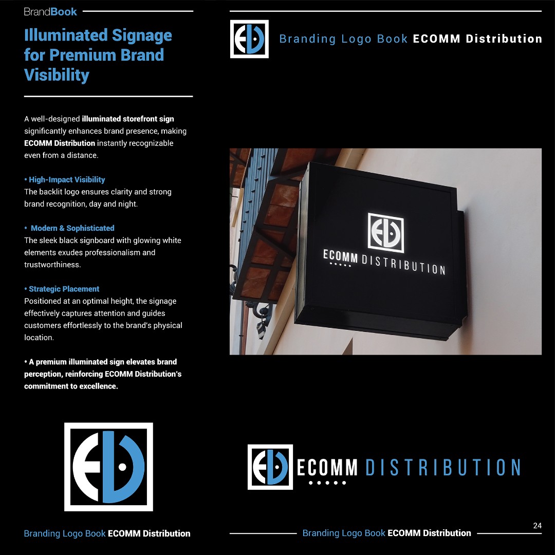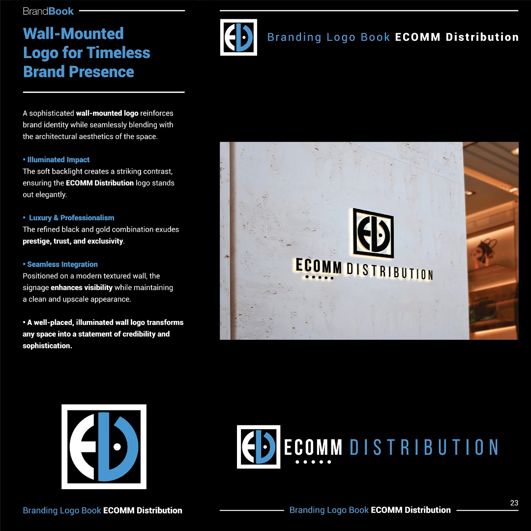 The final identity positioned ECOMM Distribution as a premium, trustworthy retail distribution brand within the Walmart ecosystem.