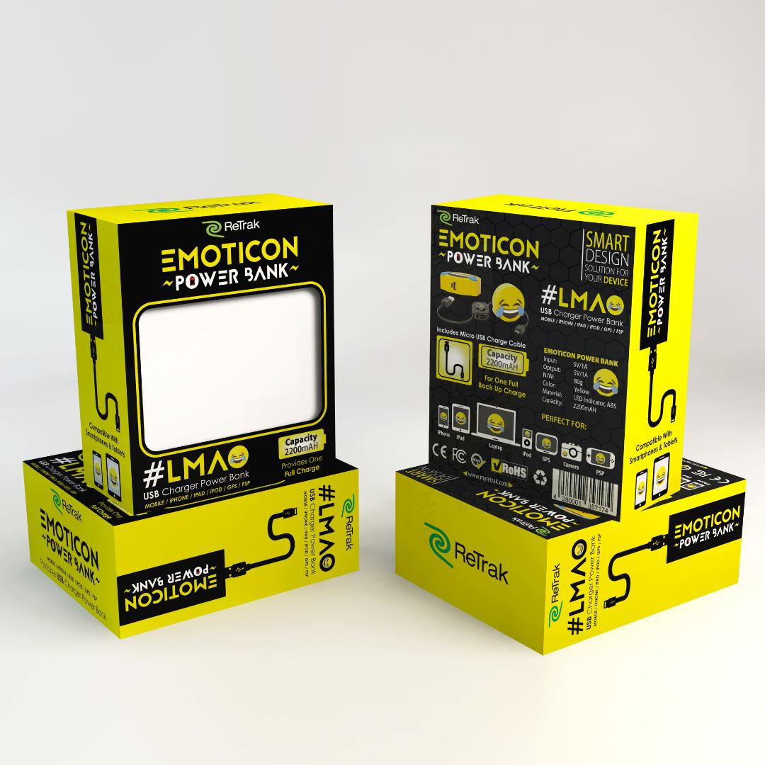 ReTrak wanted to create a fun and eye-catching packaging design for their Emoticon Power Bank line that would appeal to a younger audience while ensuring strong product visibility.