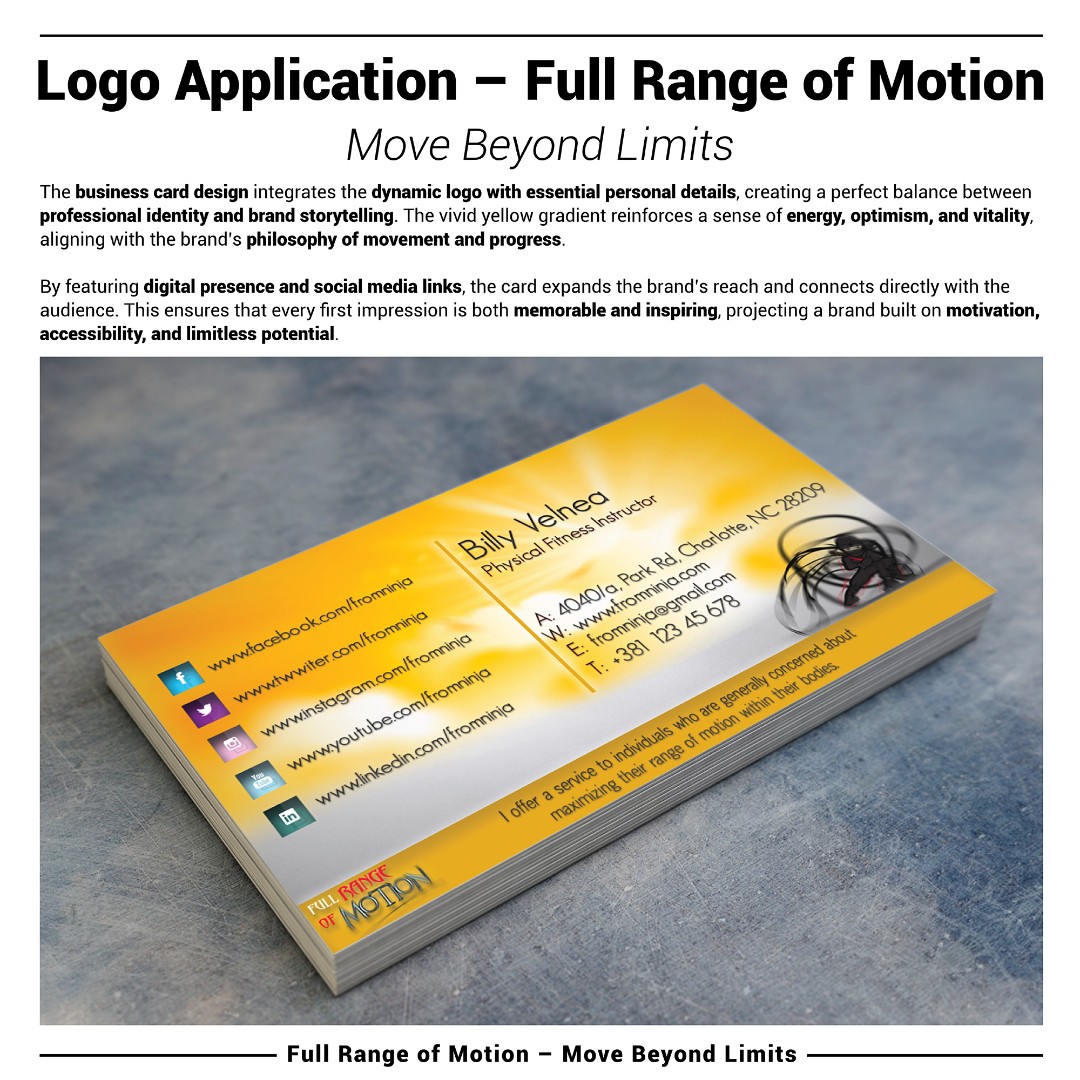 The goal was to create a dynamic and engaging logo that reflects Full Range of Motion’s focus on mobility, flexibility, and athletic performance.