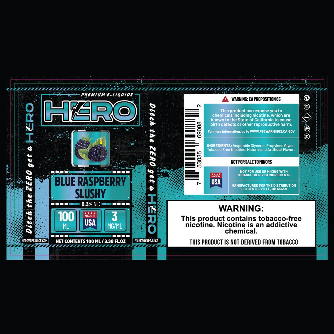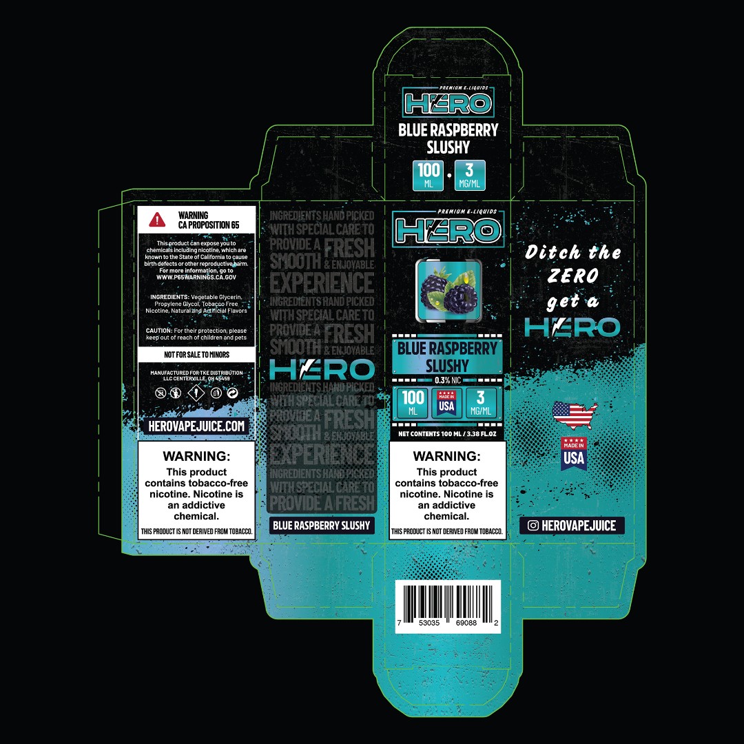 TKE Distribution required a modern redesign of their HERO E-Liquid packaging to align with current market trends while maintaining brand recognition across multiple product lines.