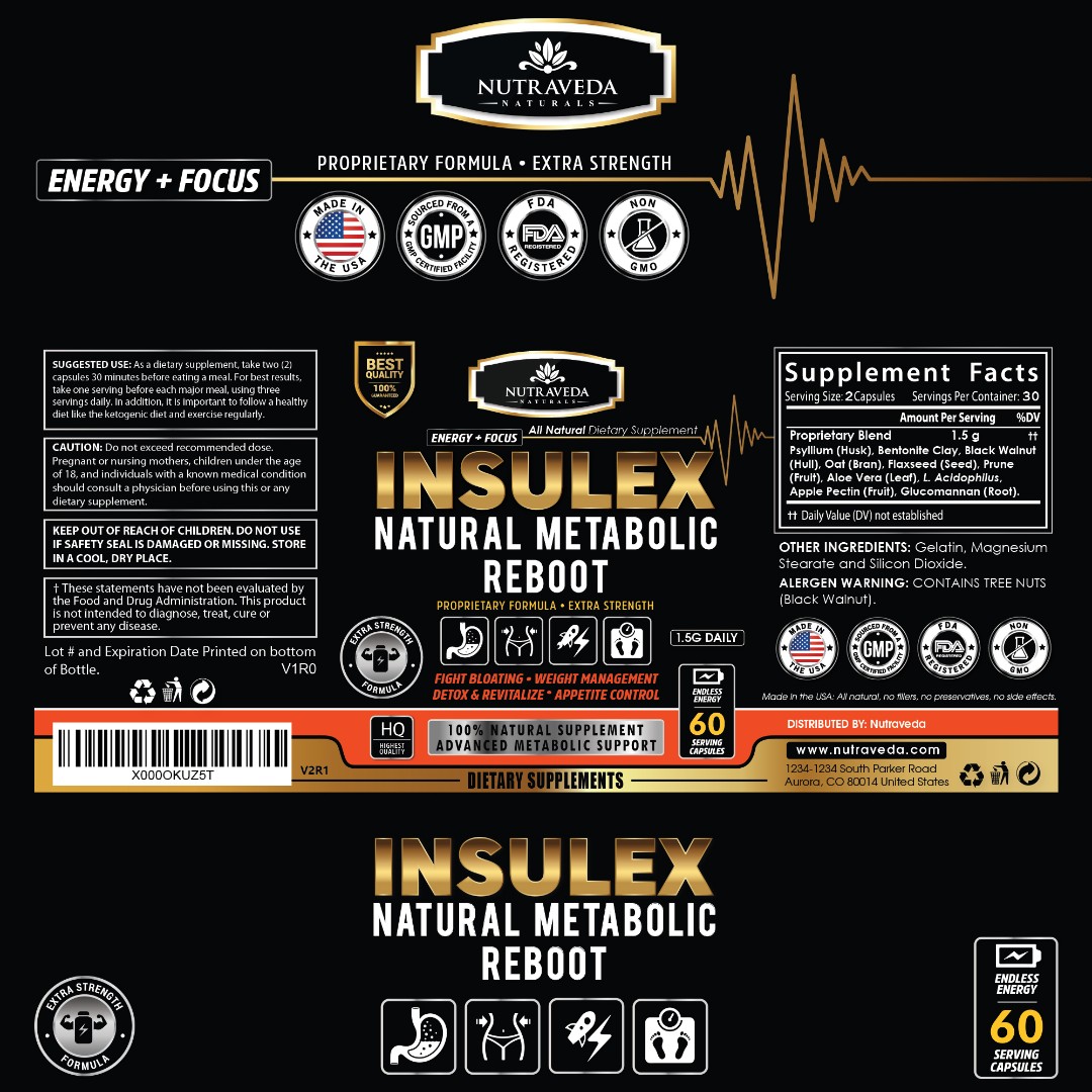 Launching INSULEX as a premium metabolic support supplement required a label that communicates both natural formulation and clinical effectiveness at first glance.