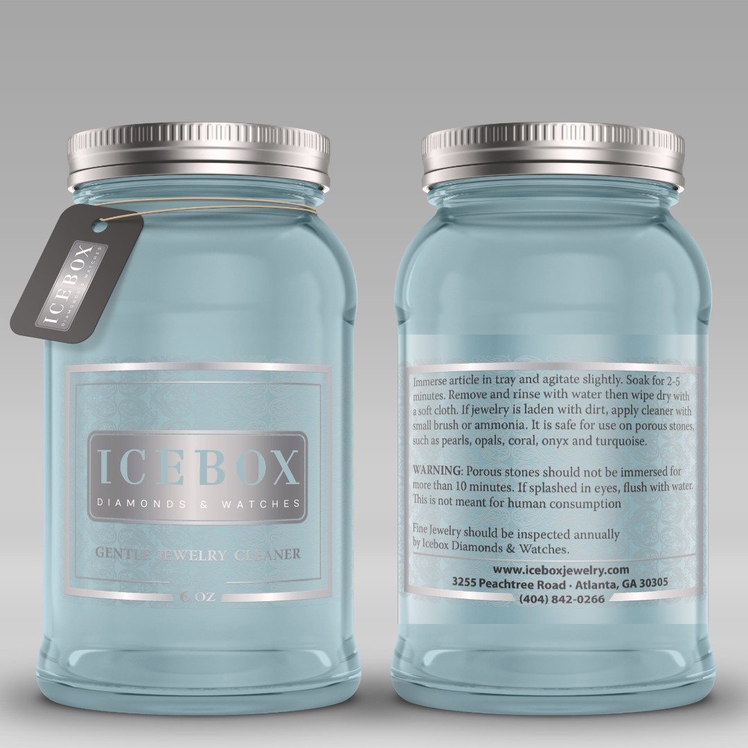 Icebox Diamonds & Watches required a premium and masculine packaging design for their Jewelry Cleaner & Polishing Cloth that aligns with their luxury brand image across multiple product components.