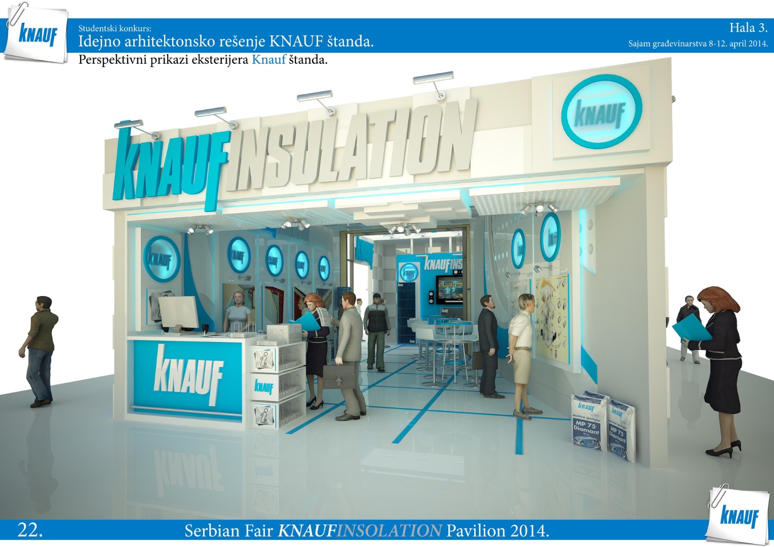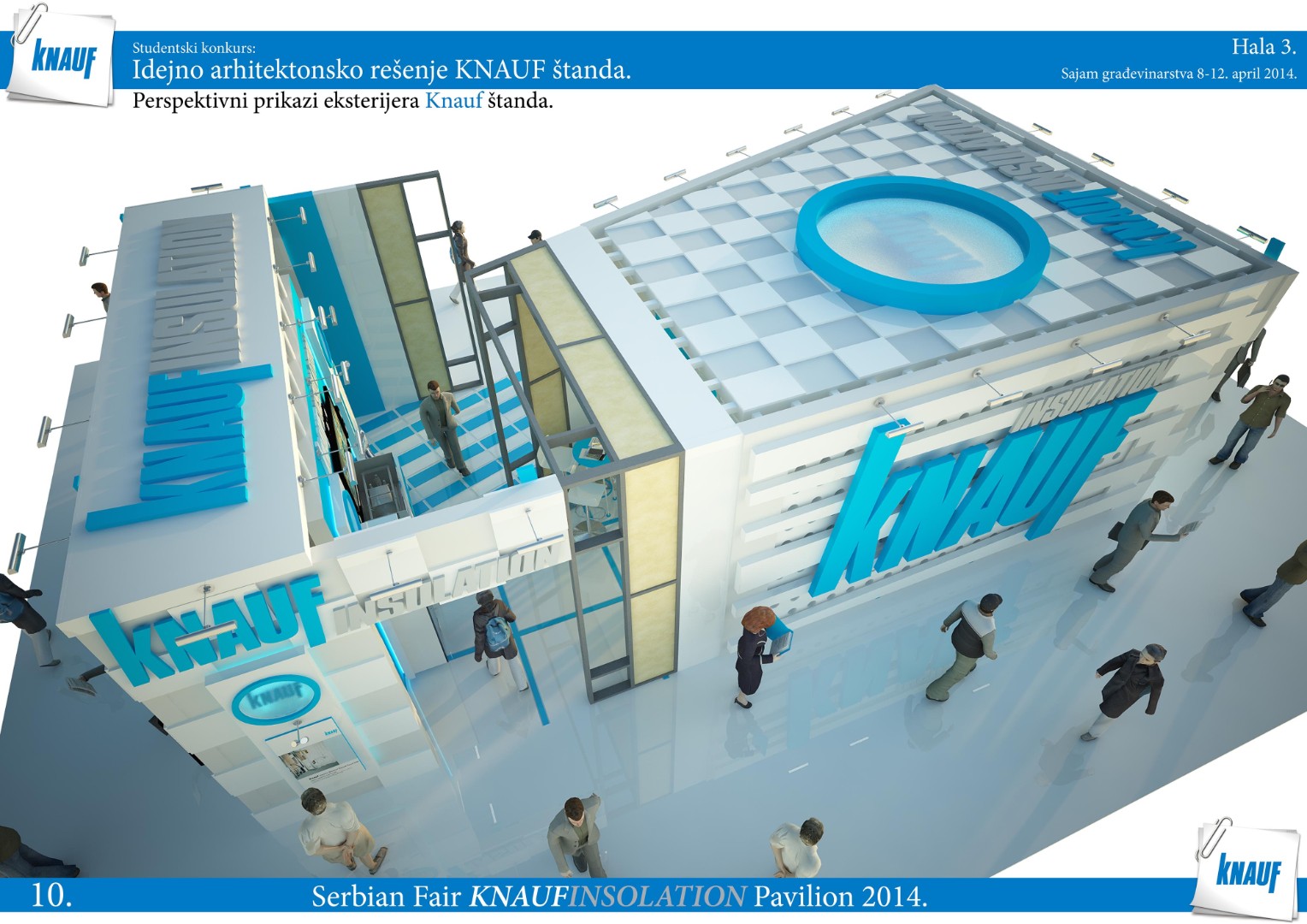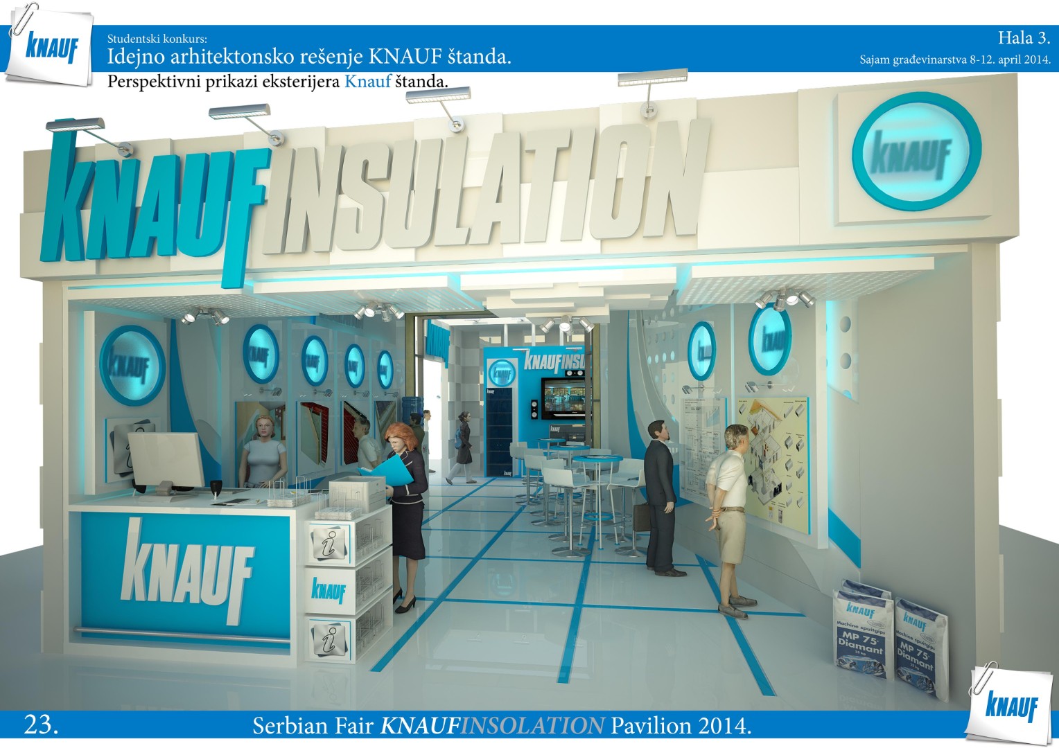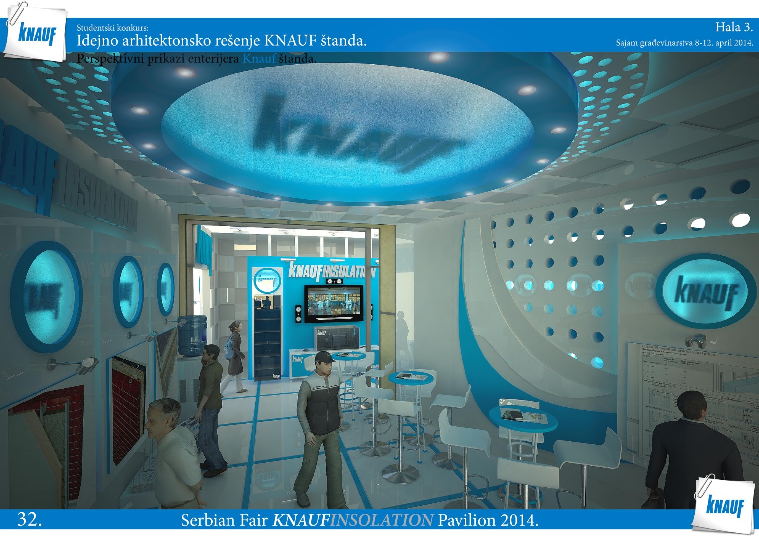The KNAUF Exhibition Stand designed for the International Construction Fair in Belgrade required a conceptual architectural solution that effectively presents the brand’s identity within a limited exhibition space.