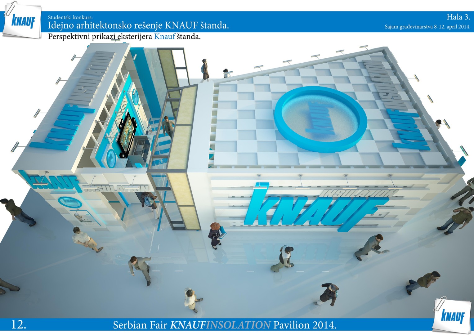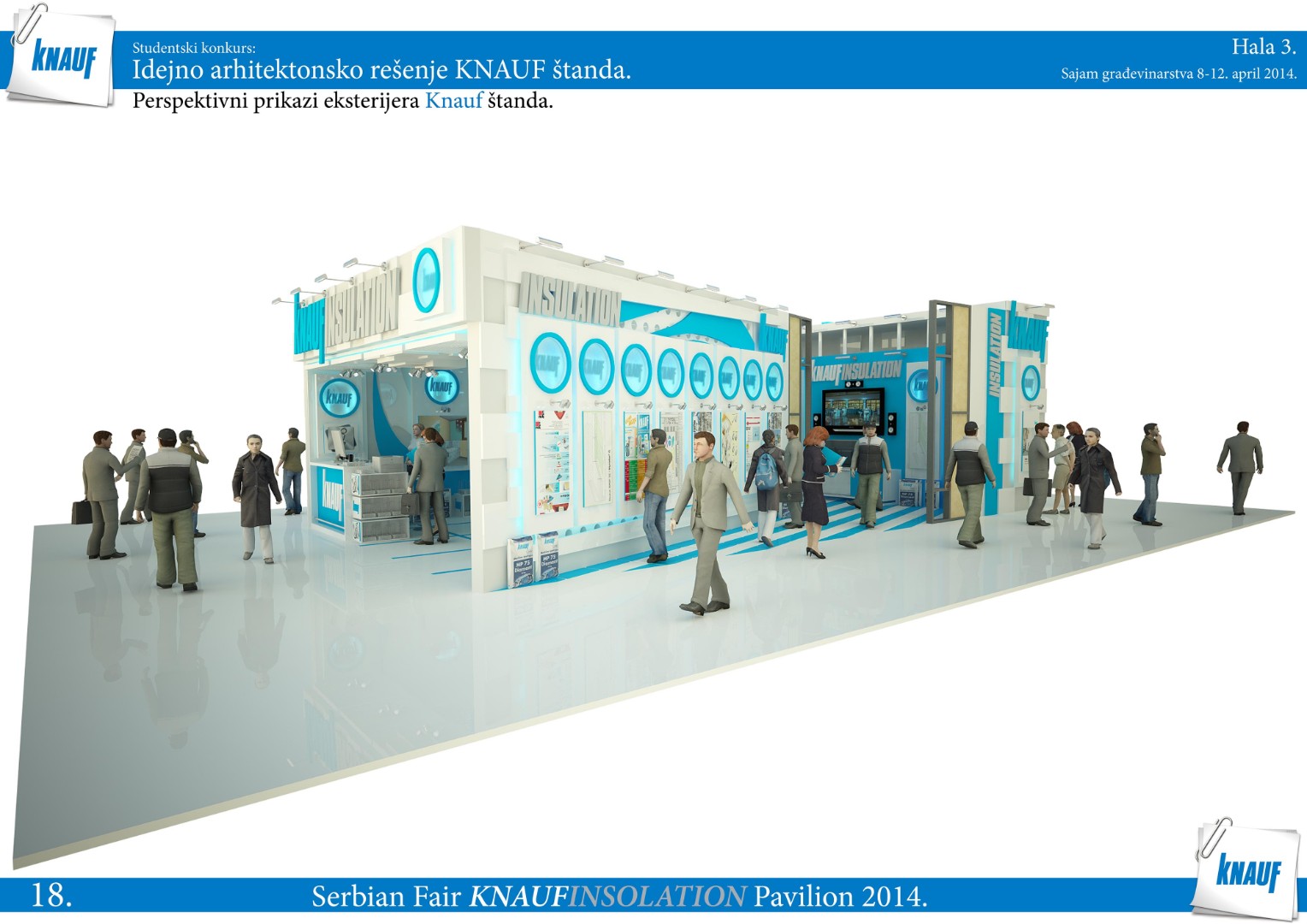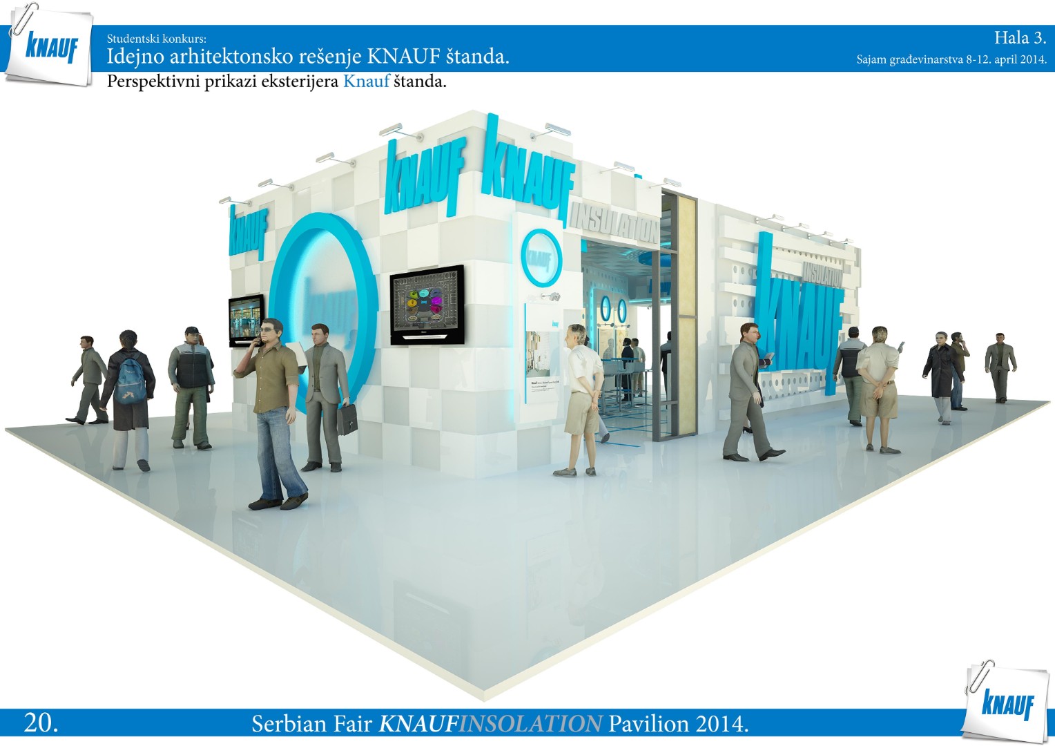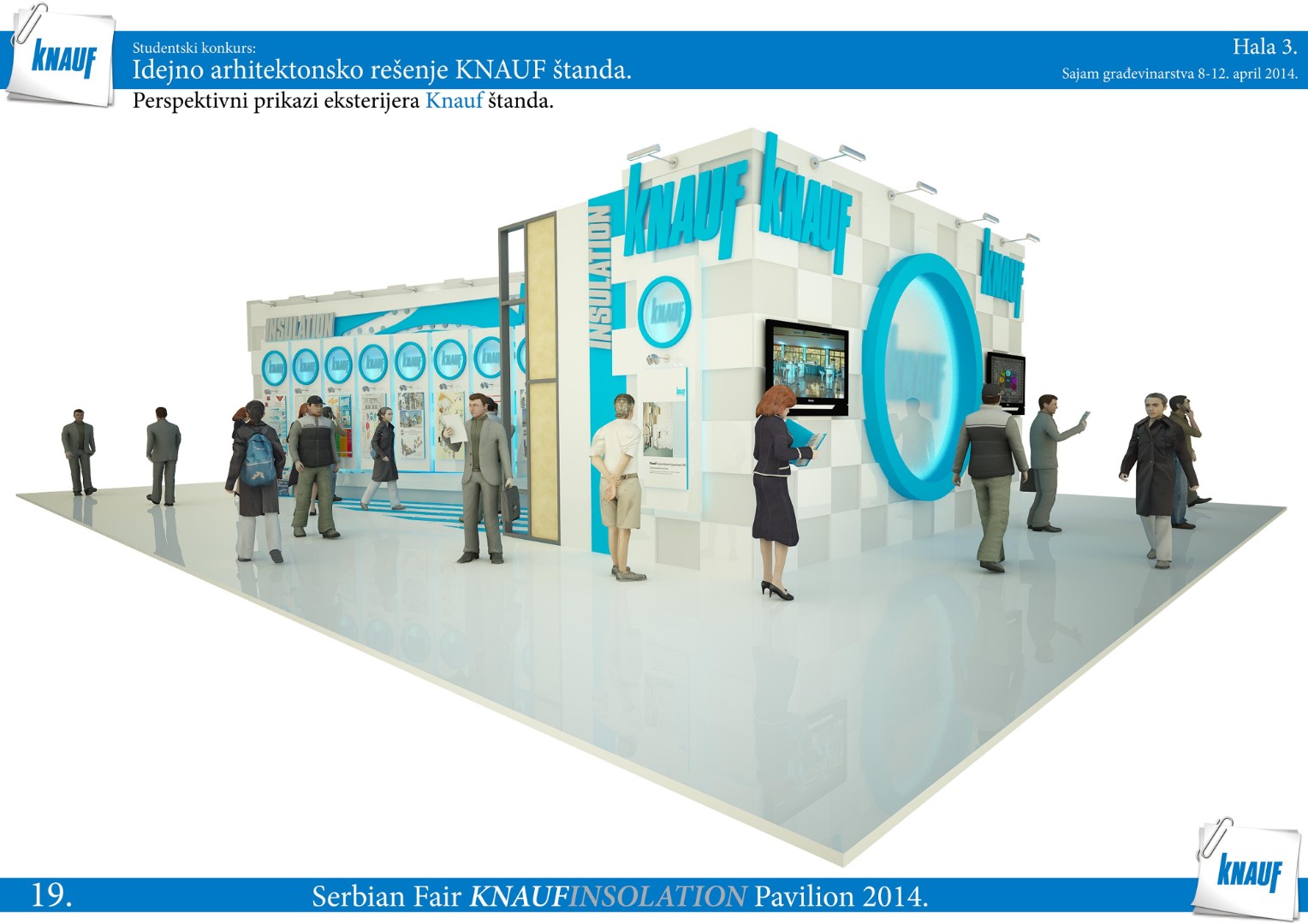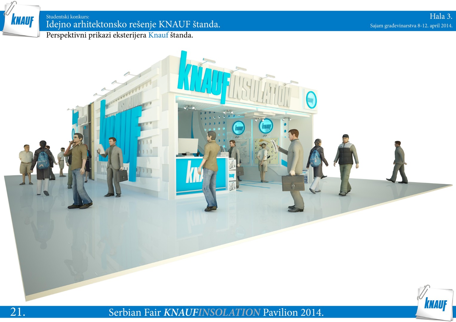 The KNAUF Exhibition Stand designed for the International Construction Fair in Belgrade required a conceptual architectural solution that effectively presents the brand’s identity within a limited exhibition space.