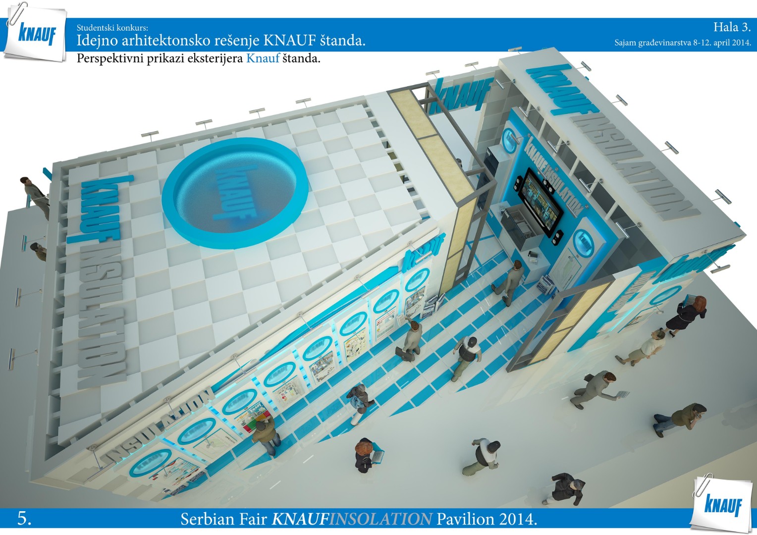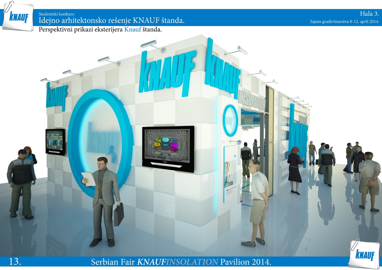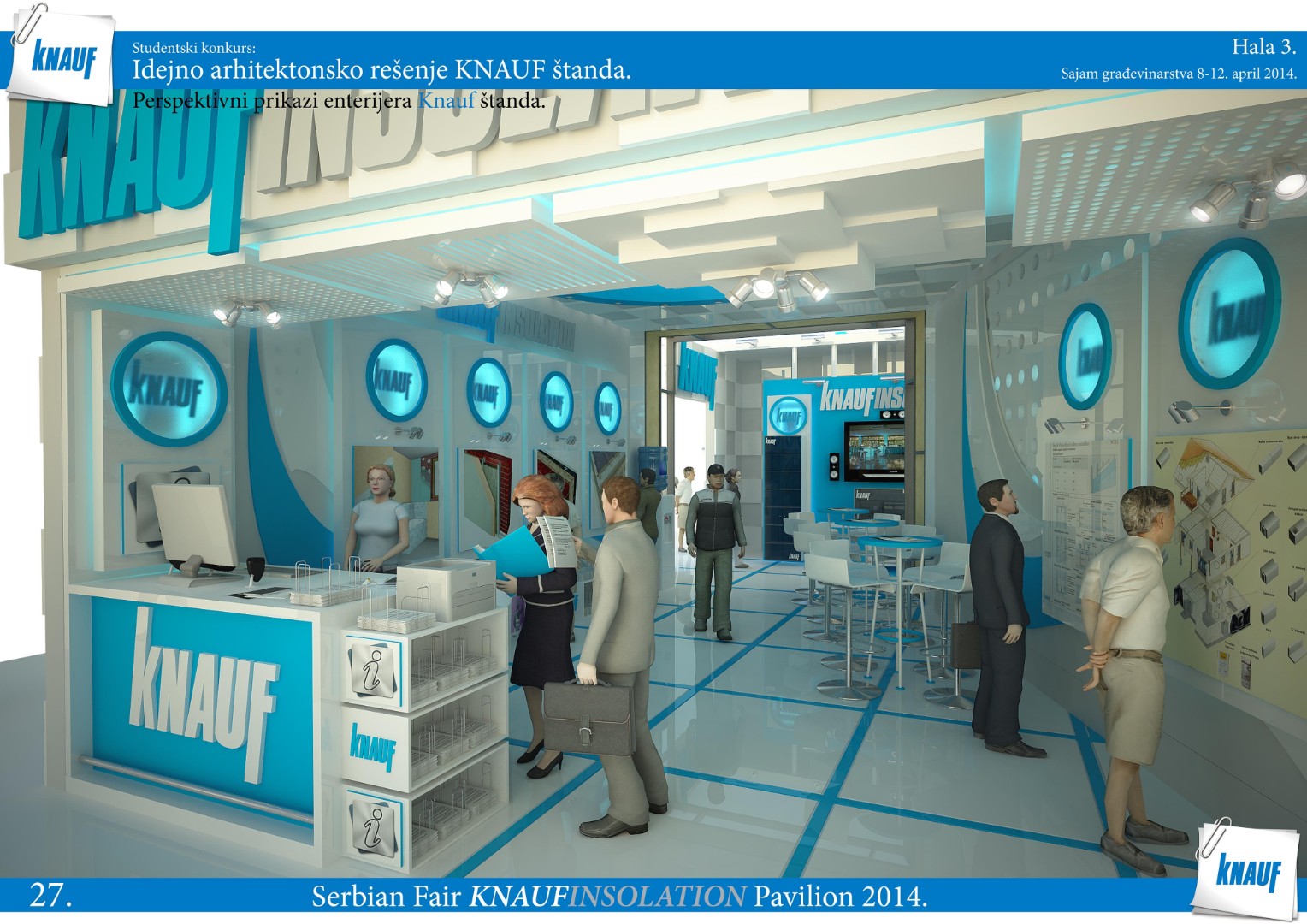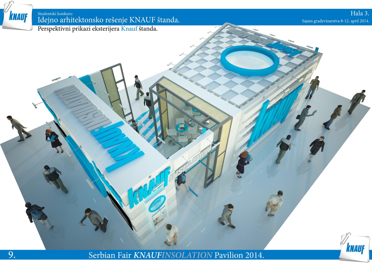The KNAUF Exhibition Stand designed for the International Construction Fair in Belgrade required a conceptual architectural solution that effectively presents the brand’s identity within a limited exhibition space.