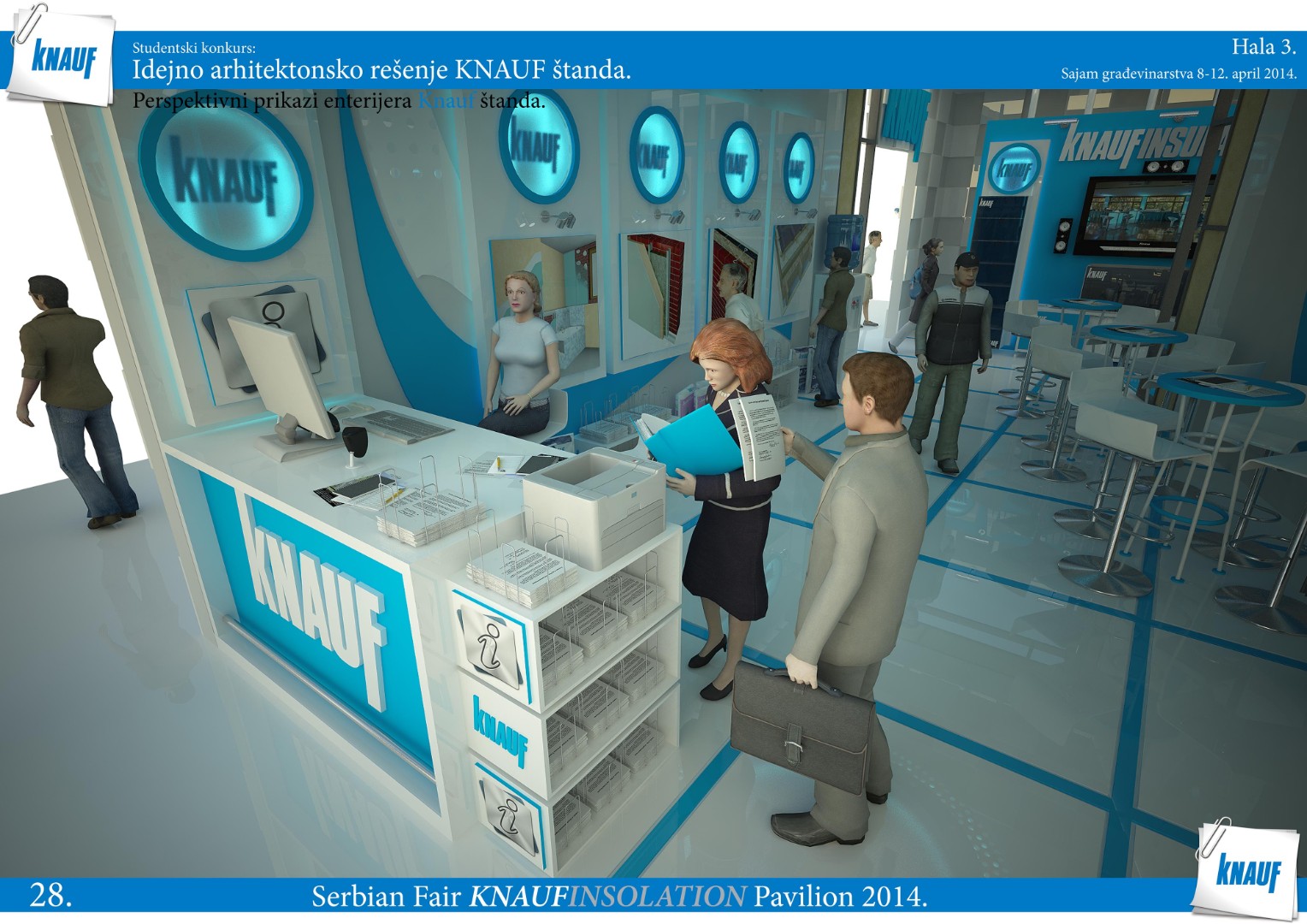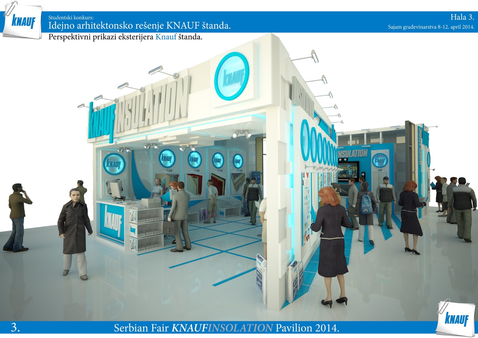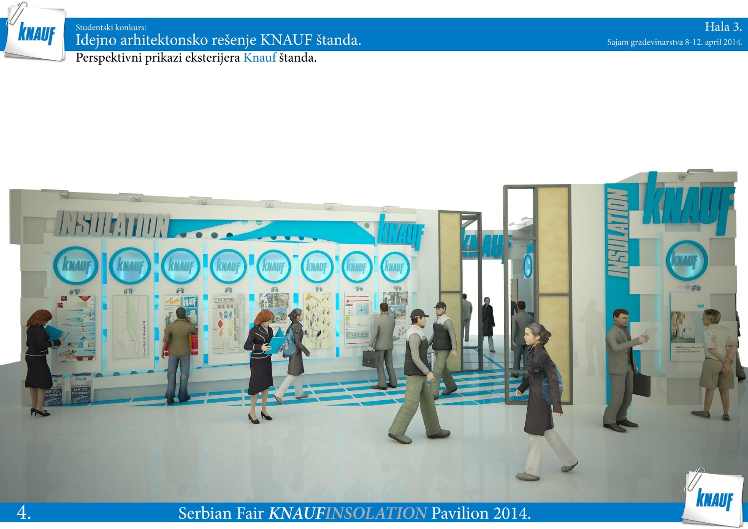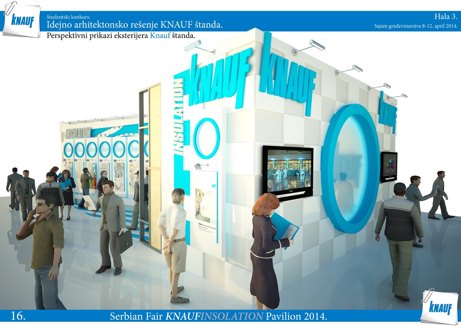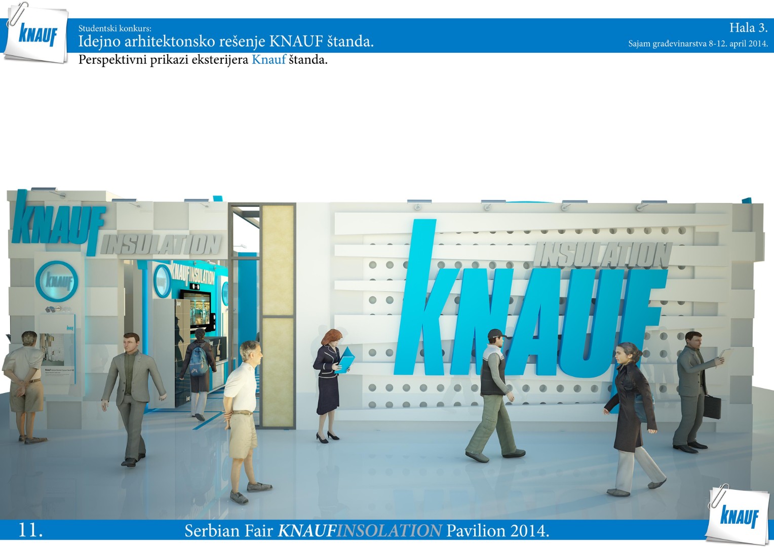 The KNAUF Exhibition Stand designed for the International Construction Fair in Belgrade required a conceptual architectural solution that effectively presents the brand’s identity within a limited exhibition space.