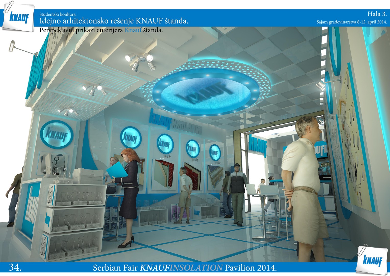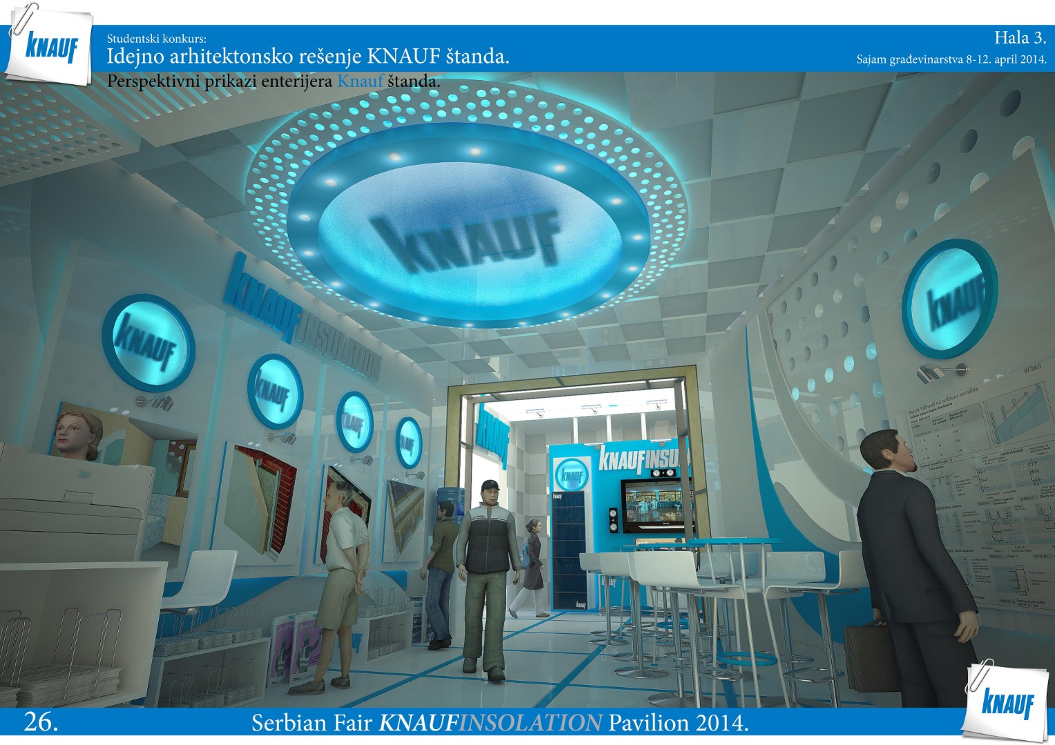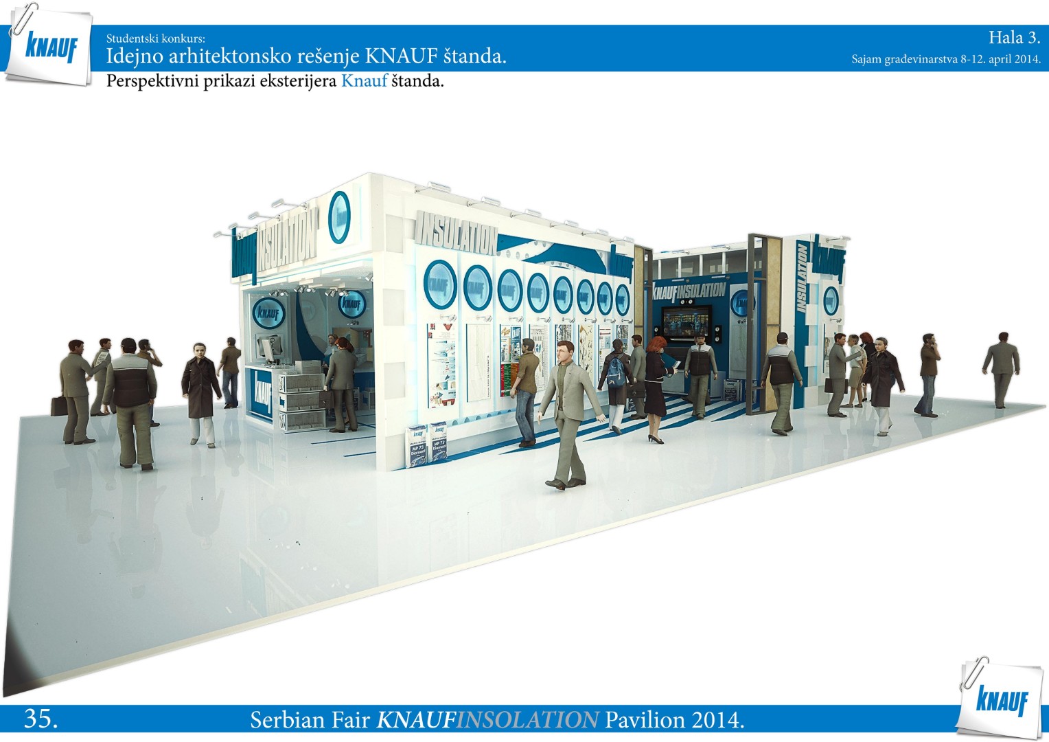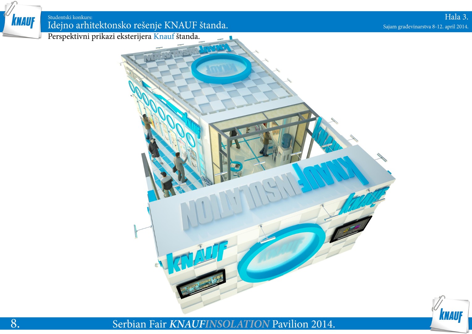 The KNAUF Exhibition Stand designed for the International Construction Fair in Belgrade required a conceptual architectural solution that effectively presents the brand’s identity within a limited exhibition space.