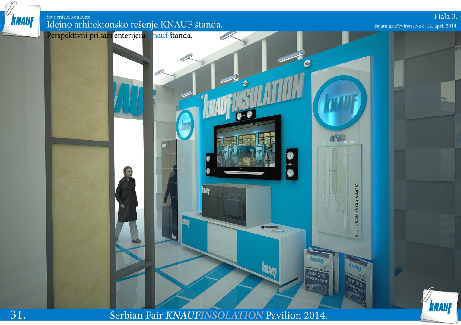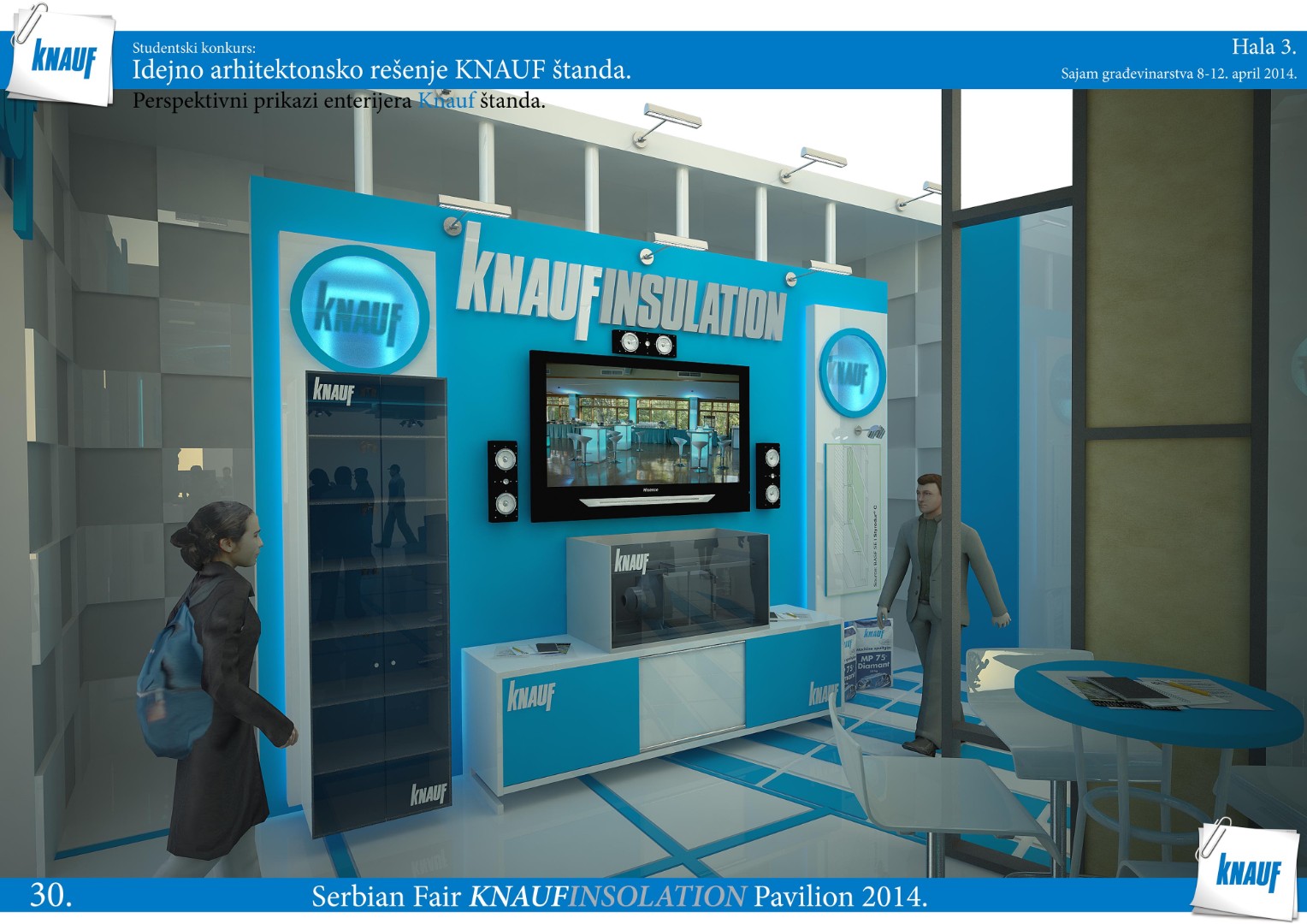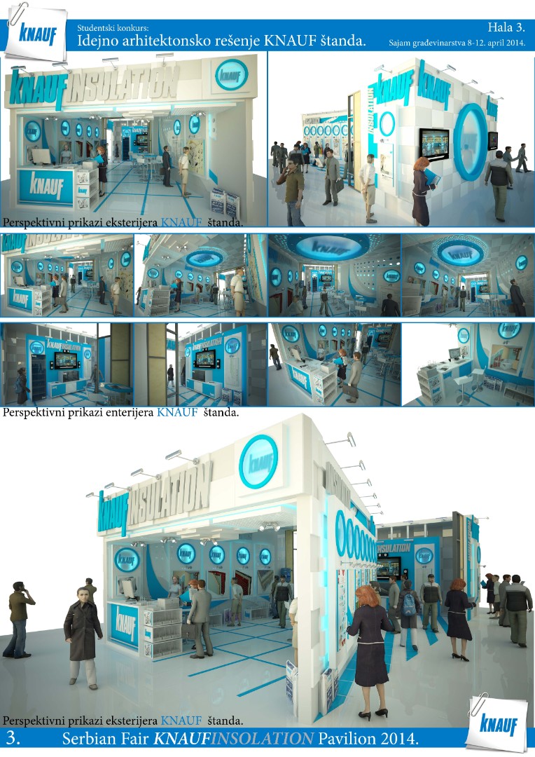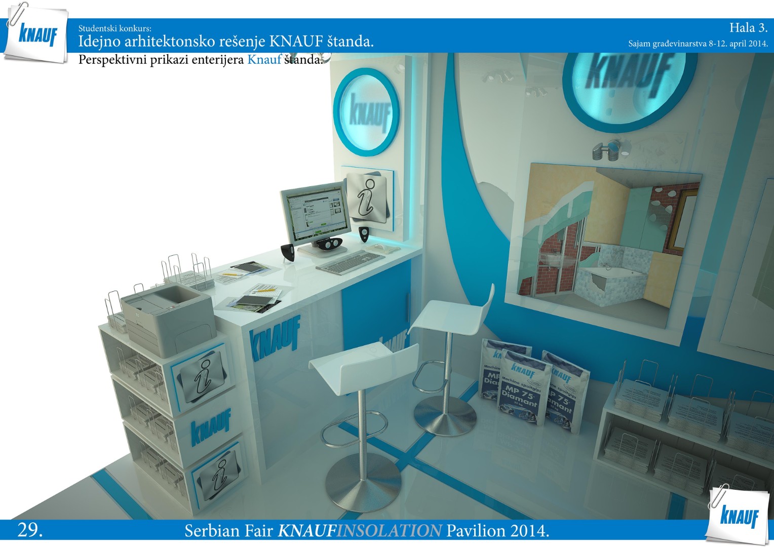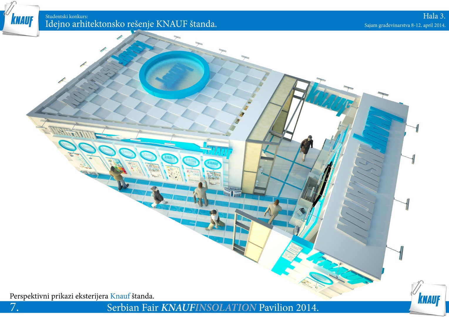 The KNAUF Exhibition Stand designed for the International Construction Fair in Belgrade required a conceptual architectural solution that effectively presents the brand’s identity within a limited exhibition space.