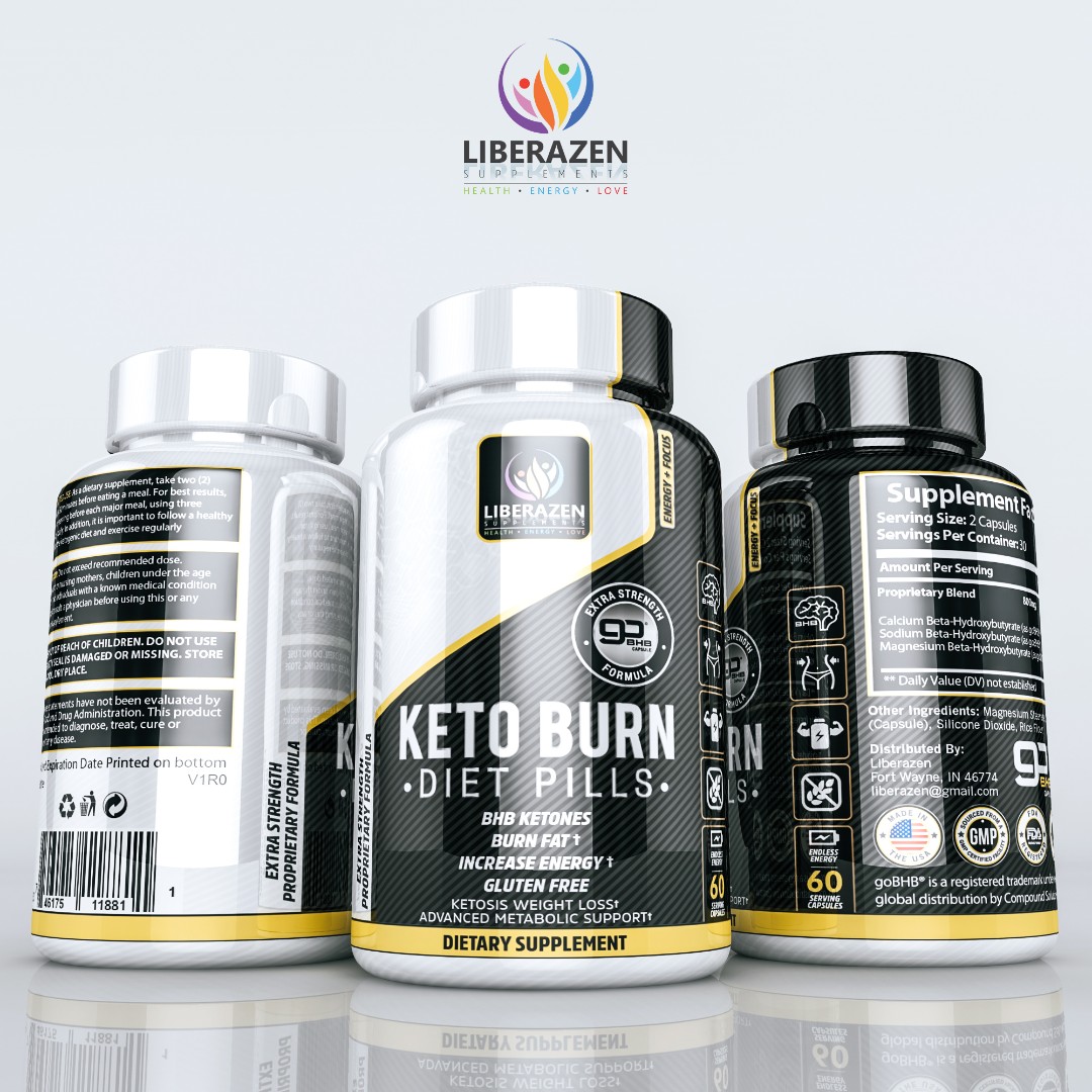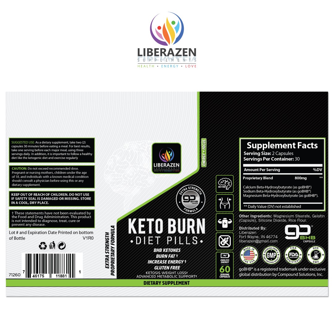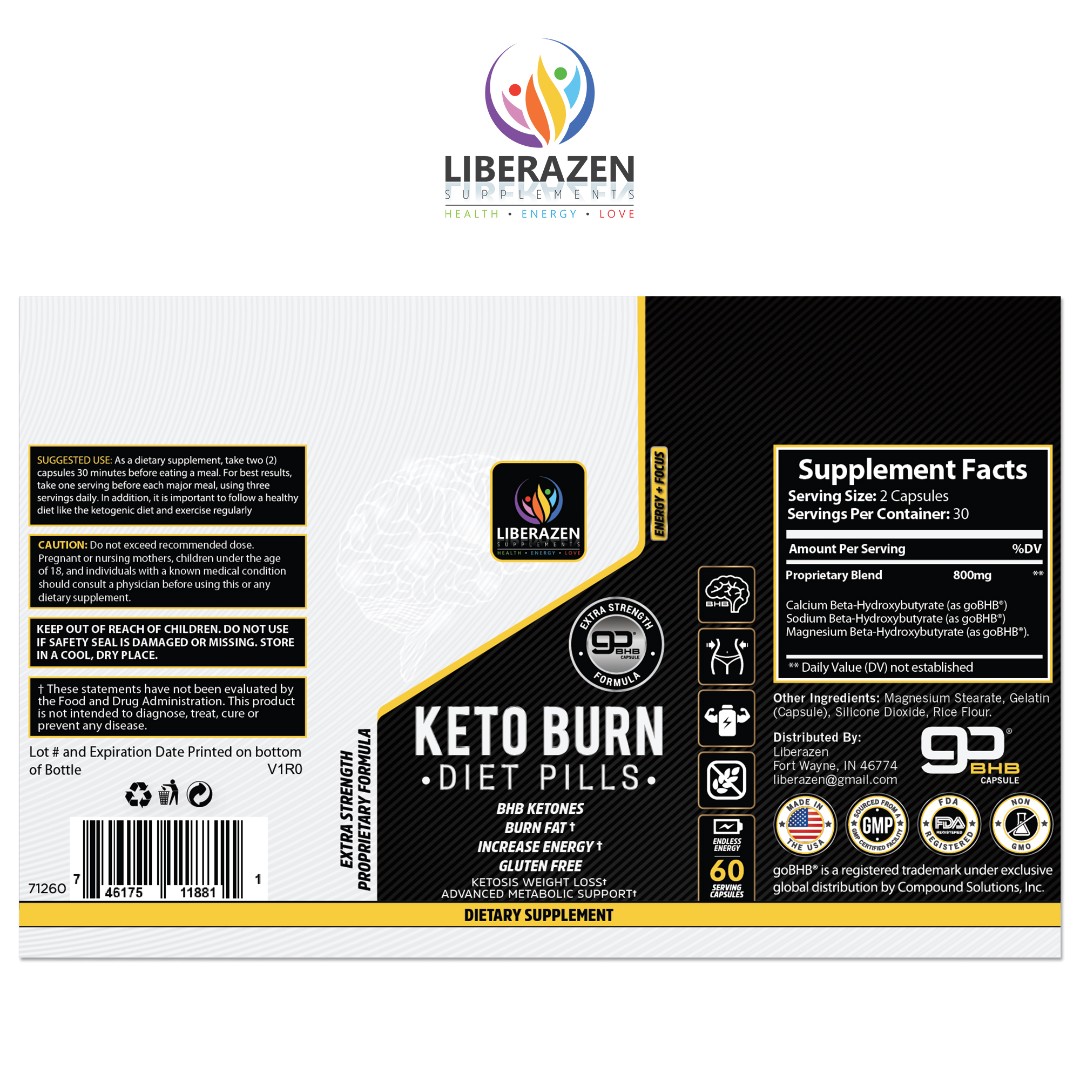 LIBERAZEN required a modern and luxurious label design for KETO BURN Diet Pills that reflects its premium positioning in the Amazon marketplace.