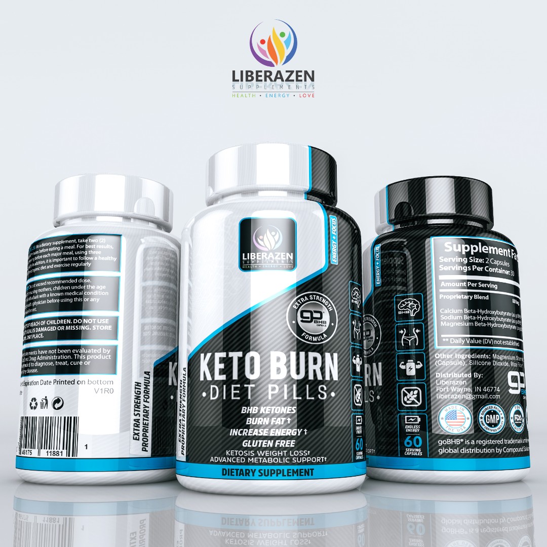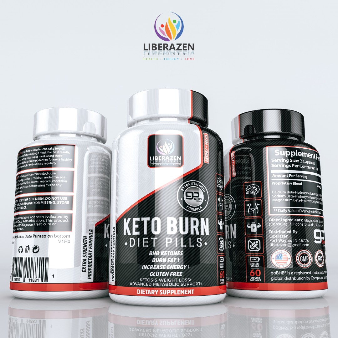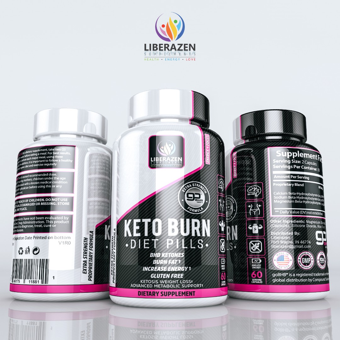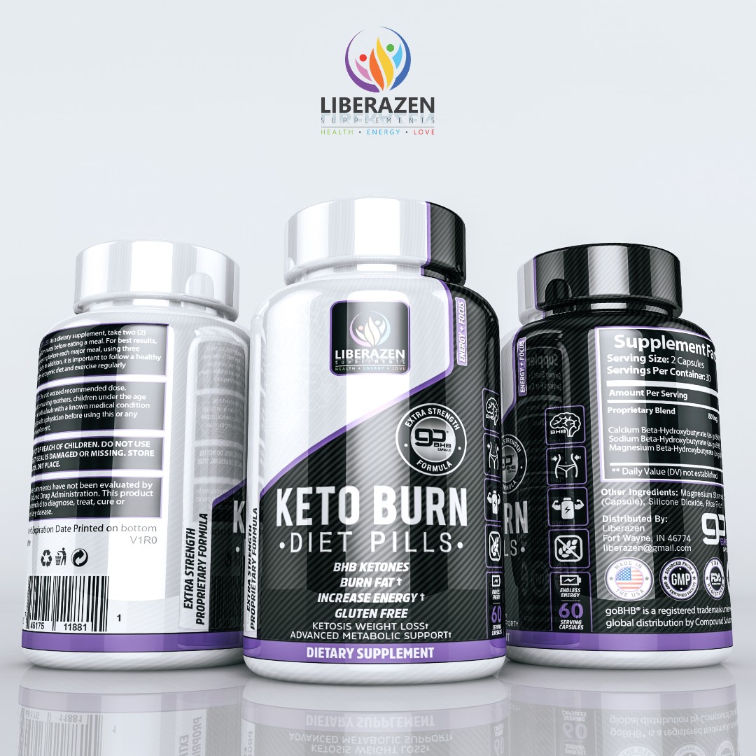 LIBERAZEN required a modern and luxurious label design for KETO BURN Diet Pills that reflects its premium positioning in the Amazon marketplace.