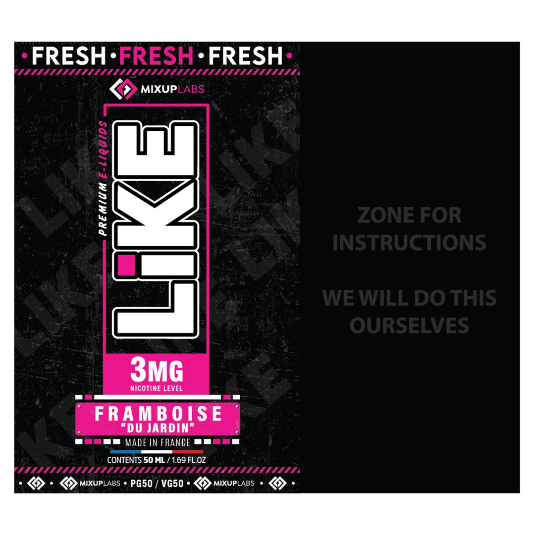 MIXUP LABS required a modern and minimalist label design for their LiKE mono-flavored e-liquid range that communicates freshness and simplicity to adult users new to vaping.