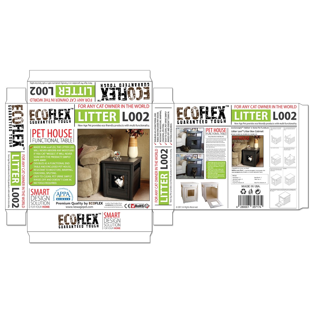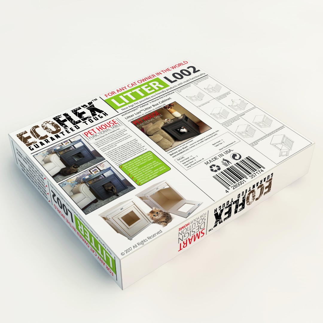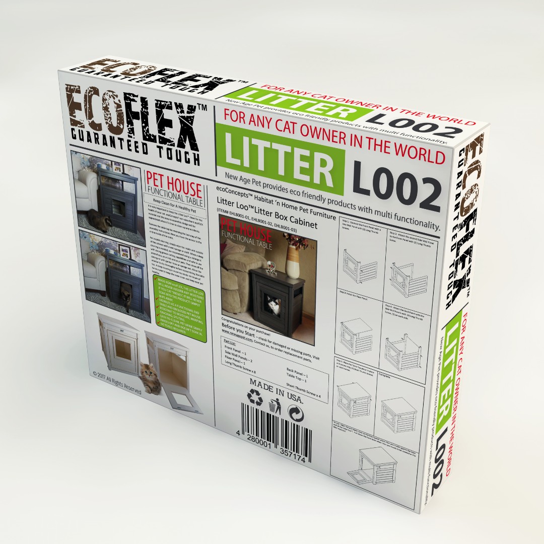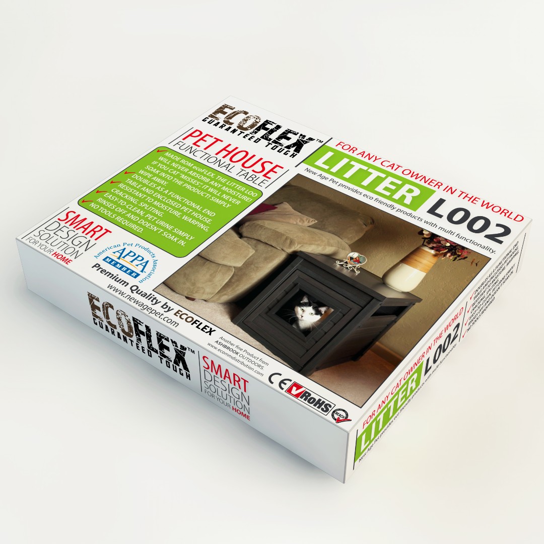 New Age Pet required an eye-catching packaging design for Litter Loo 2 that clearly communicates its multifunctional use as both a hidden litter box and a side table.