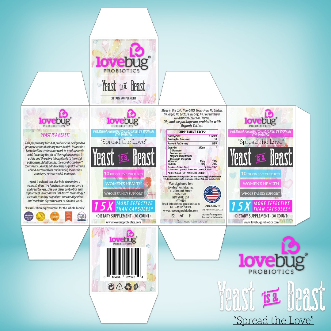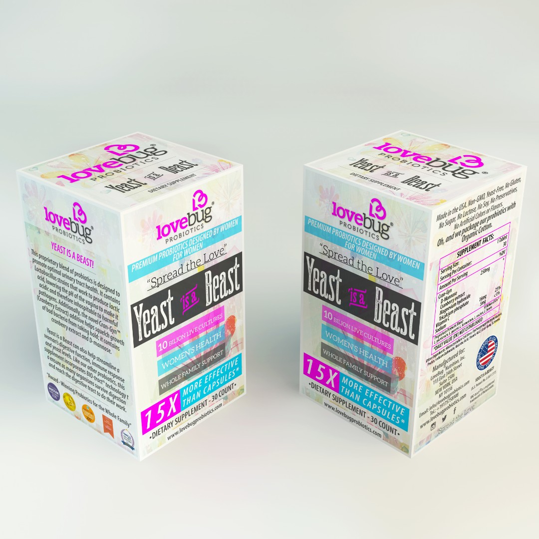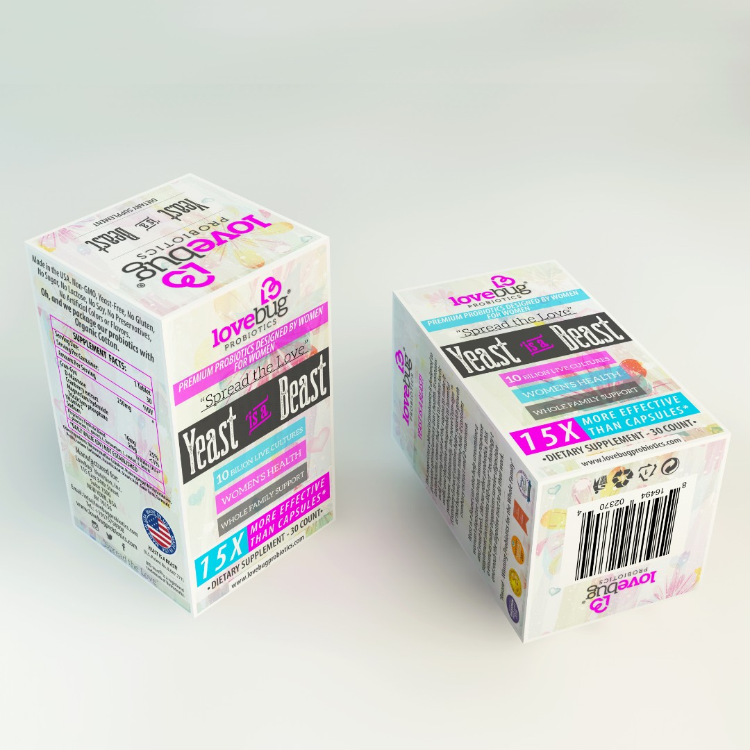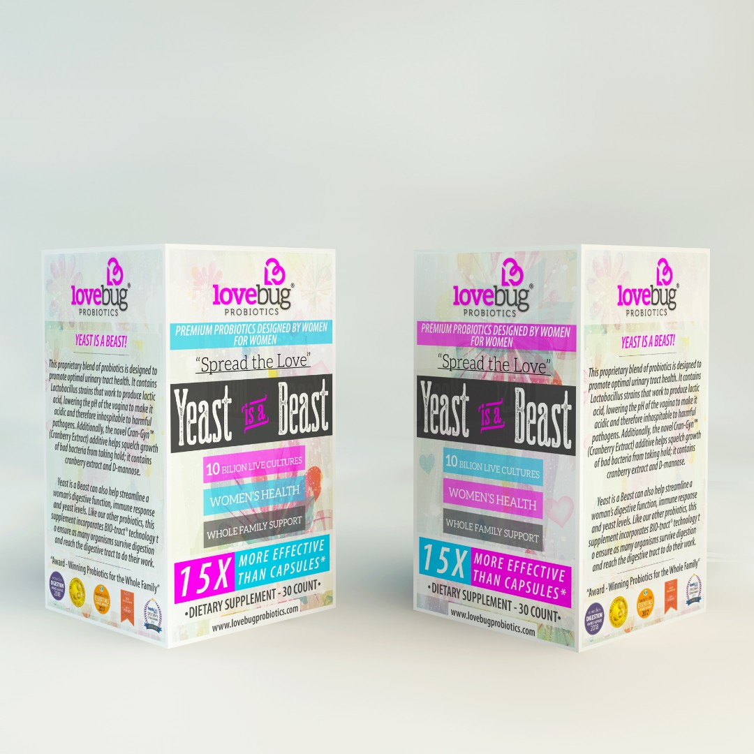 LoveBug Probiotics needed a vibrant and attention-grabbing packaging design for their probiotic supplements that would appeal to millennial moms and young health-conscious women while standing out on crowded retail shelves.