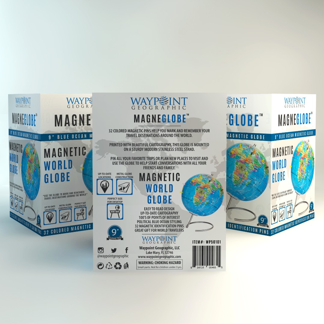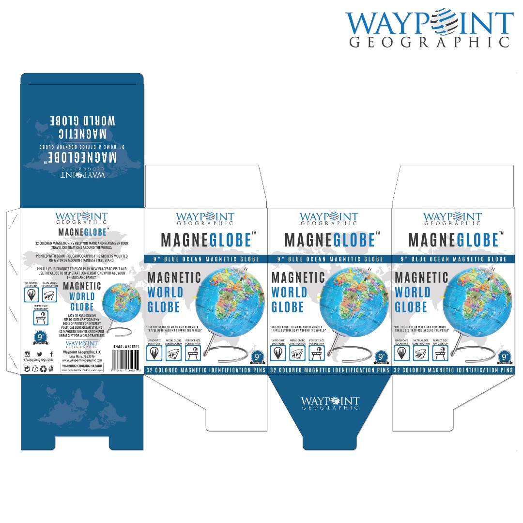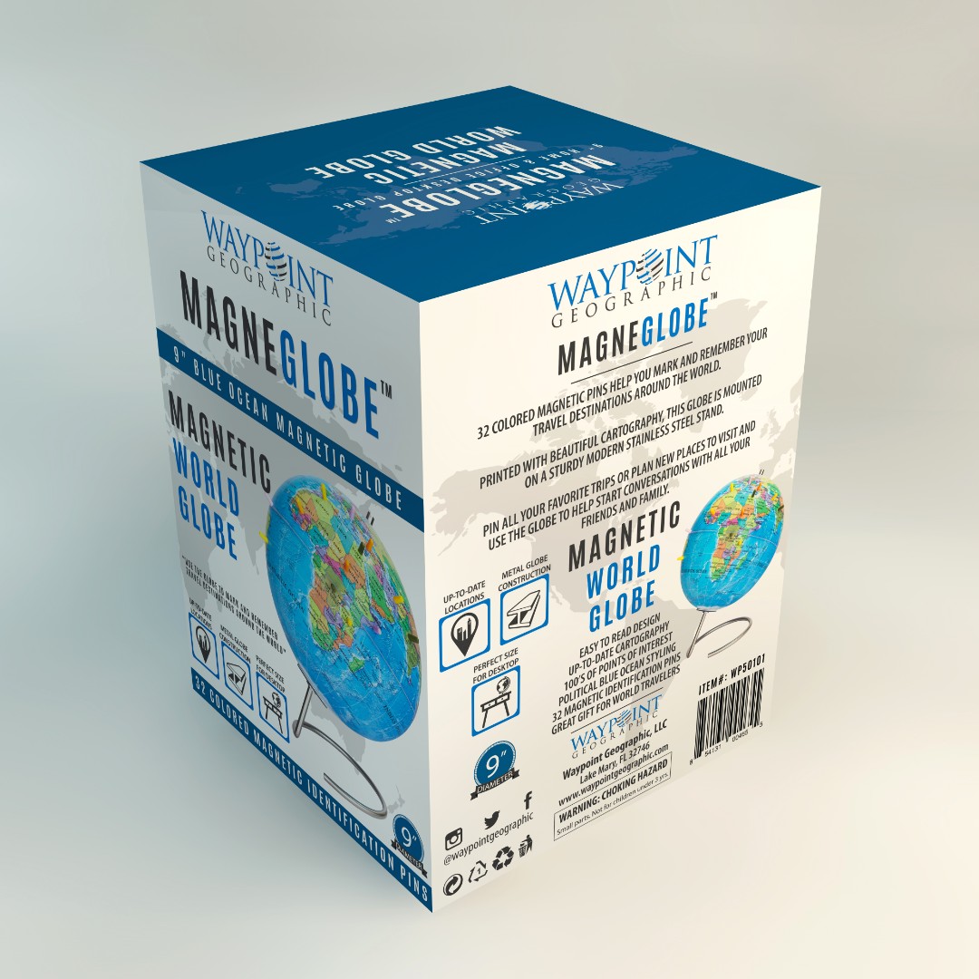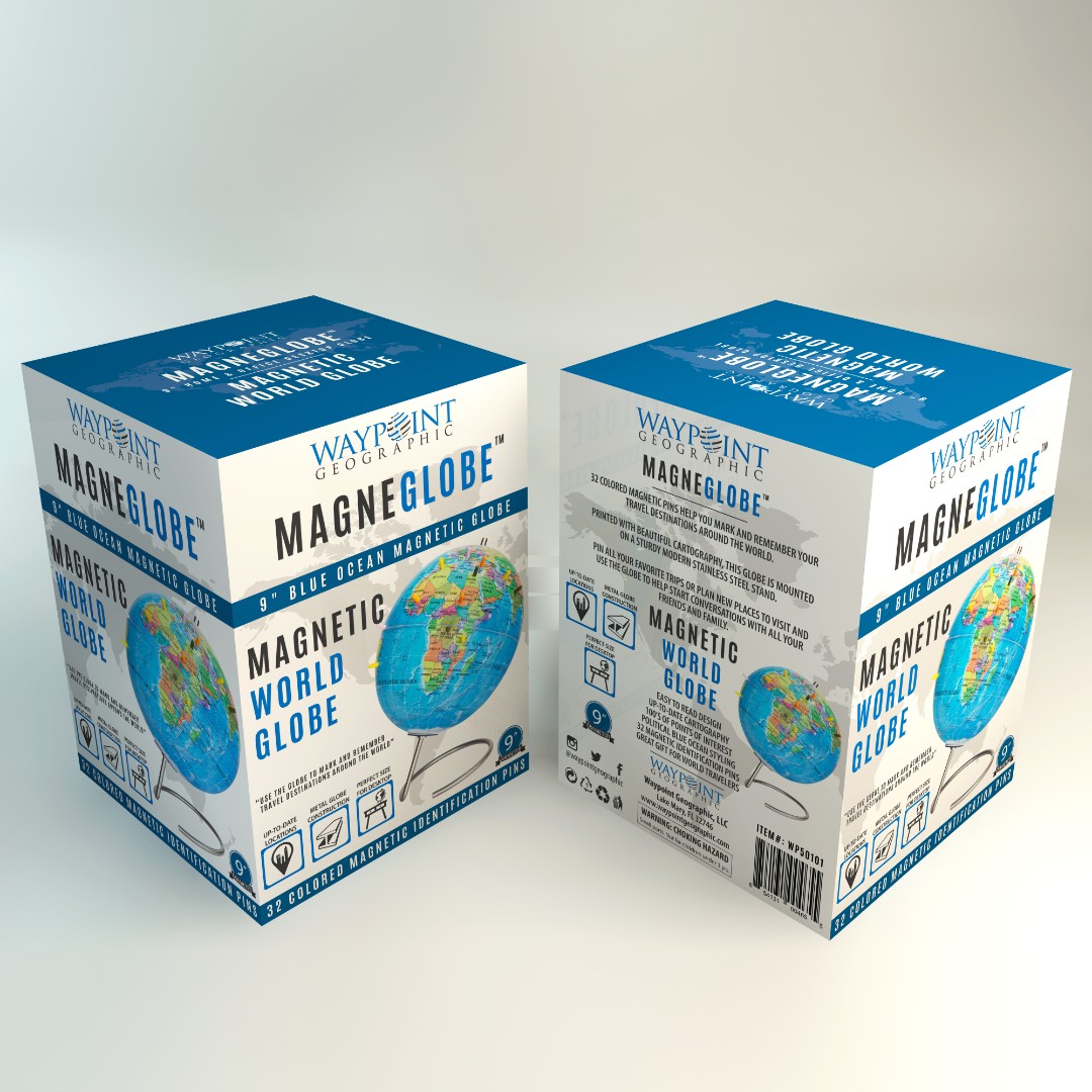 Waypoint Geographic aimed to create a modern and eye-catching retail box for MagneGlobe™, designed for adults who want to mark past travel destinations or plan future trips using magnetic pins.