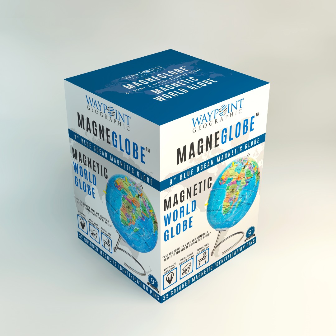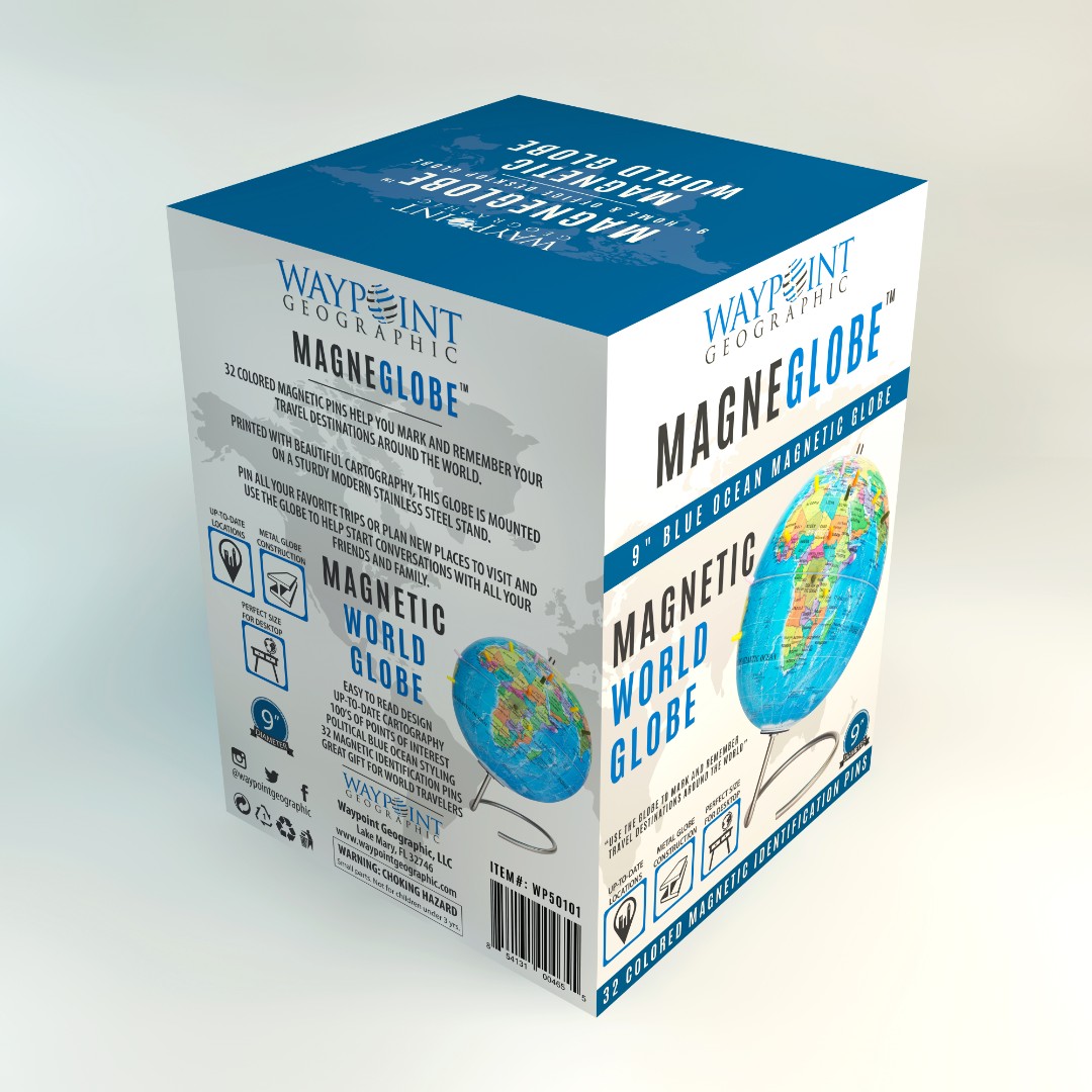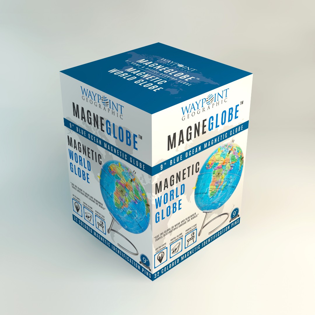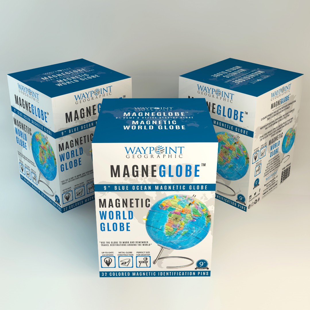 Waypoint Geographic aimed to create a modern and eye-catching retail box for MagneGlobe™, designed for adults who want to mark past travel destinations or plan future trips using magnetic pins.