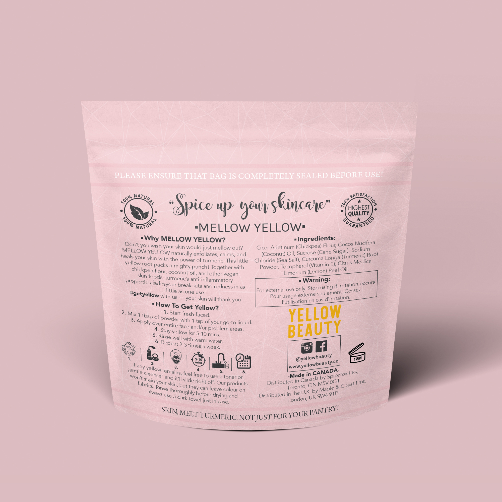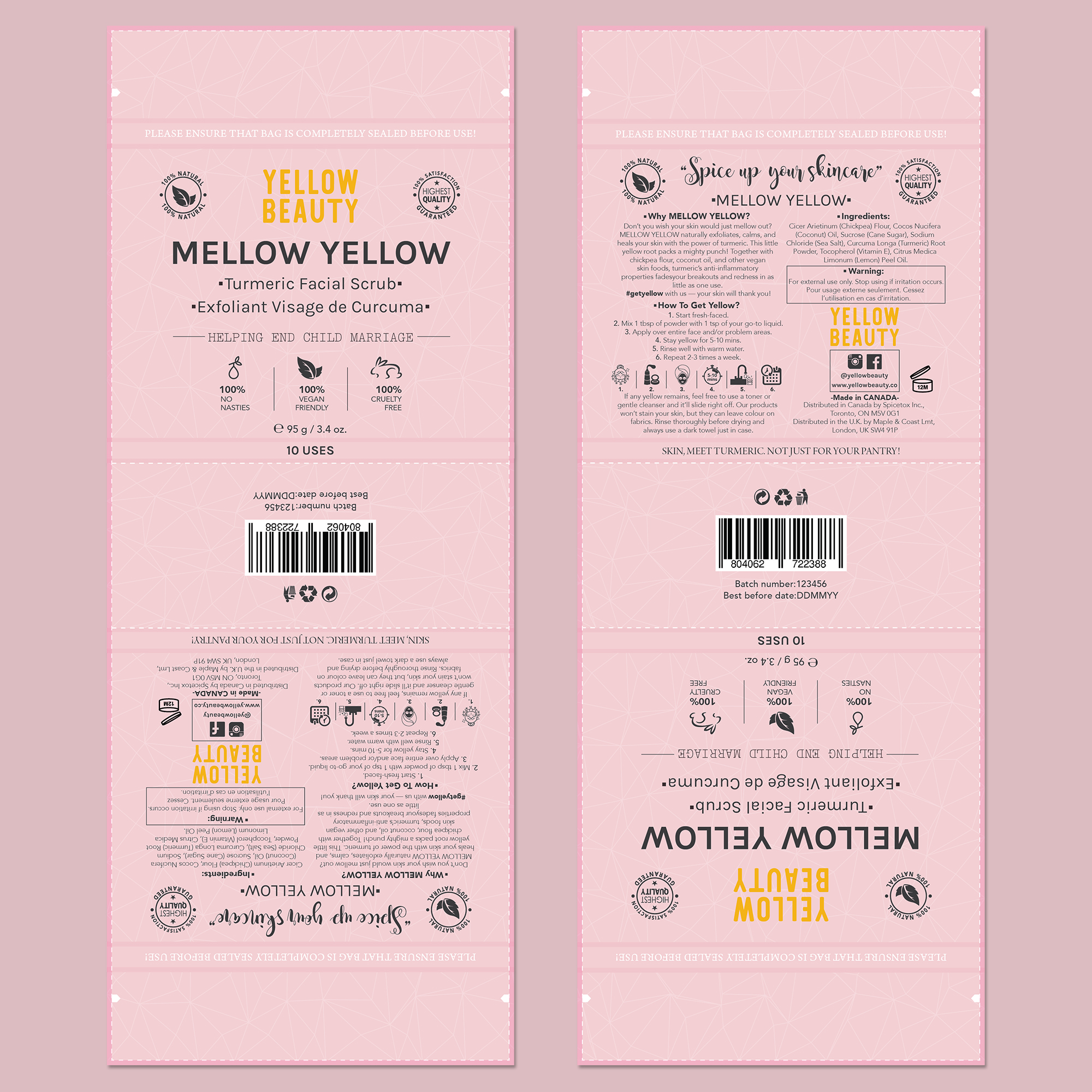 Yellow Beauty required a modern, minimalist, and photogenic packaging design for their turmeric-based skincare line as part of a brand refresh targeting socially conscious millennial women.