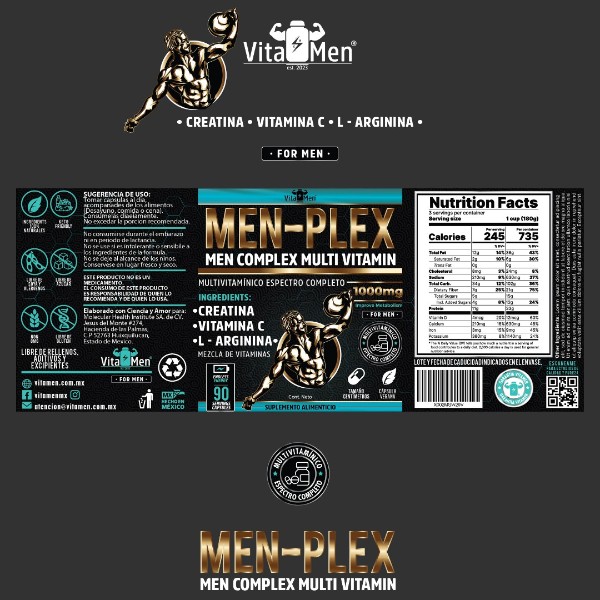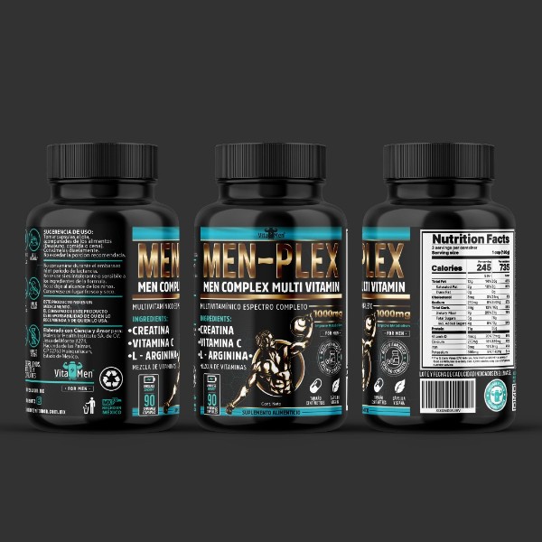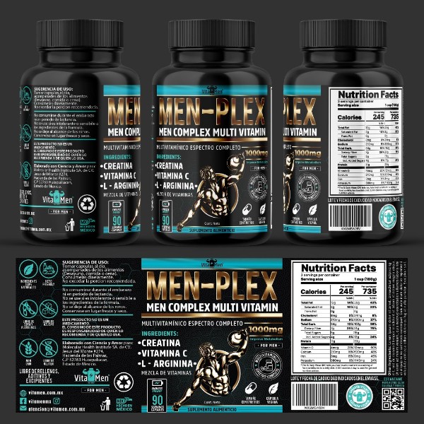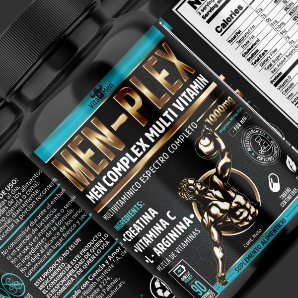 VitaMen needed a bold packaging design for Men-Plex – Complex Multivitamin for Men that reflects strength, performance, and premium quality.