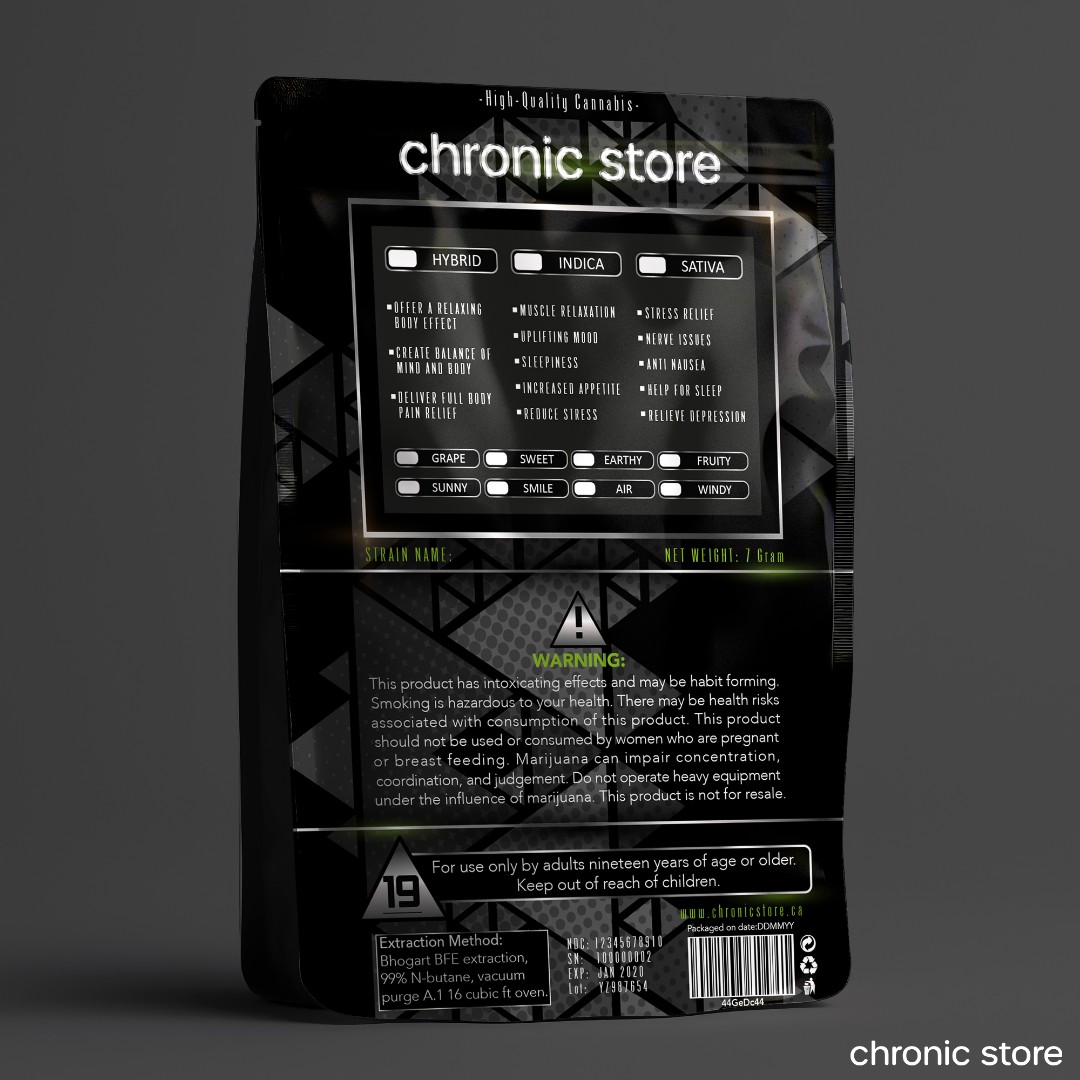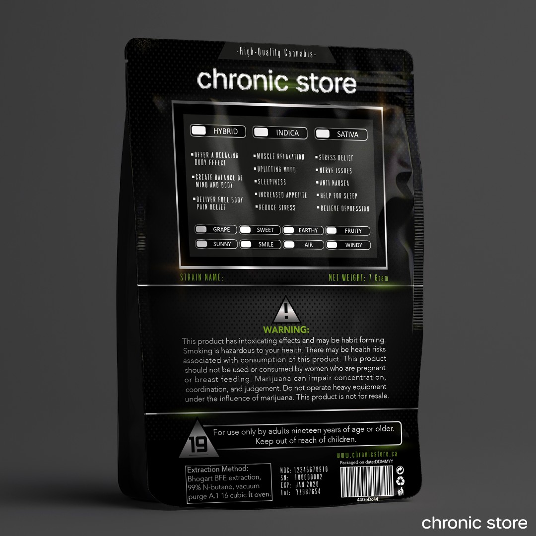 The final packaging design successfully positioned Chronic Store as a modern and upscale cannabis retailer within a highly competitive market.